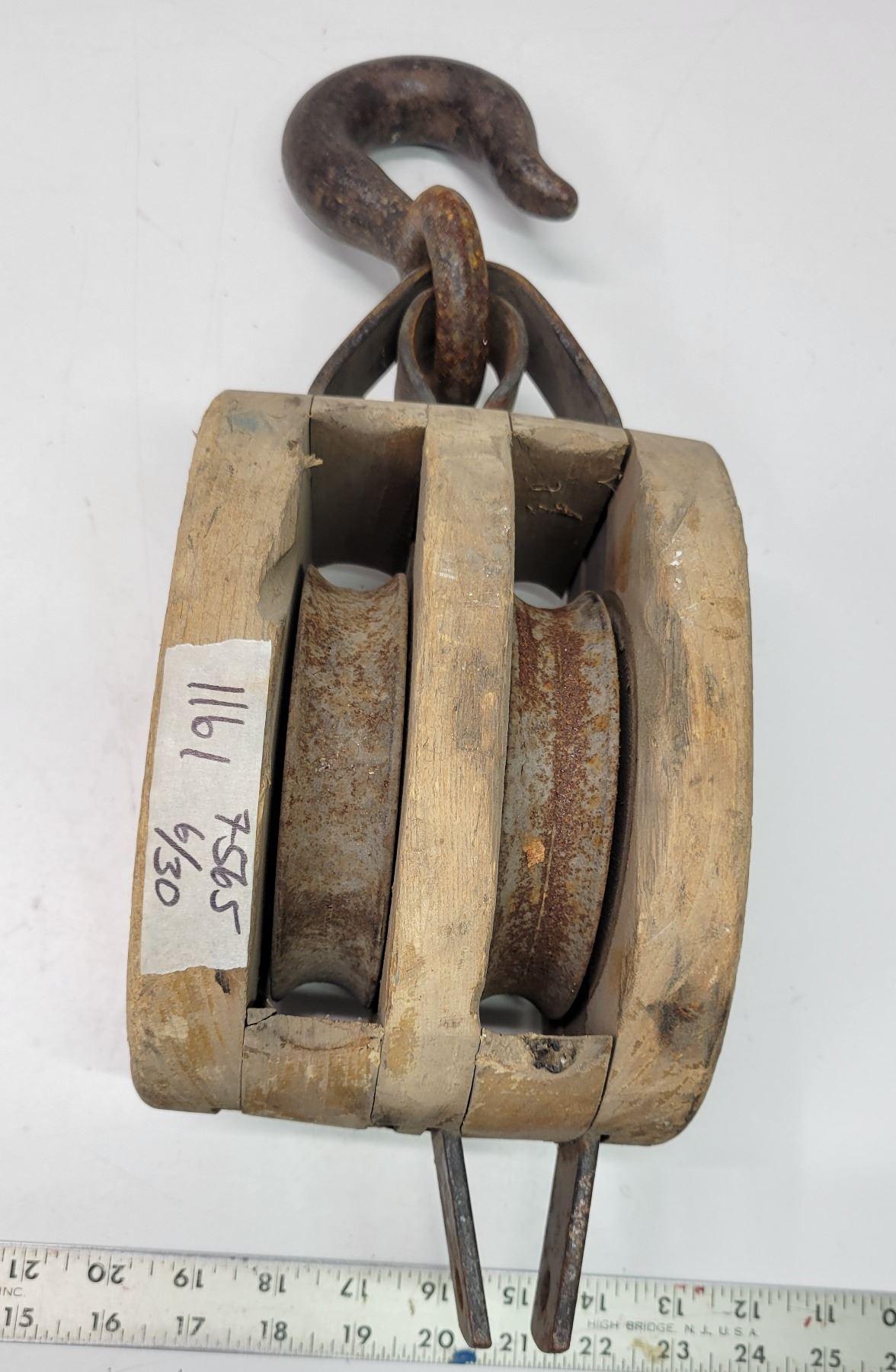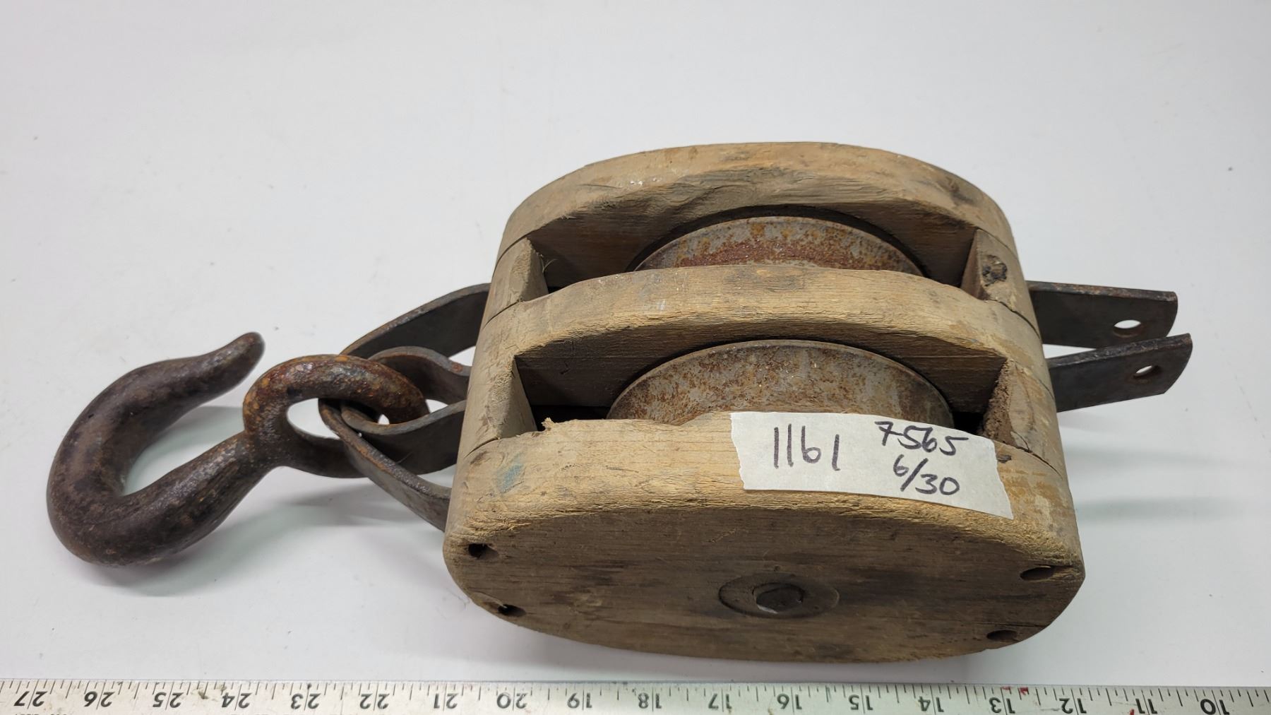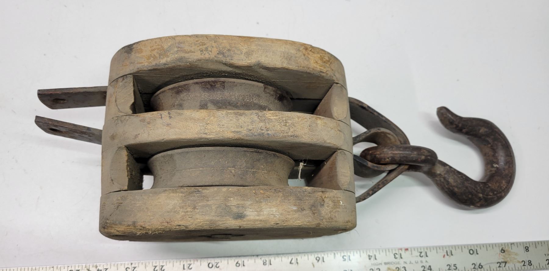 Large Vintage Wooden Block Pulley