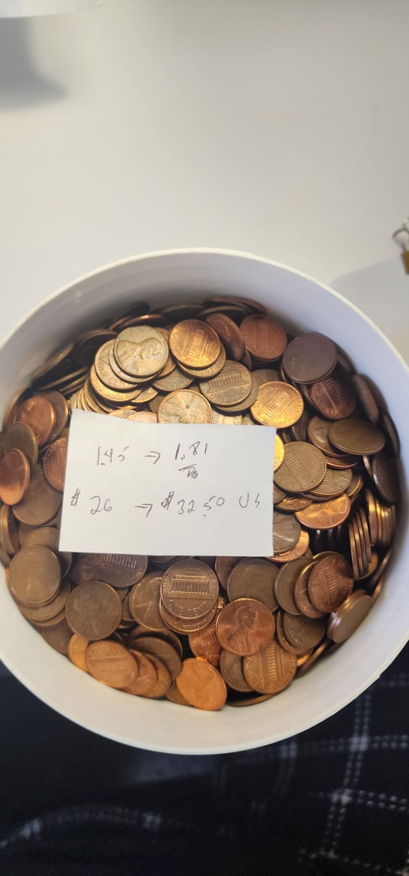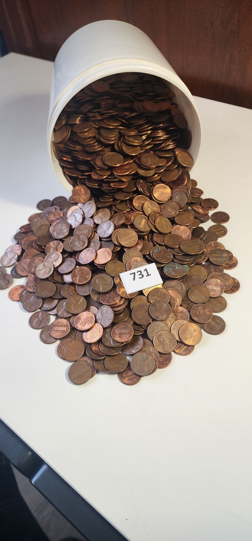 Large White Tobacco Can full of American Pennies. Approx. 8kg. (18 lbs)