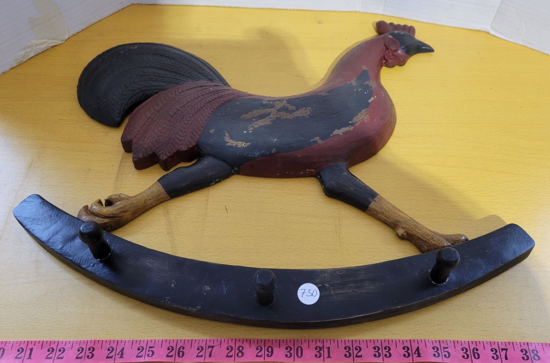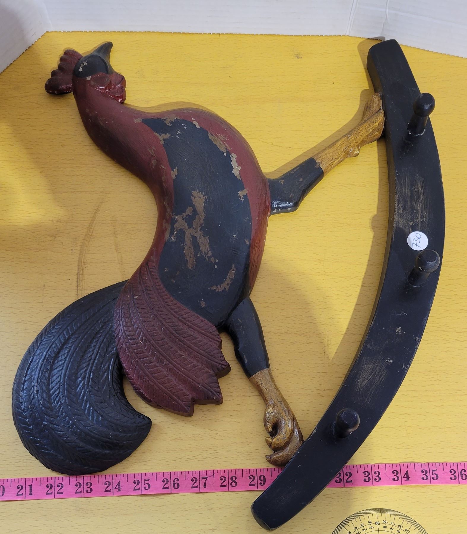 Large Wooden Painted Rooster with hanging pegs Country Decor