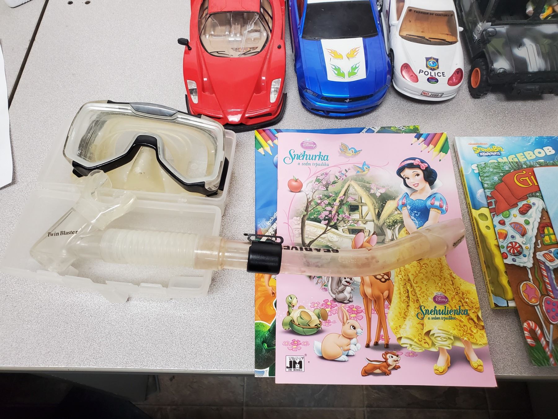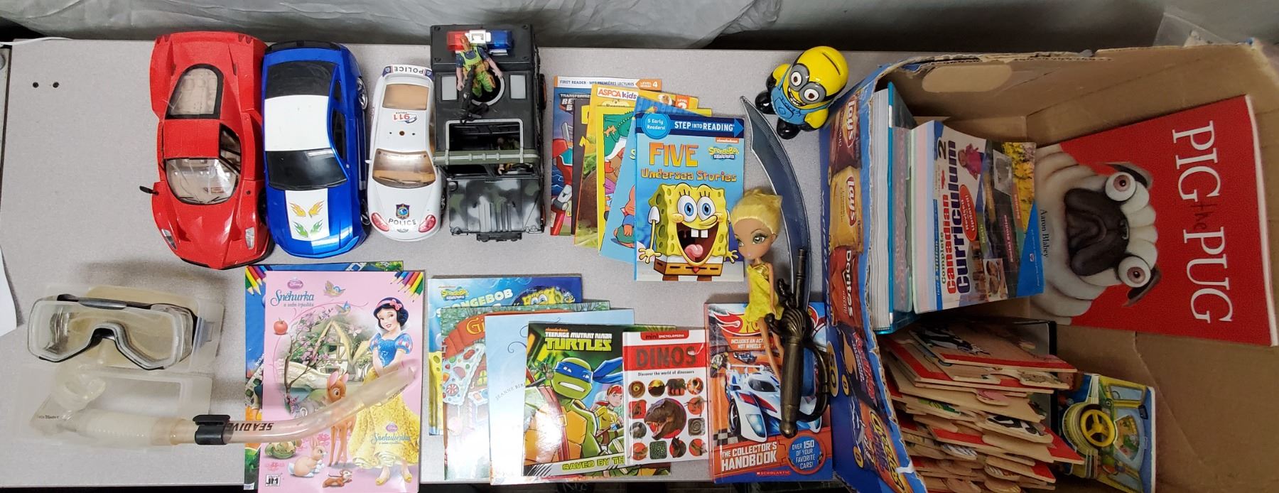 Large assortment of kids books, toys, snorkel, etc SEE PHOTOS