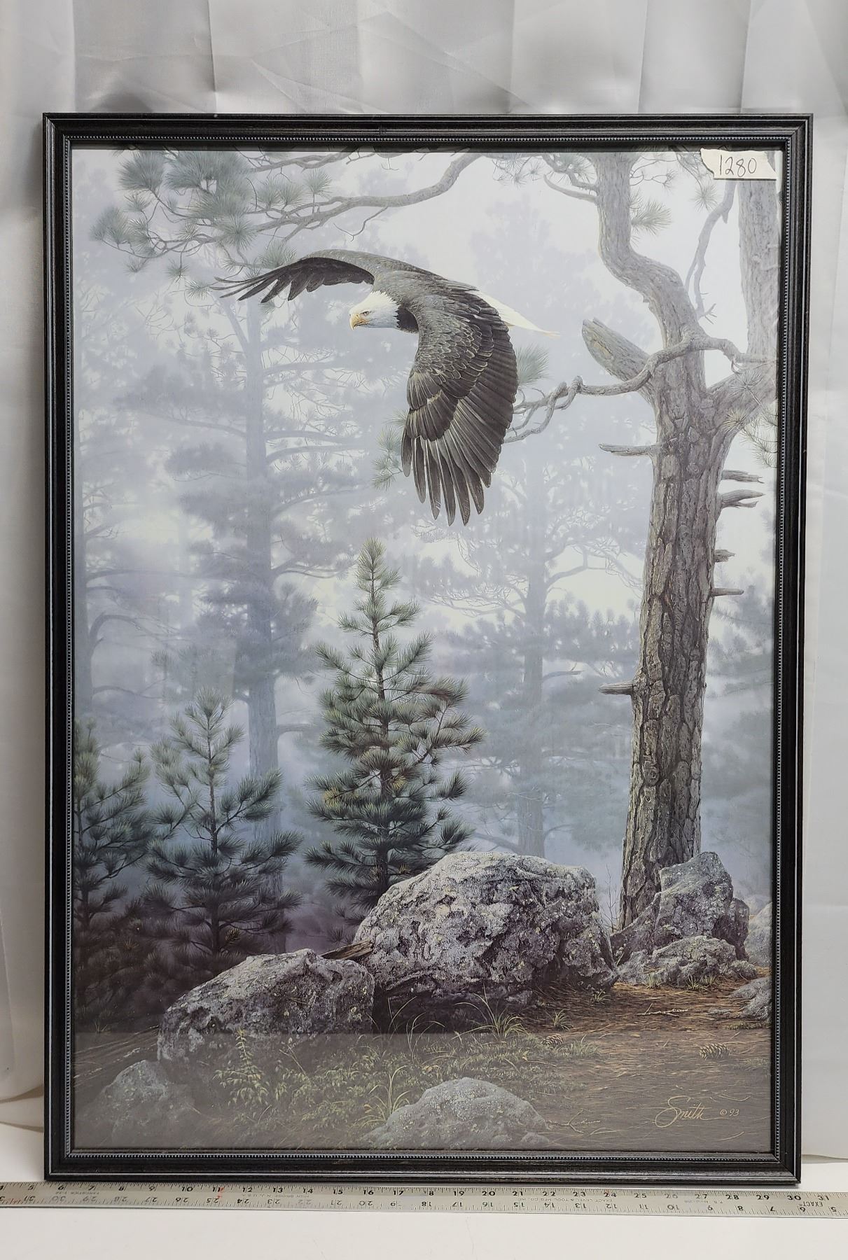 Large beautiful, Bald Eagle framed print, signed Smith '93 - 35.5"H x 25.5"