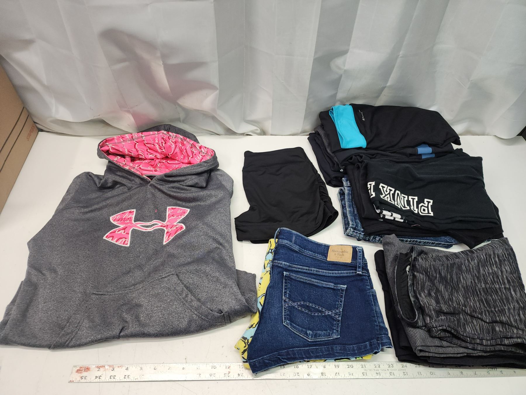 Booty shorts, leggings, capri pants, UA sweater, etc.