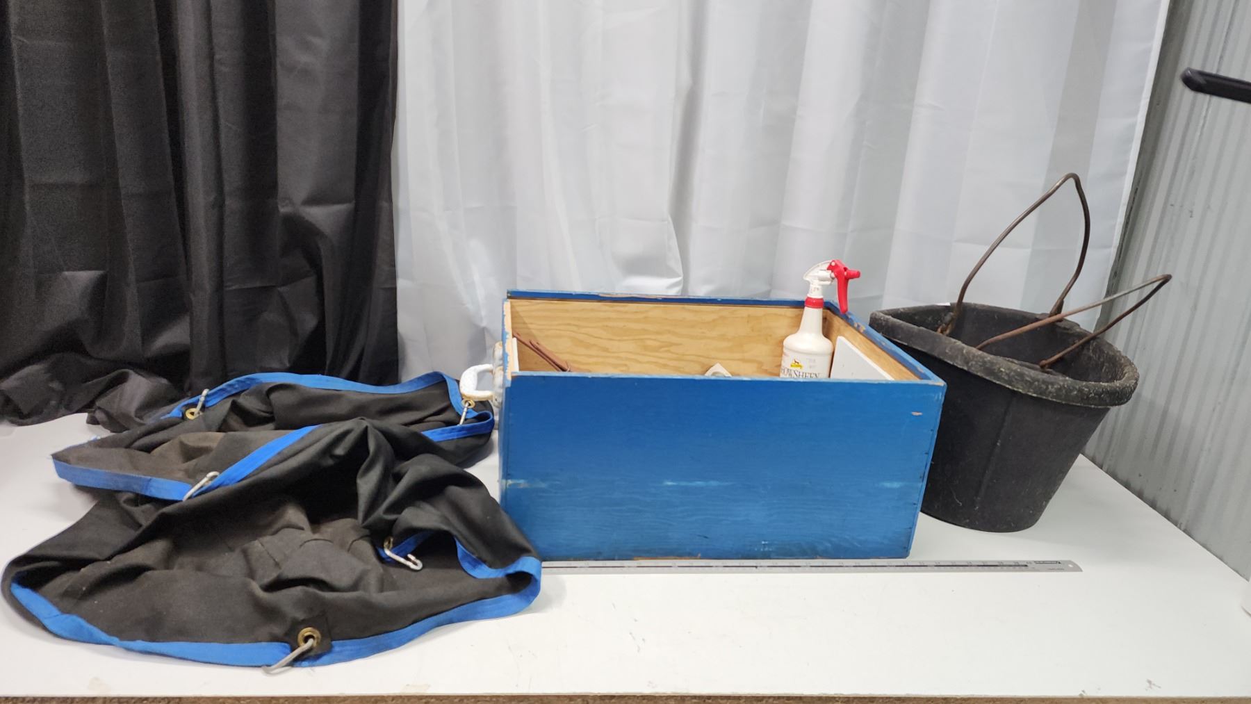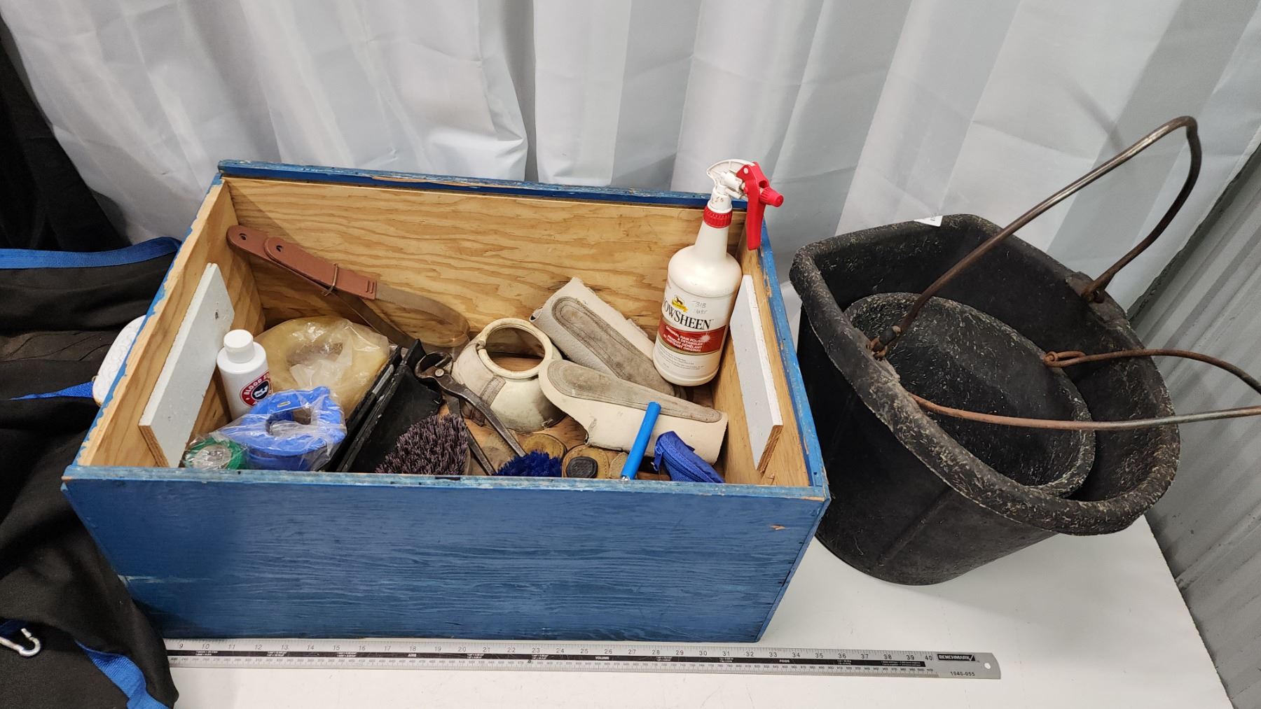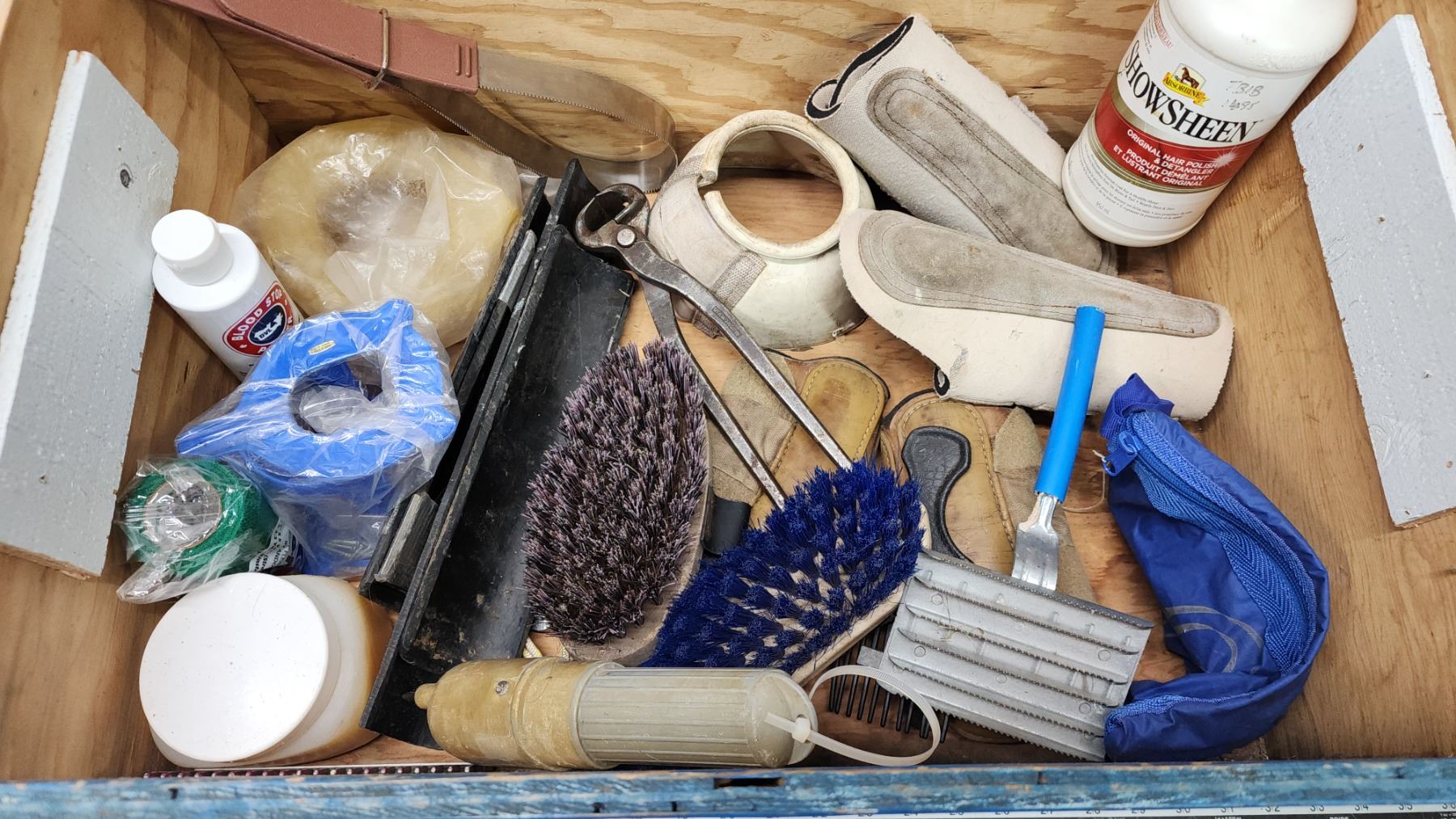 Large collection of Horse items - Feeding pails, bags, brushes, boots, etc.