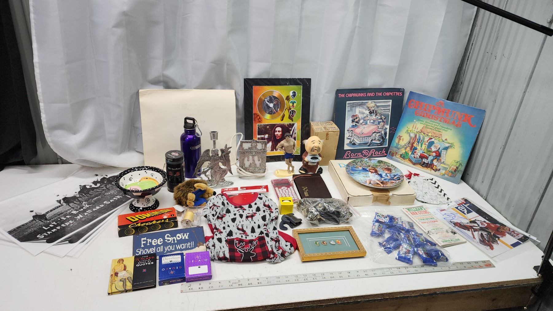 Large collection of misc. treasures - Keys, Vinyl records, playing cards, dog outfit, etc.