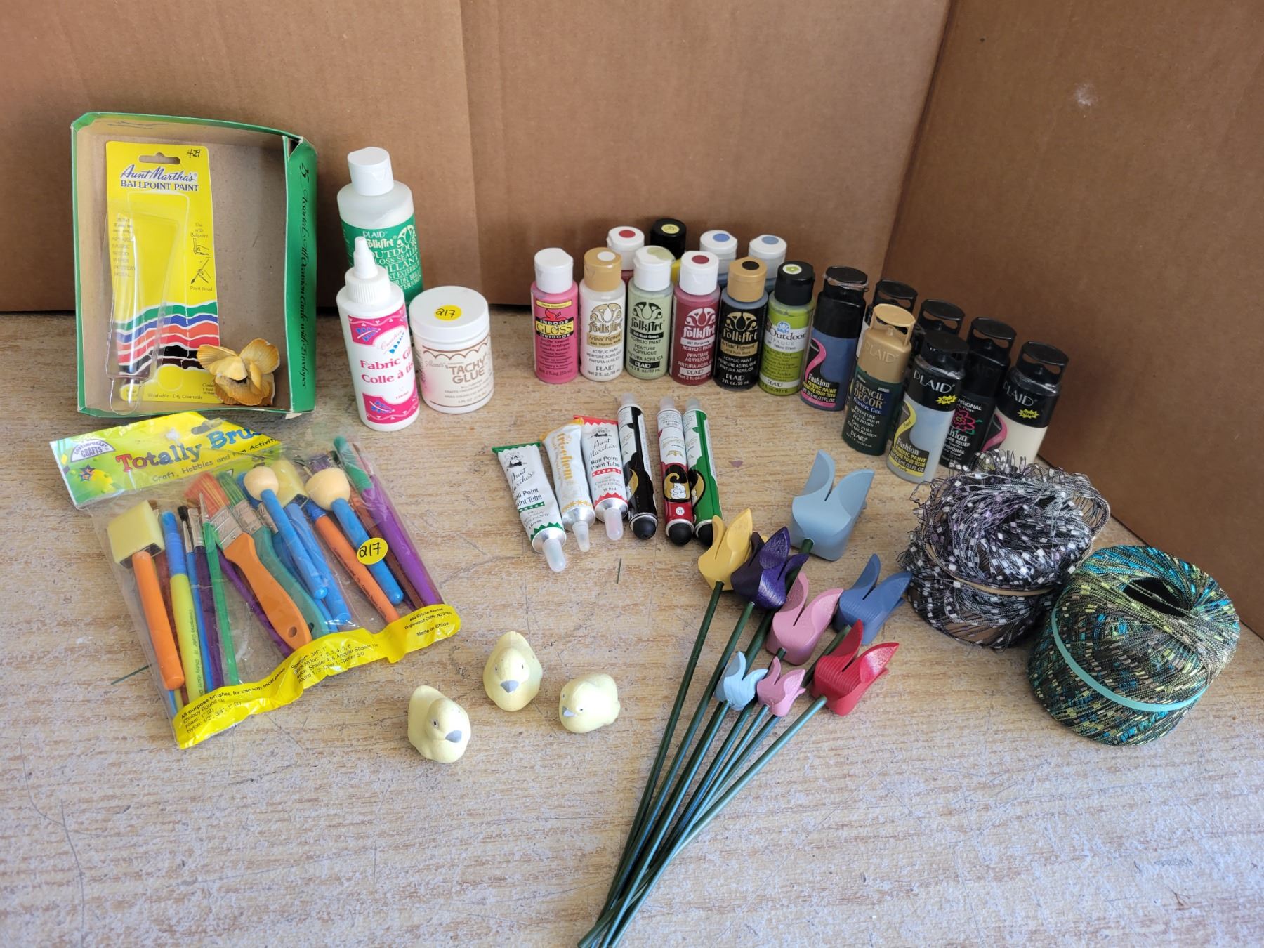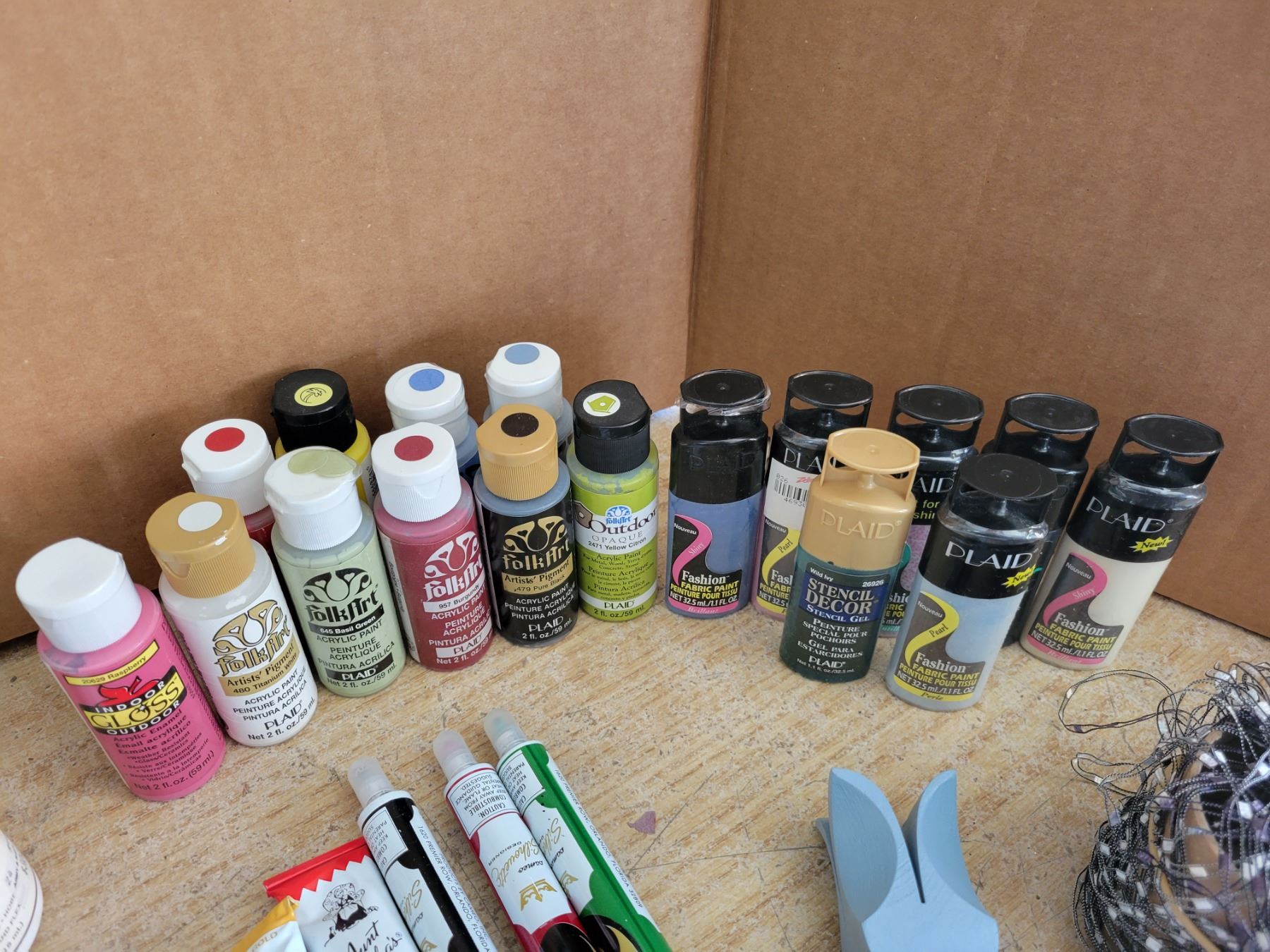 Large lot of arts & crafts supplies - lots of paint, fabric paint, & glue