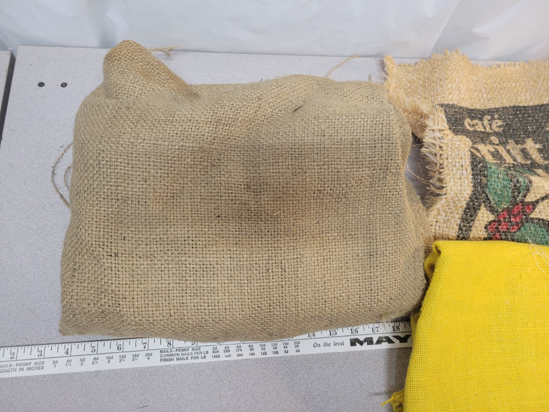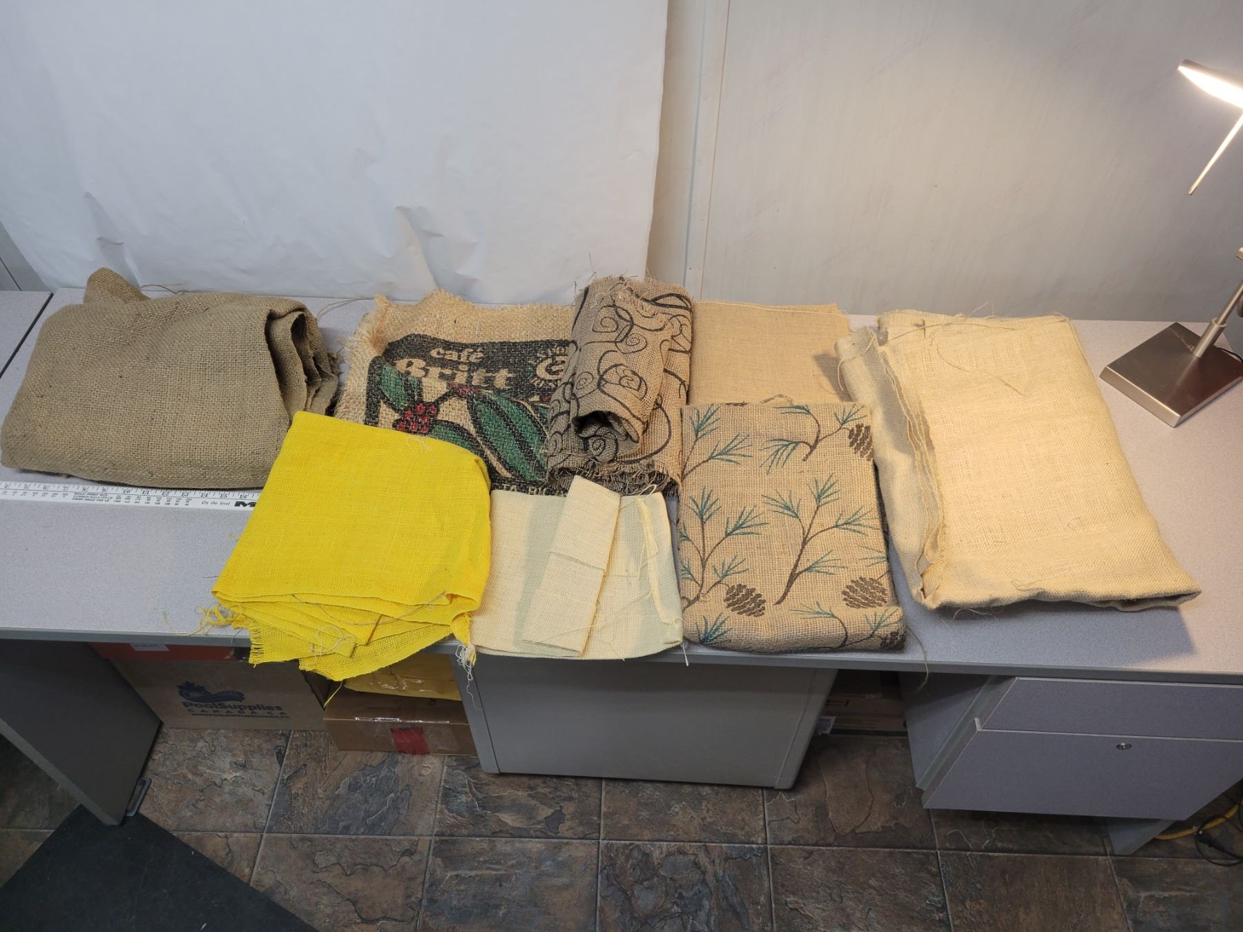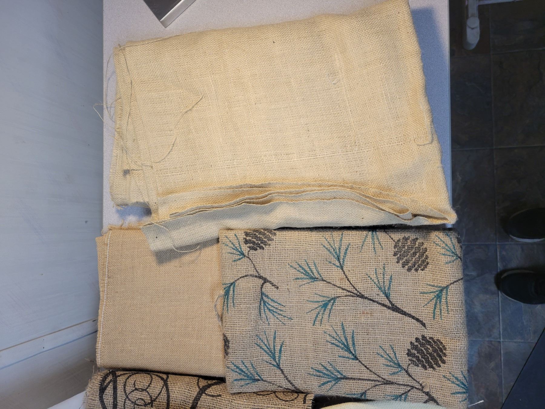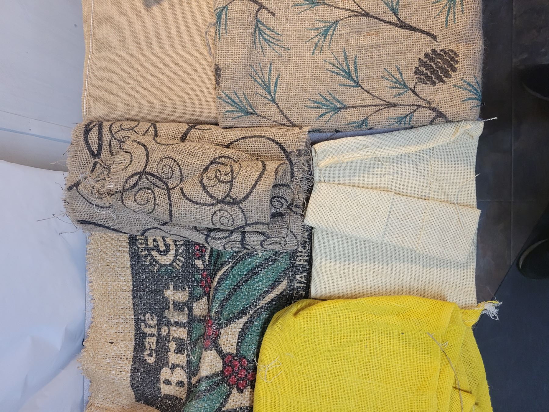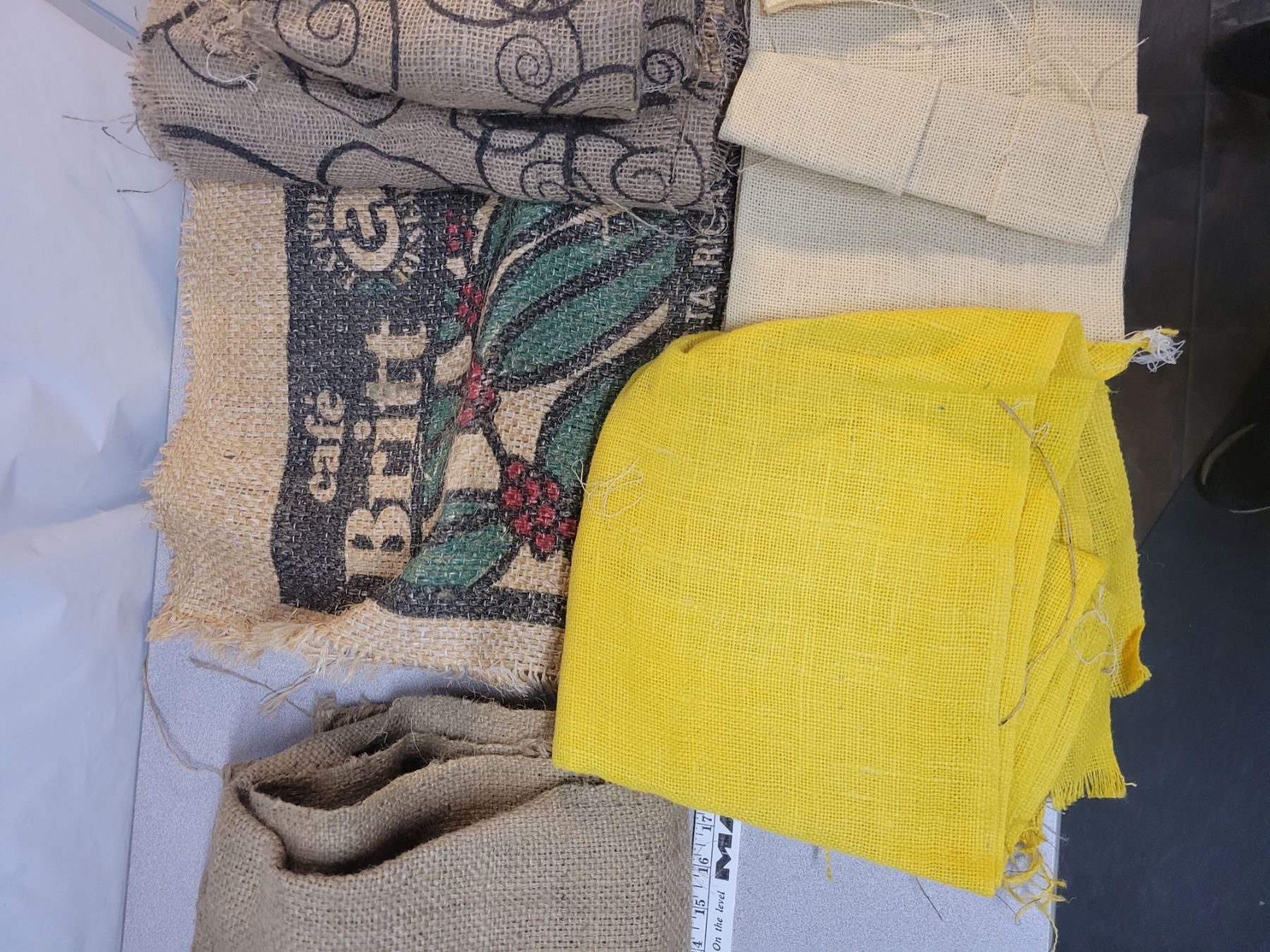 Large lot of assorted burlap, large and small pieces, lots of material.