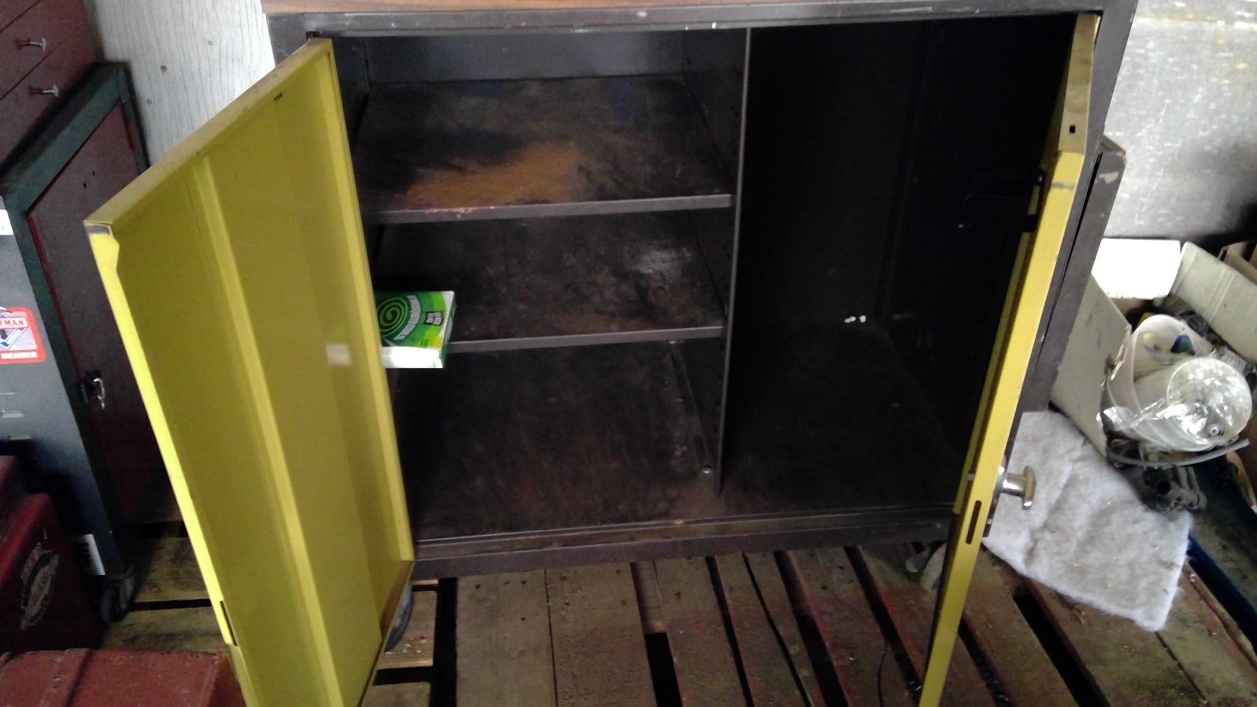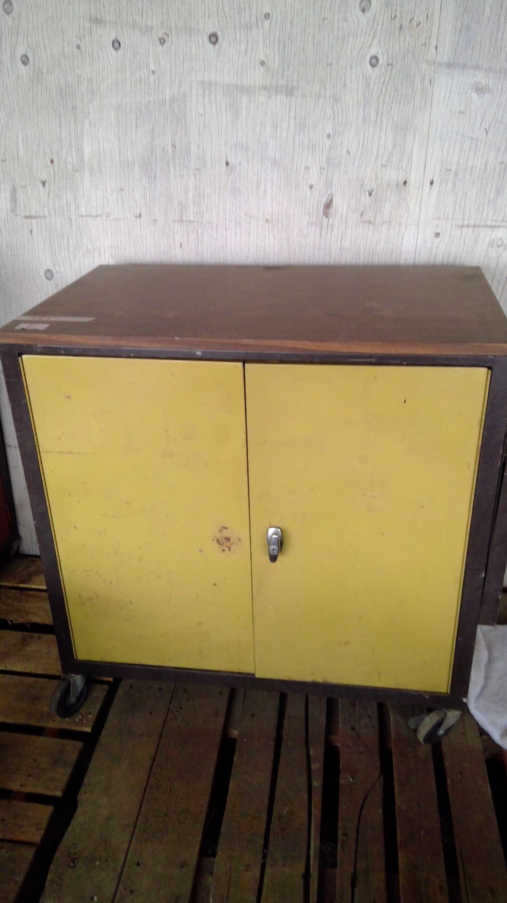 Large metal storage cabinet on rollers 37"W x 38"H X22"D