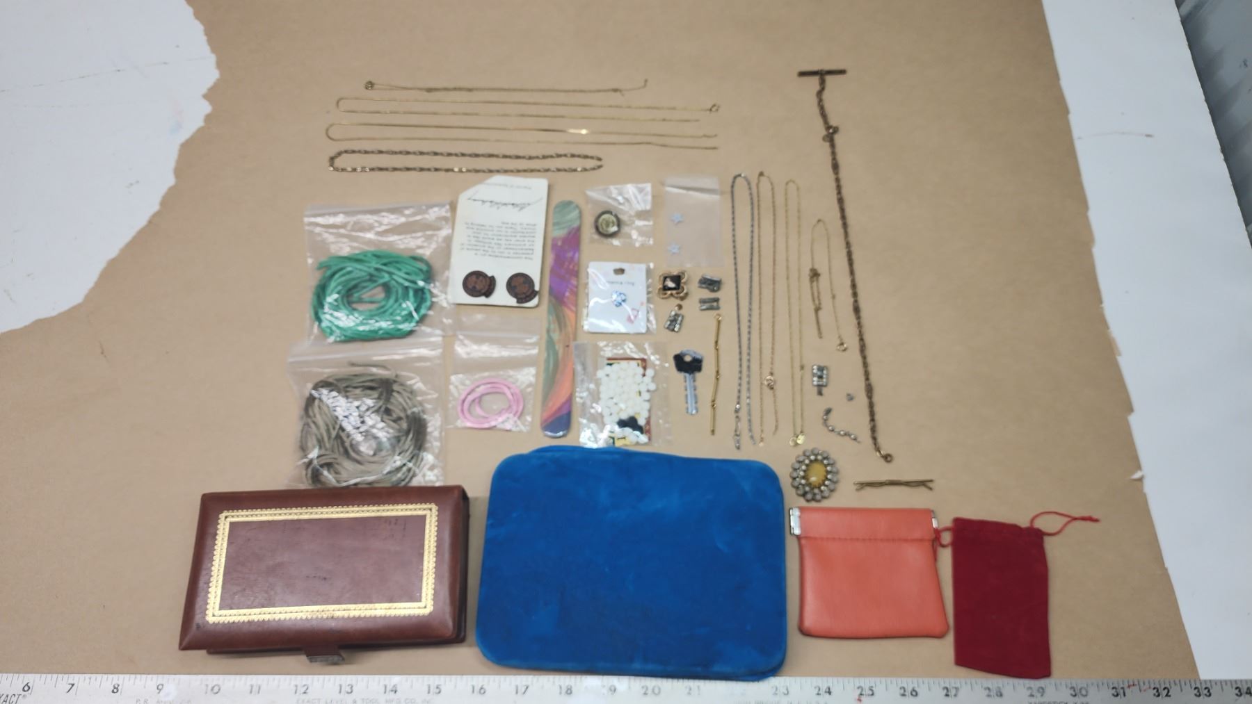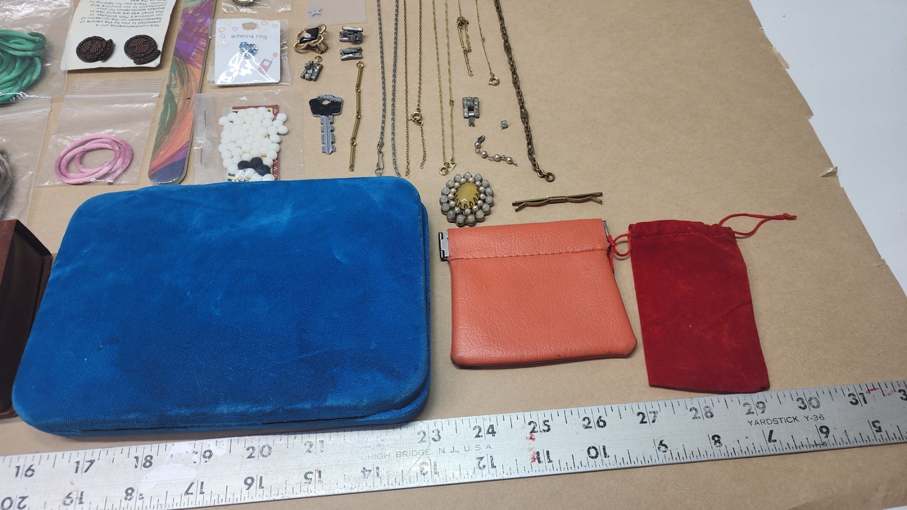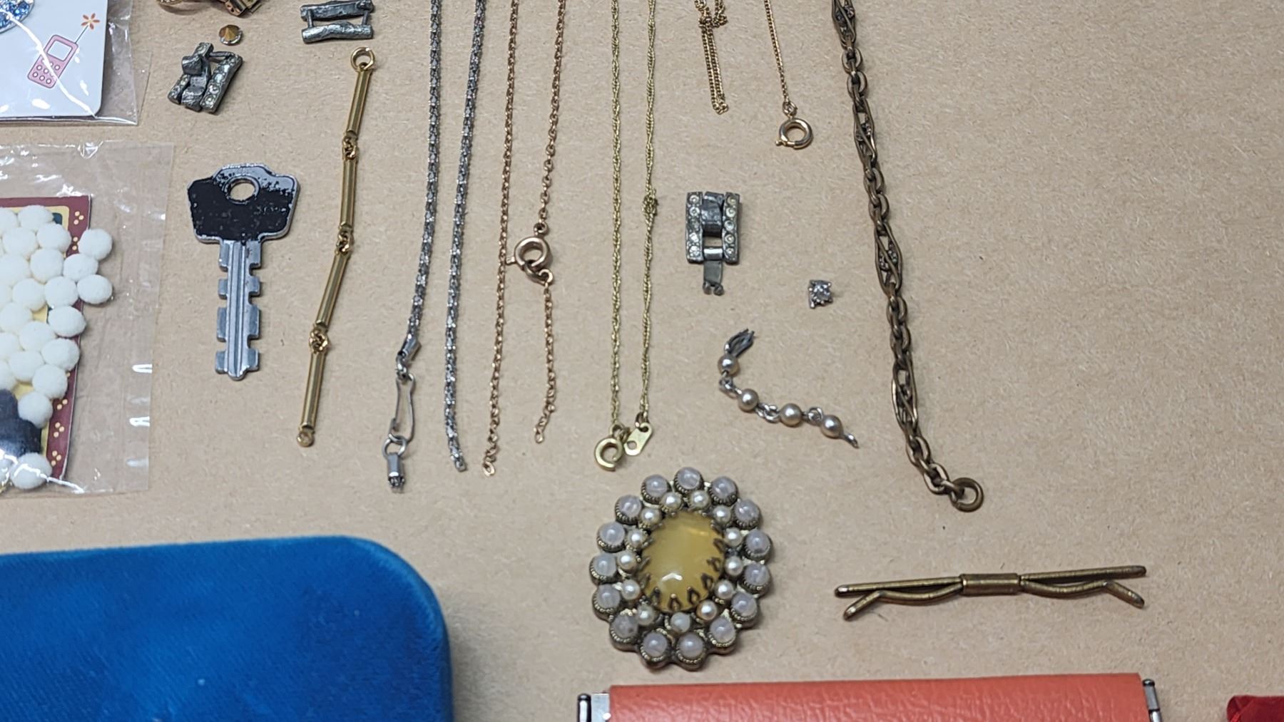 Large misc bundle - broken necklaces, necklace ropes, empty jewelry containers/bags and other items