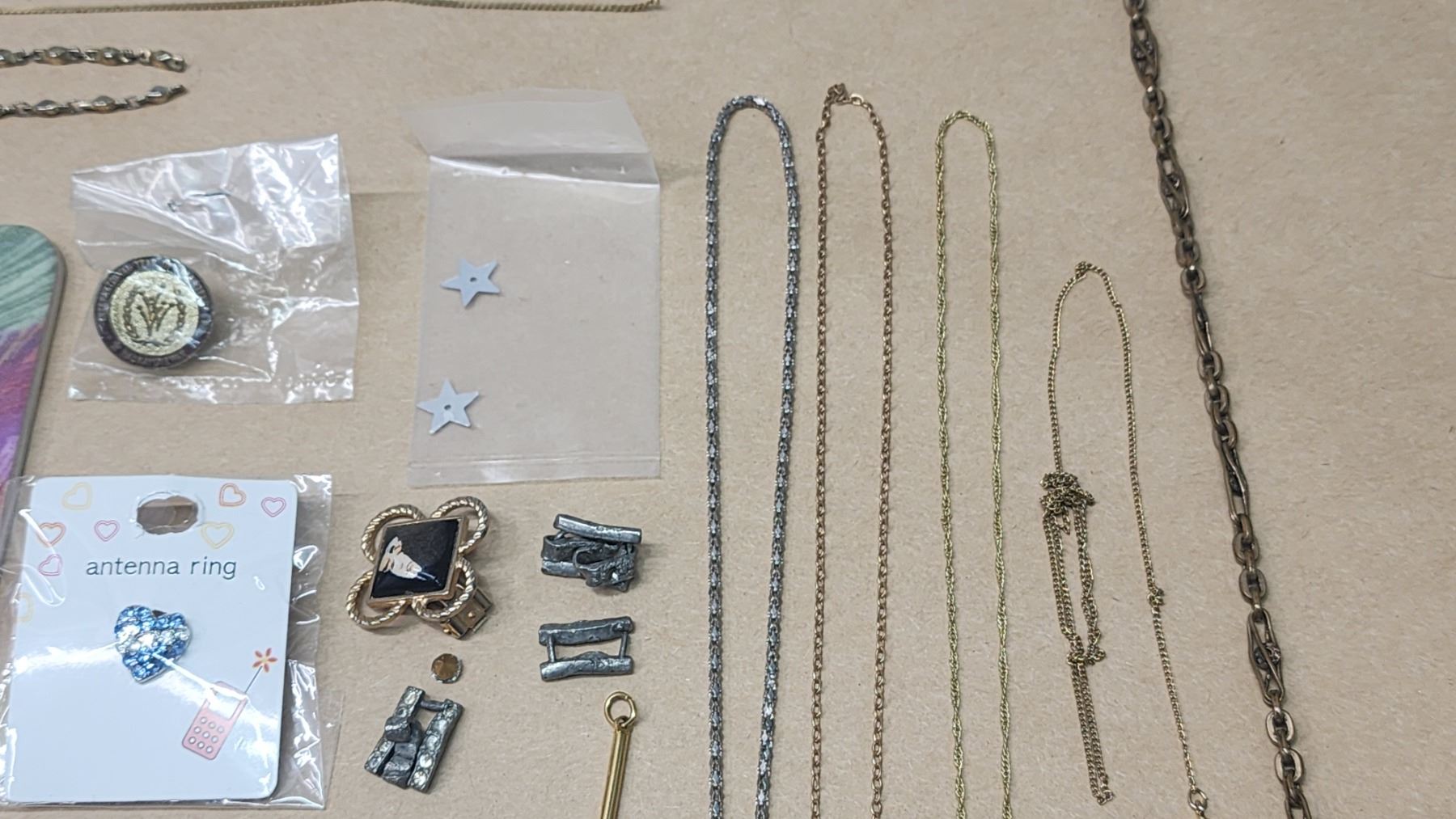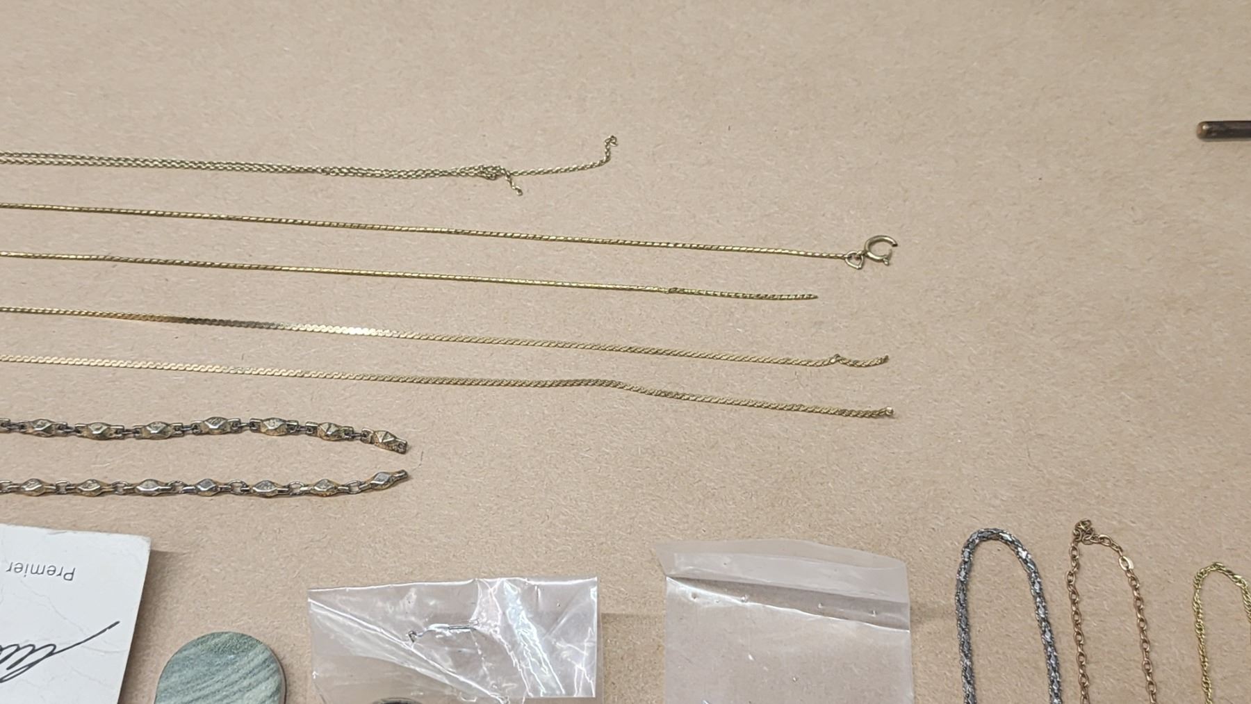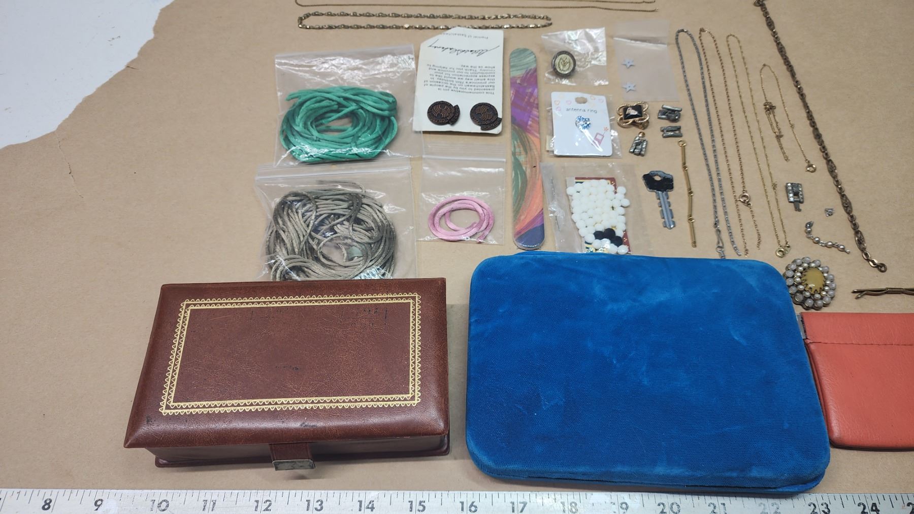 Large misc bundle - broken necklaces, necklace ropes, empty jewelry containers/bags and other items