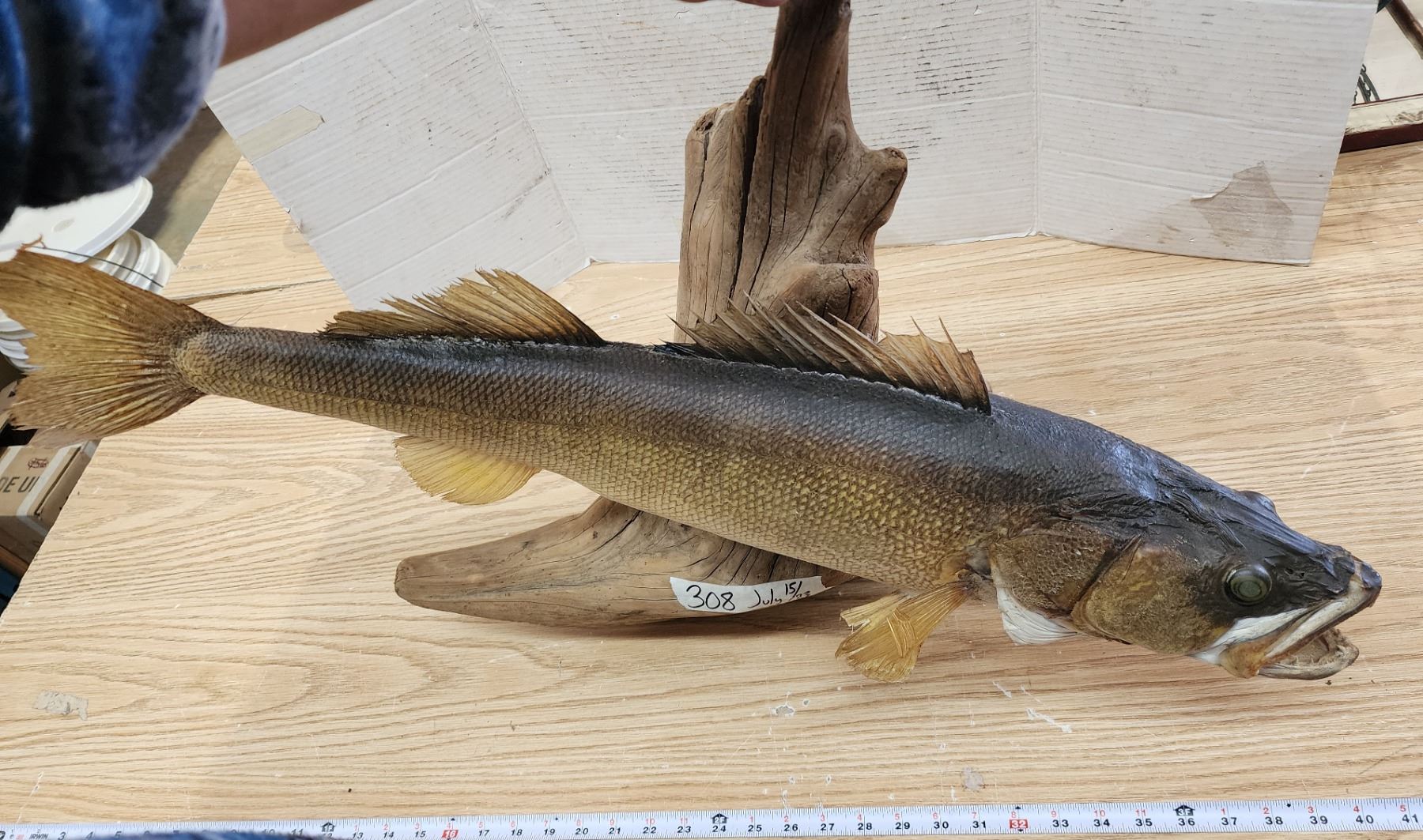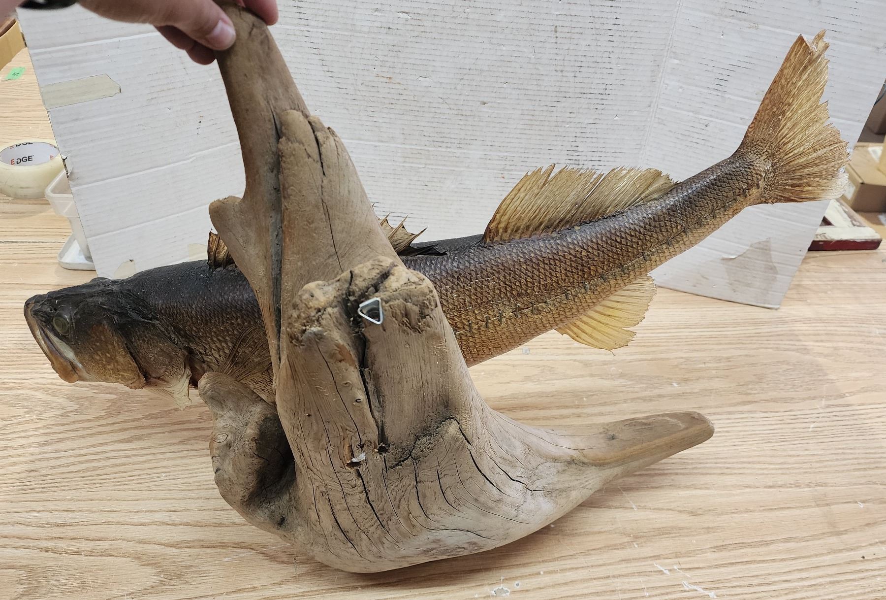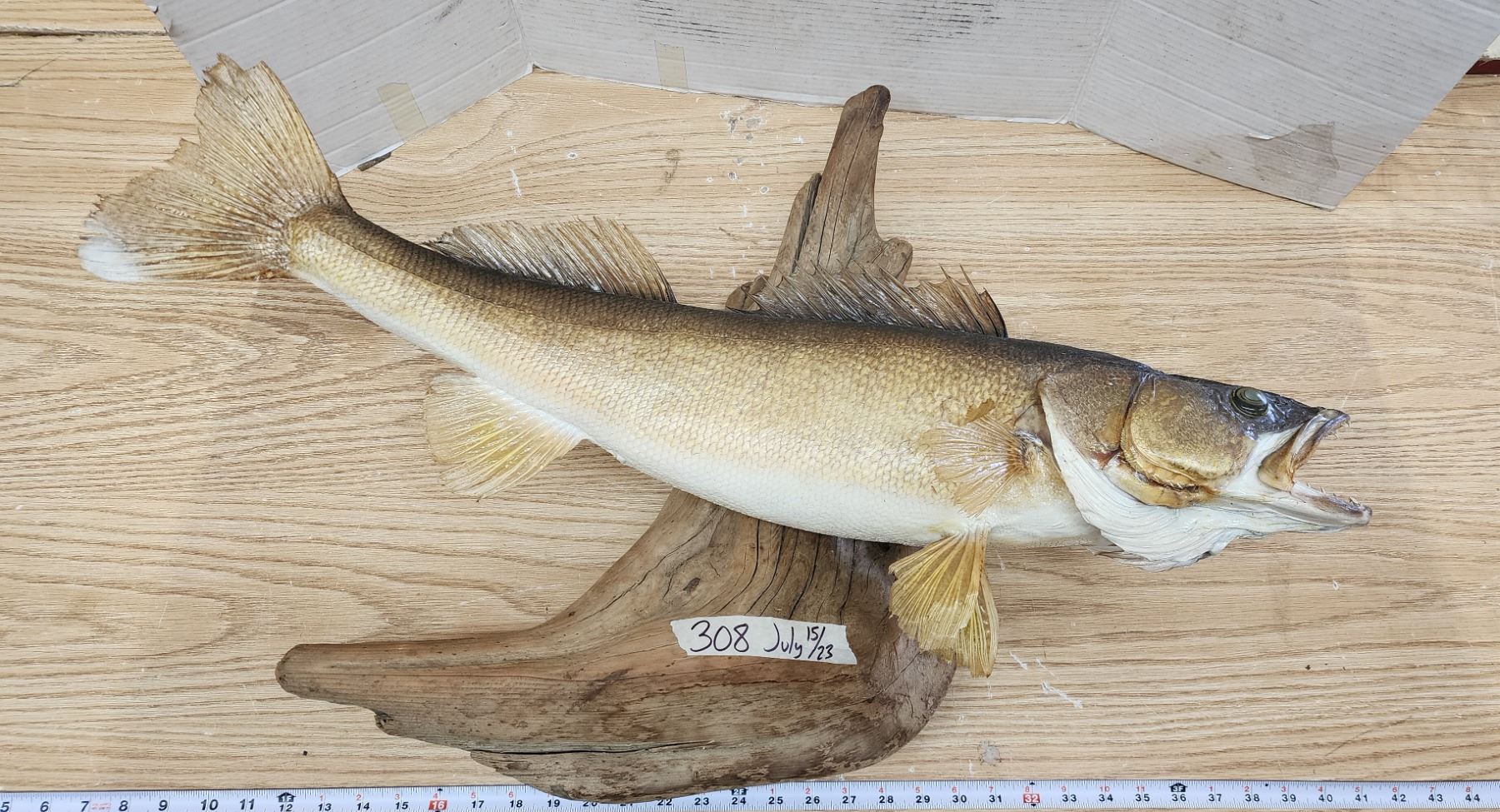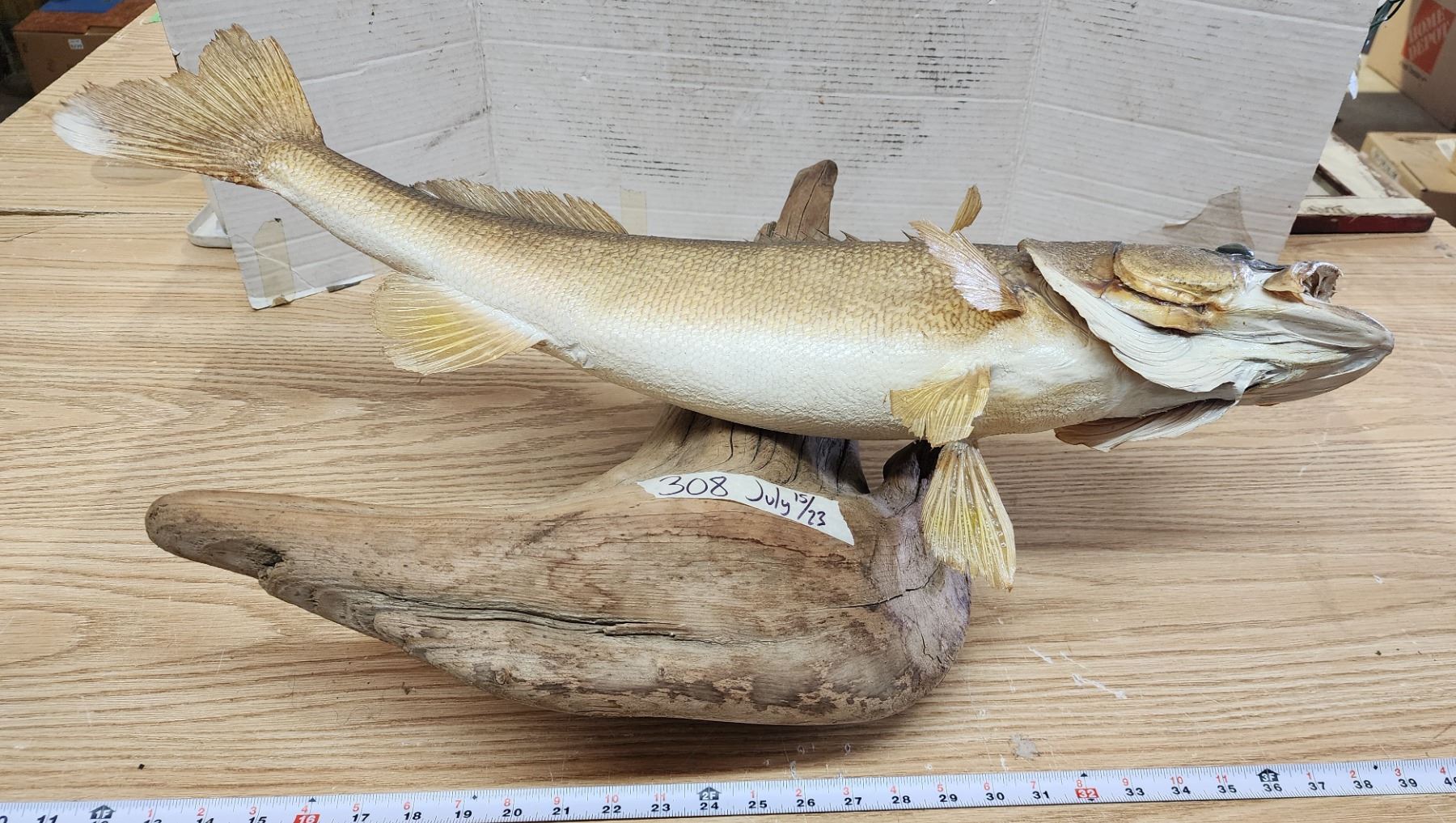 Large mounted Walleye, on driftwood - 30"W x 20.5"H