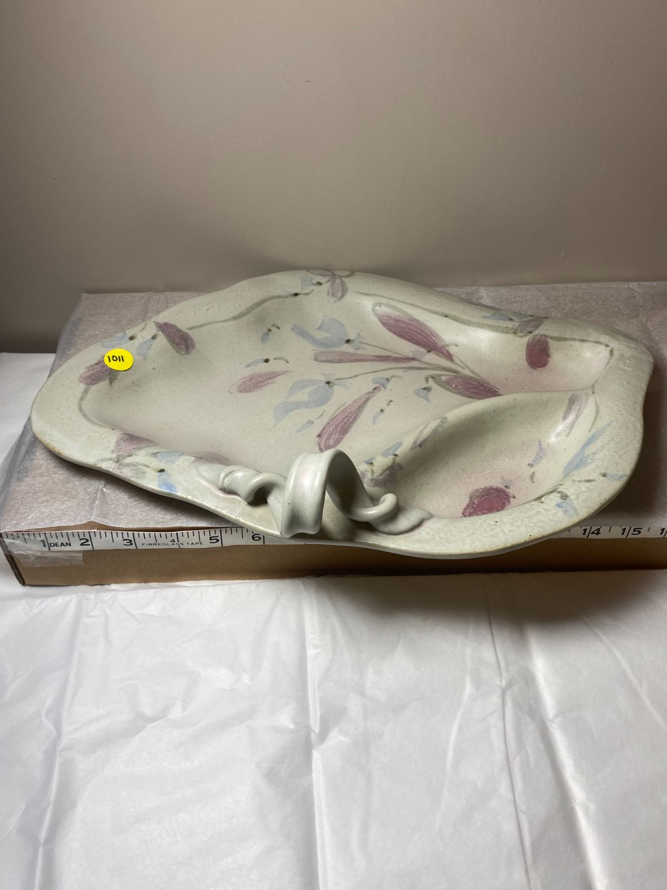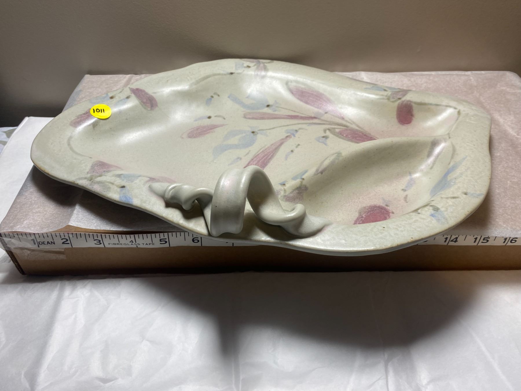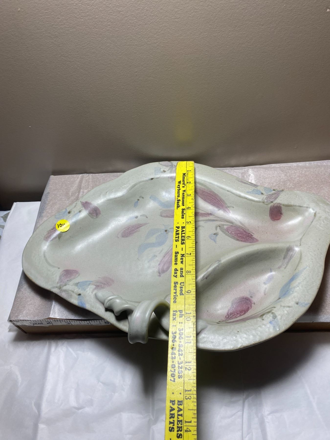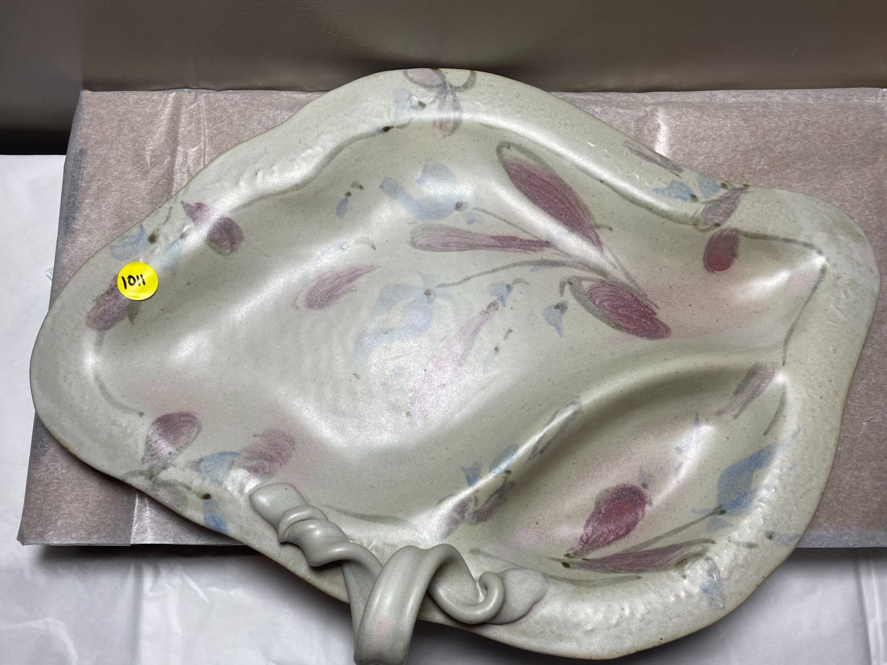 Large, vintage piece of hand painted, glazed, divided pottery platter