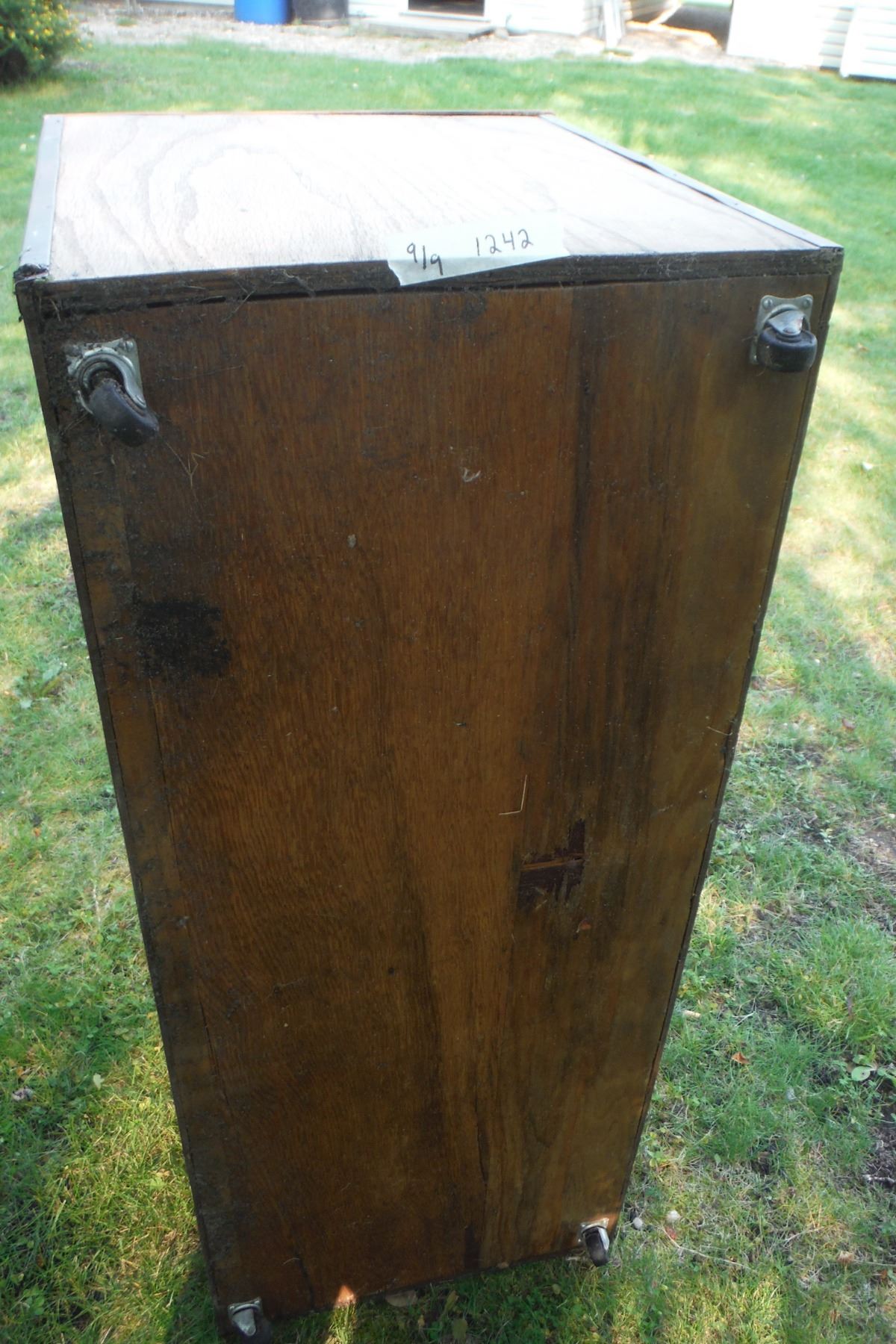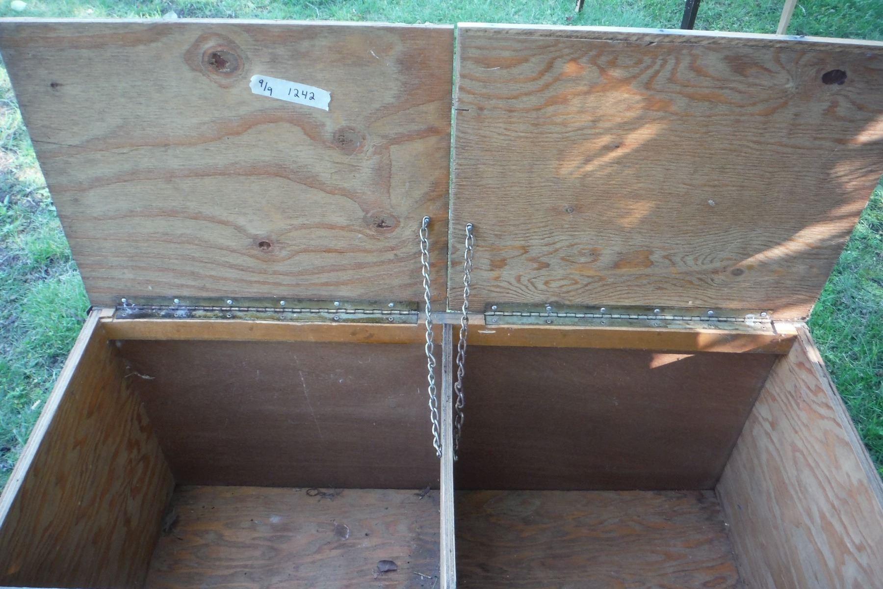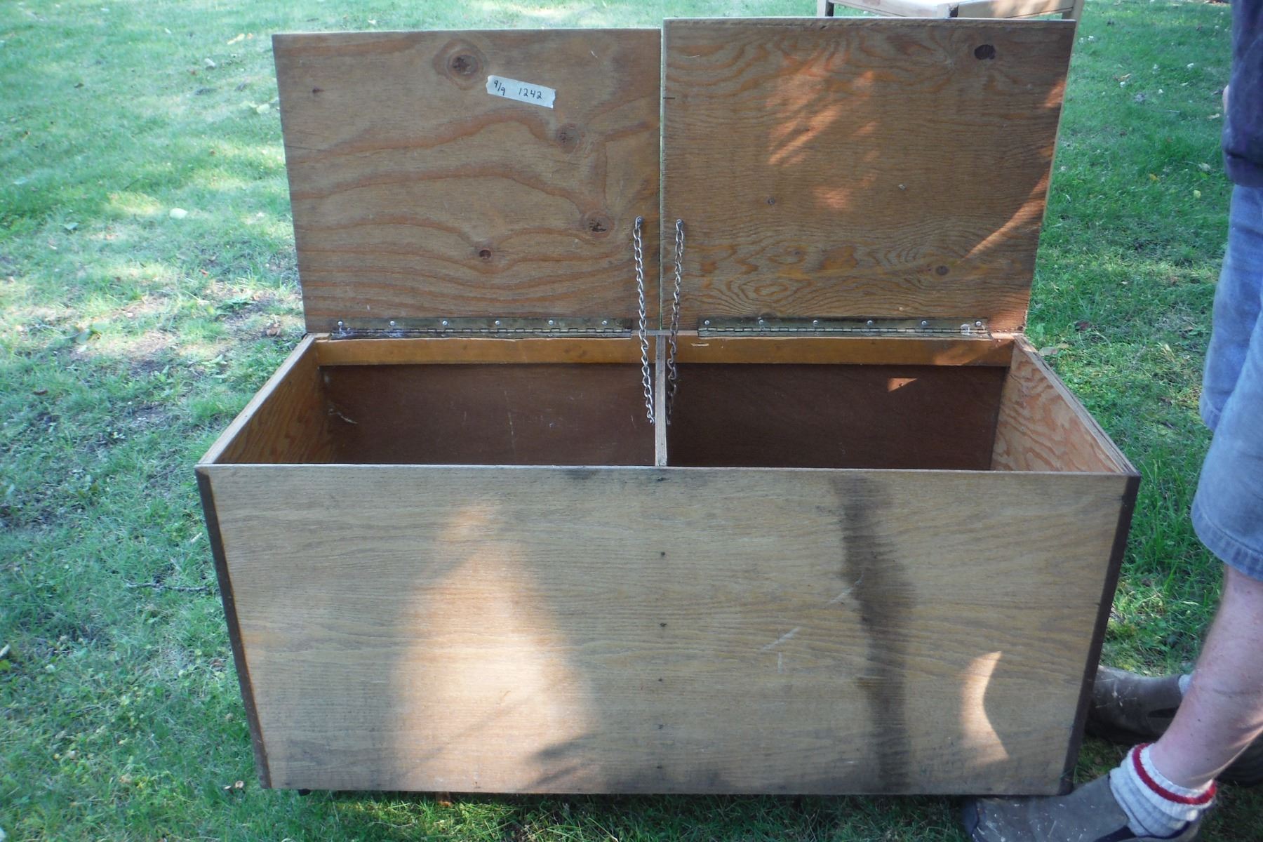 Large wood divided storage box on wheels 40.5 X 16.5 X194"