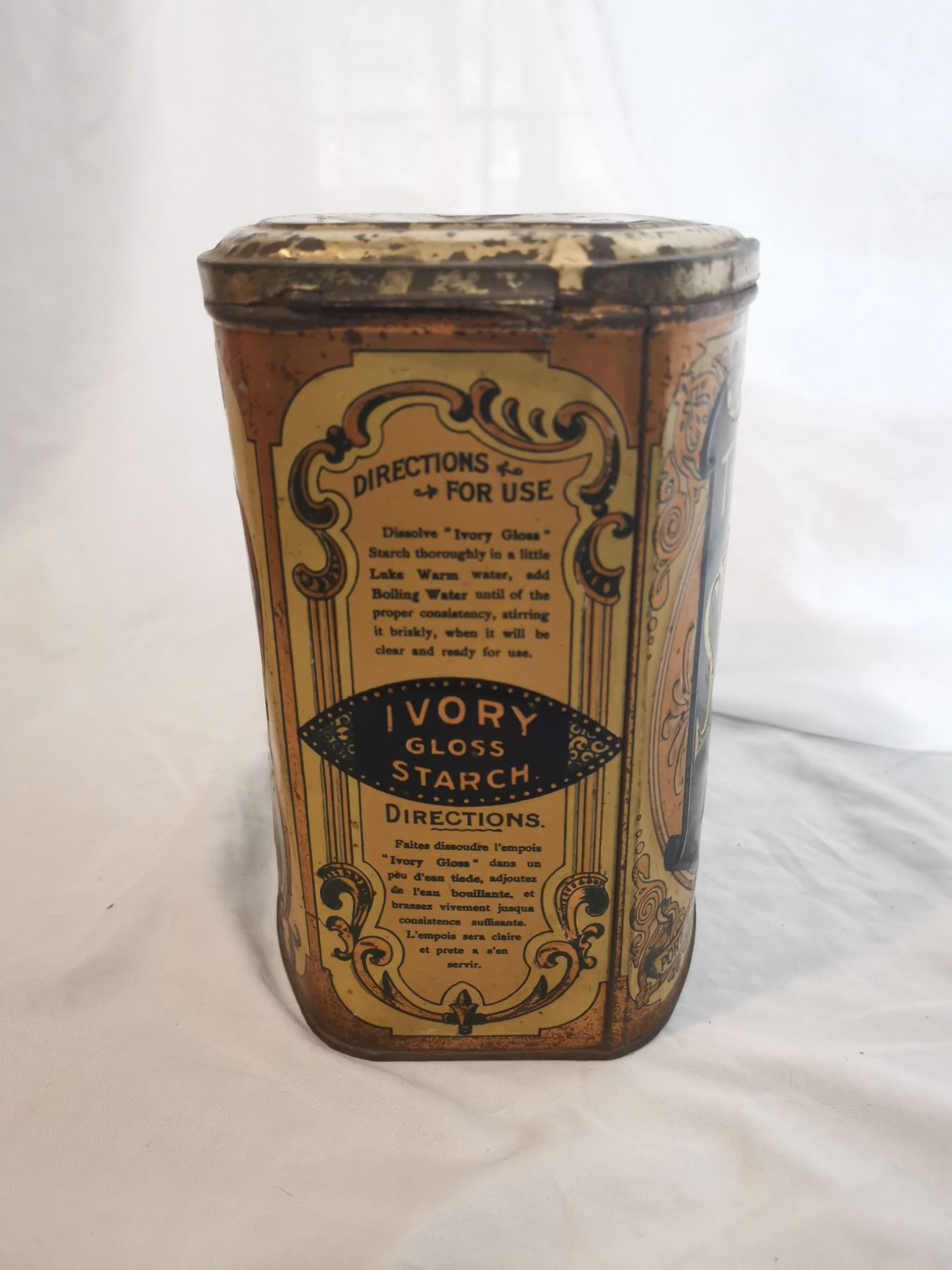Late 1800's St. Lawrence starch tin, Queen Victoria era