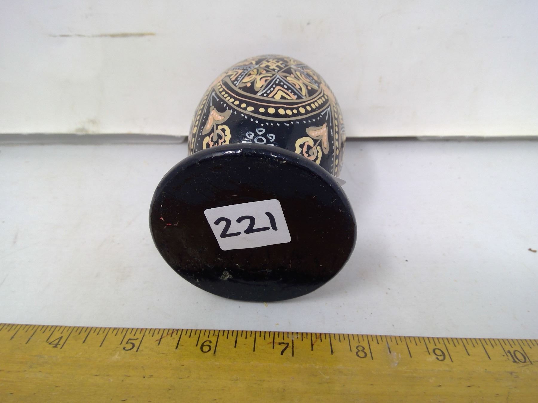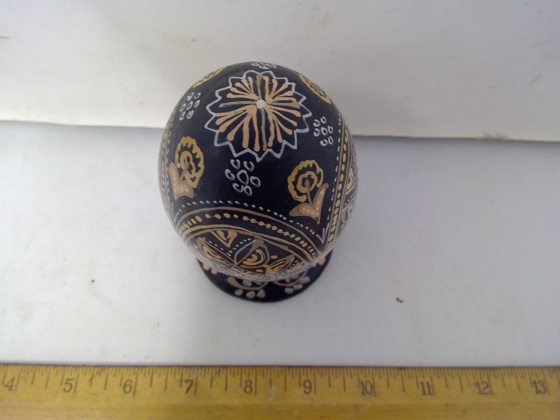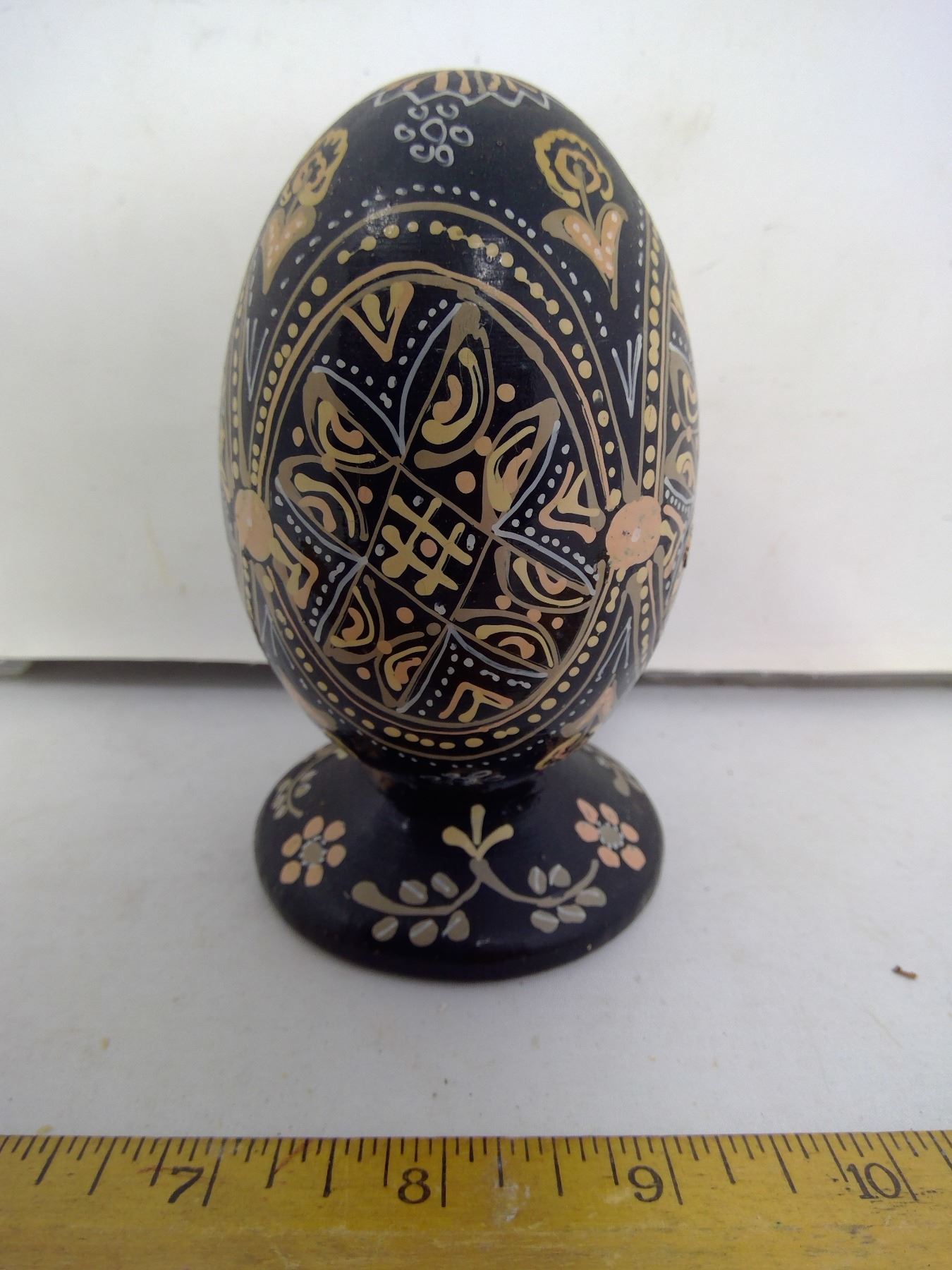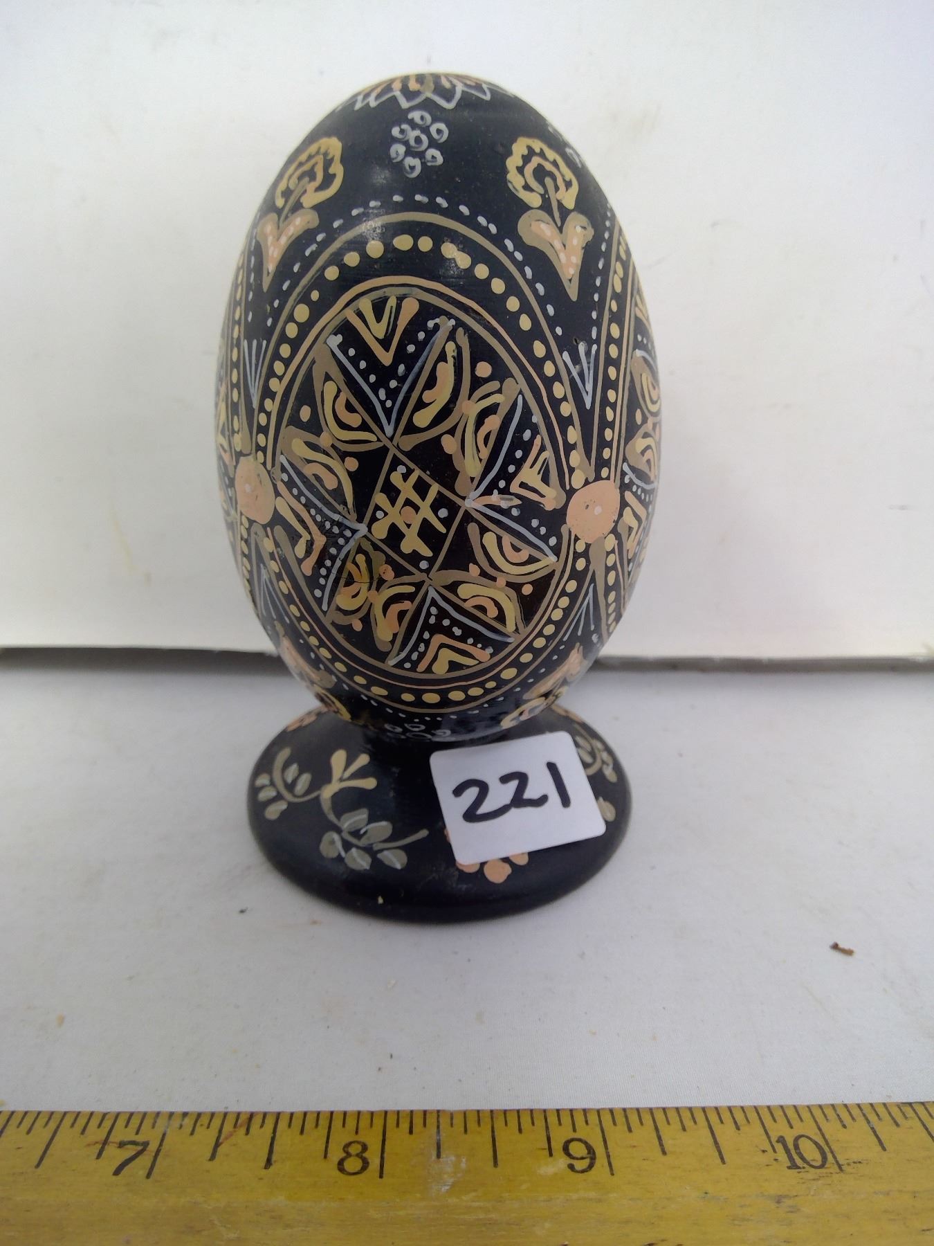 221 Lathe turned wood Ukrainian egg – painted. Height 5”