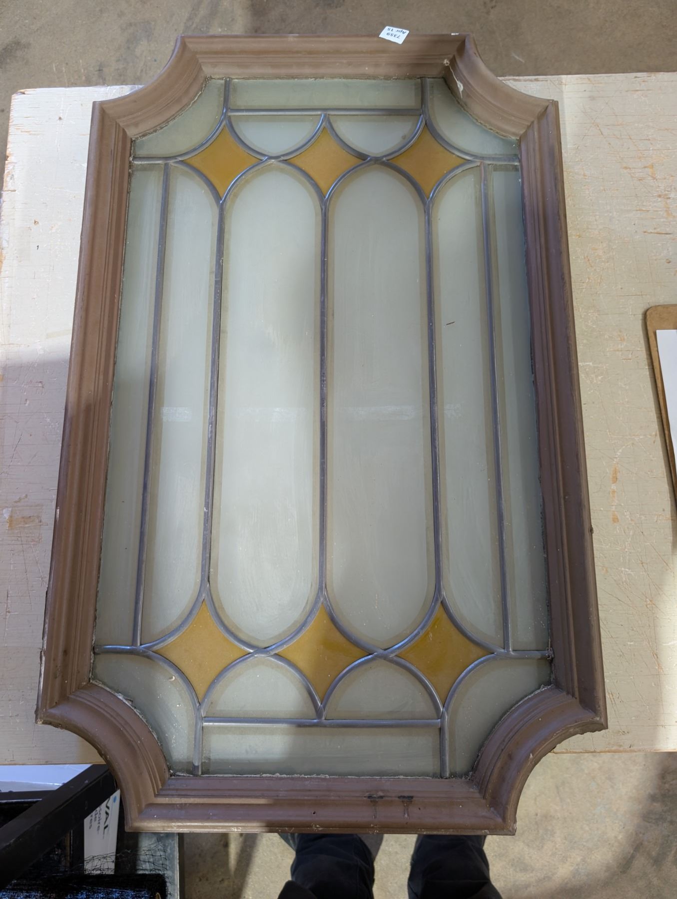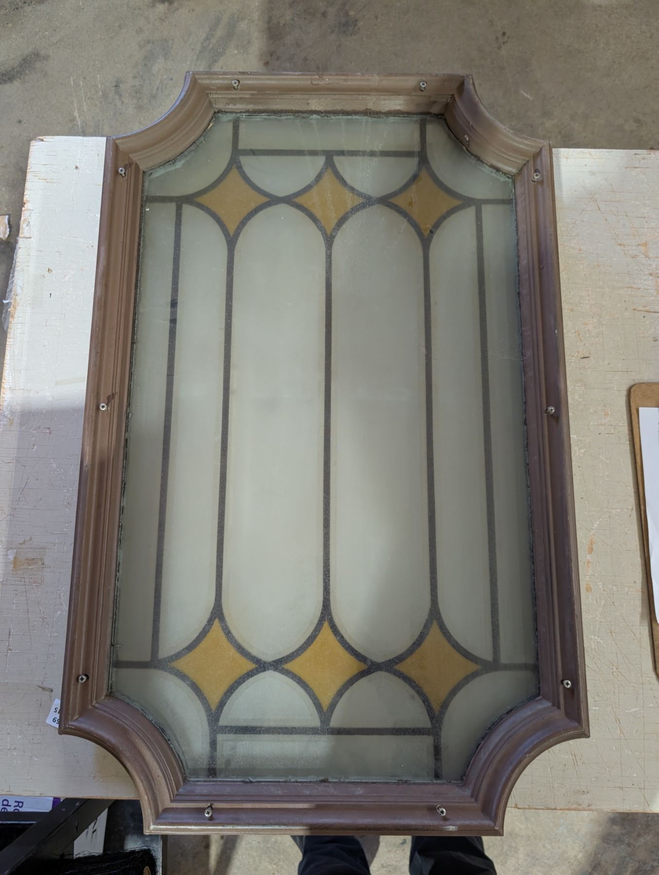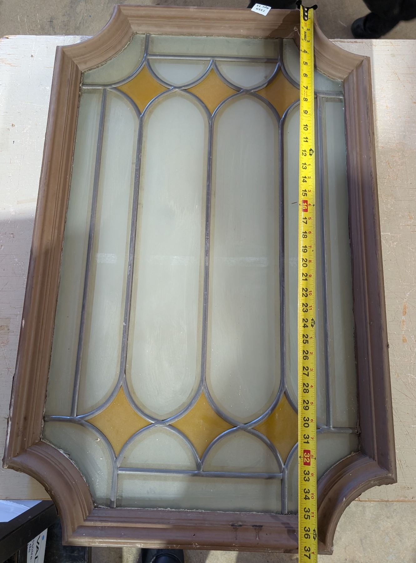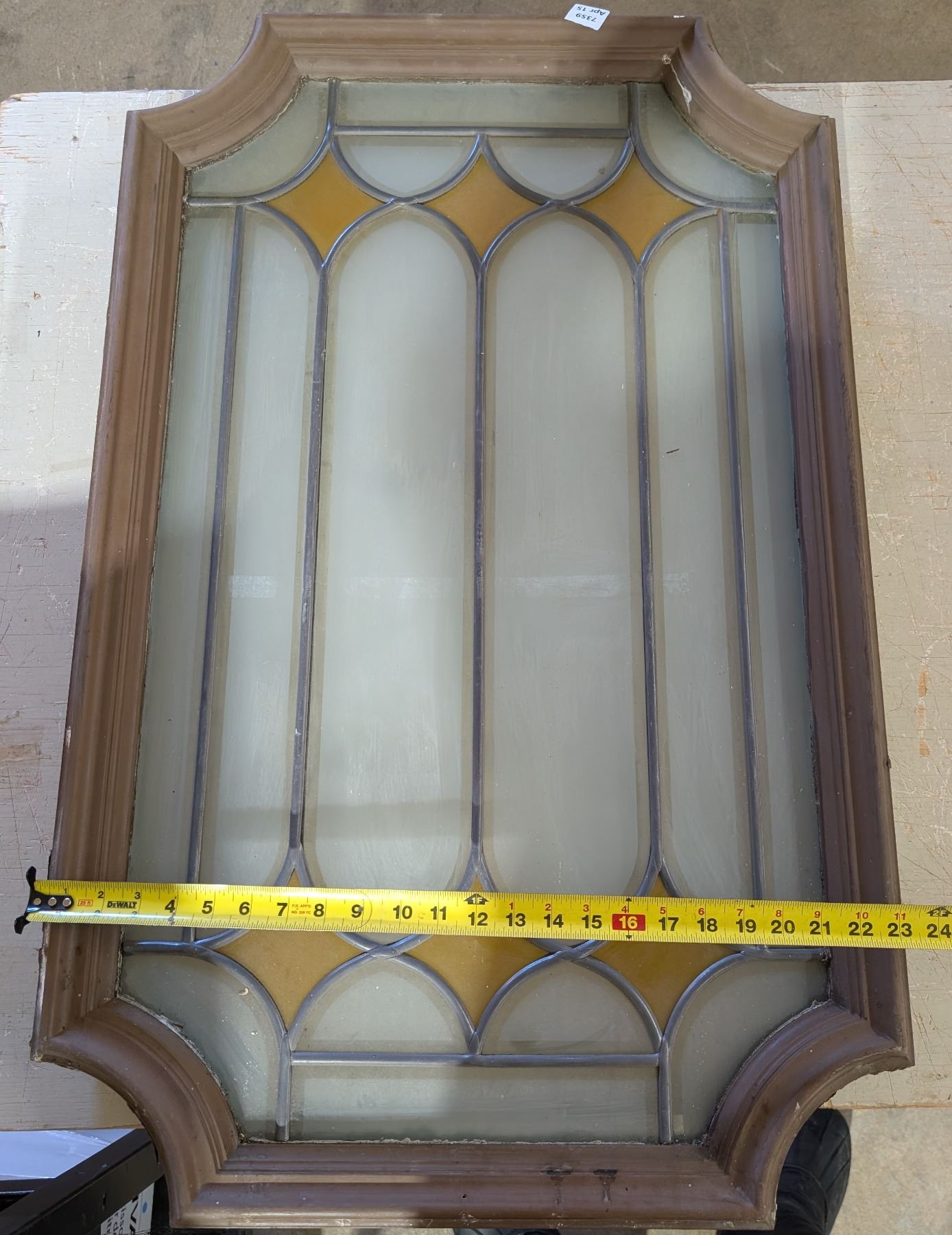 Leaded Glass, Unique Shaped Window w/ Design on Window 37"x23"x4"