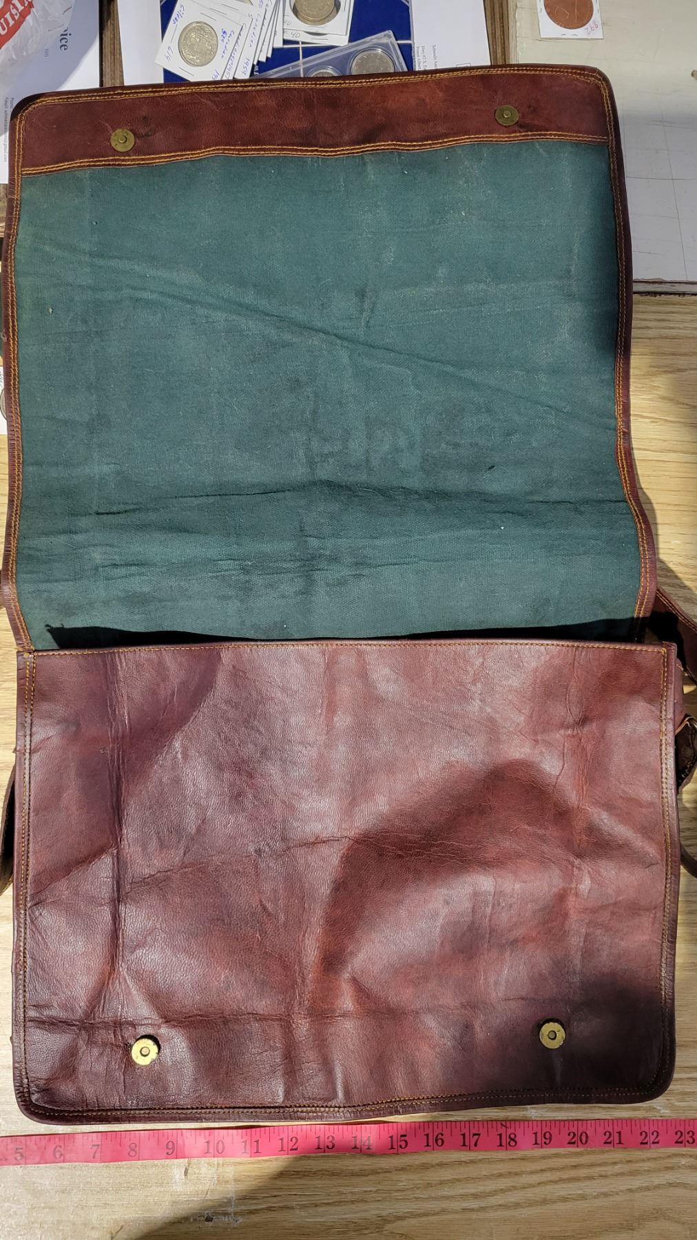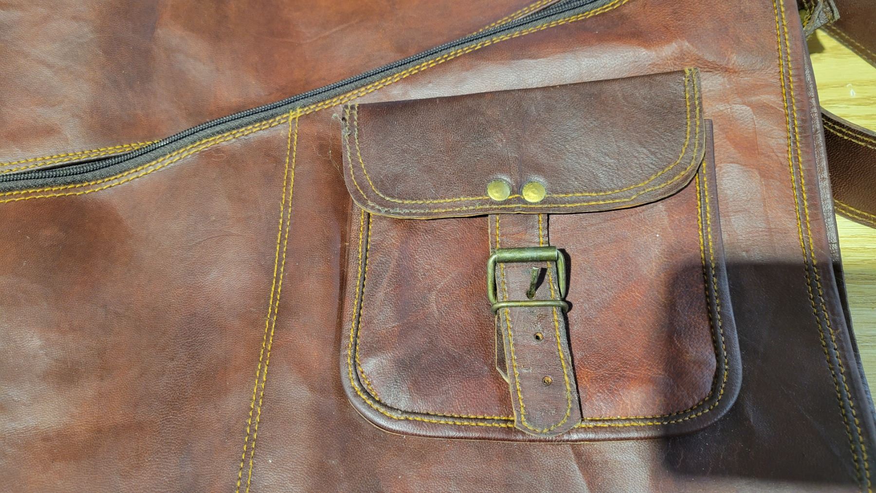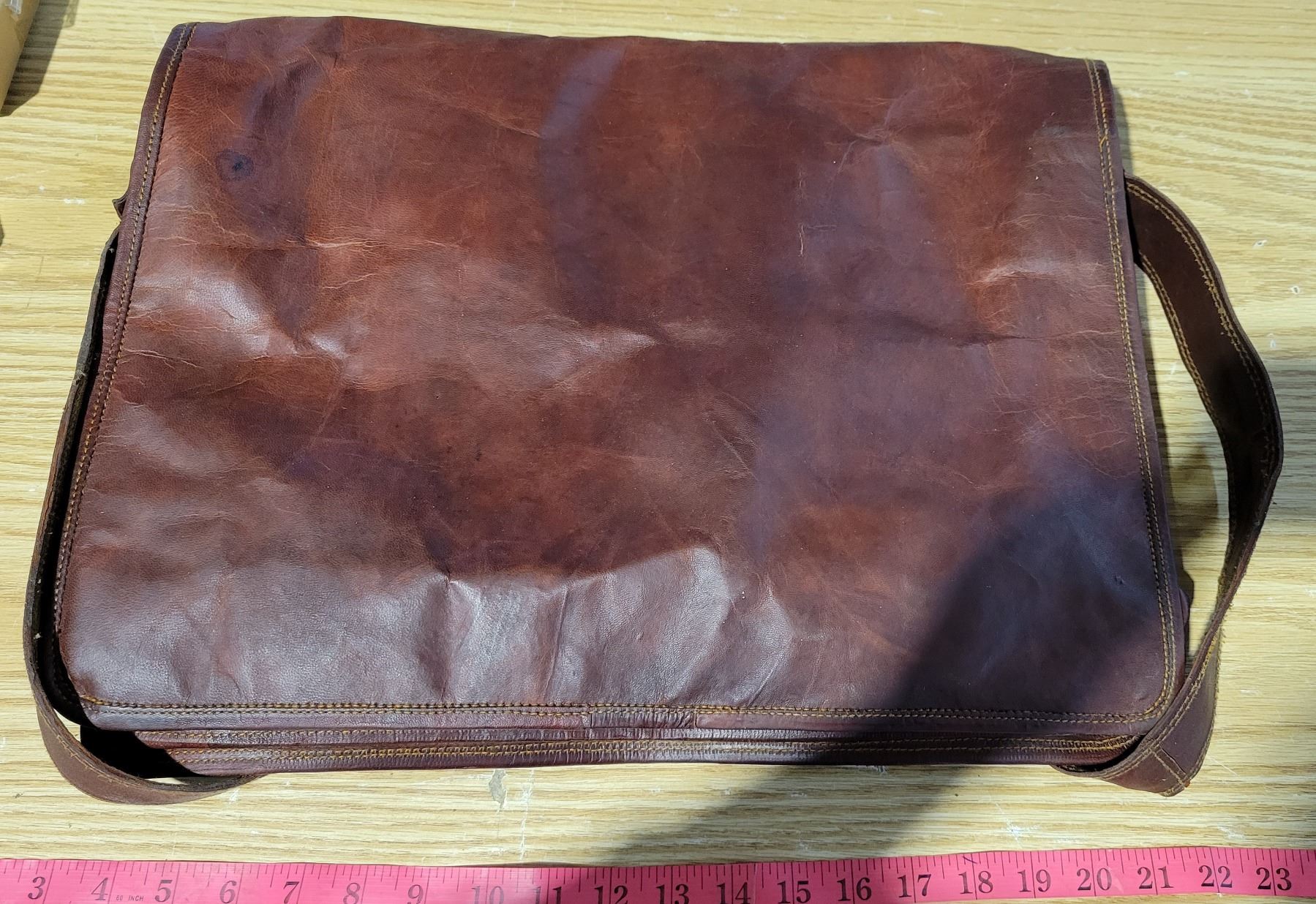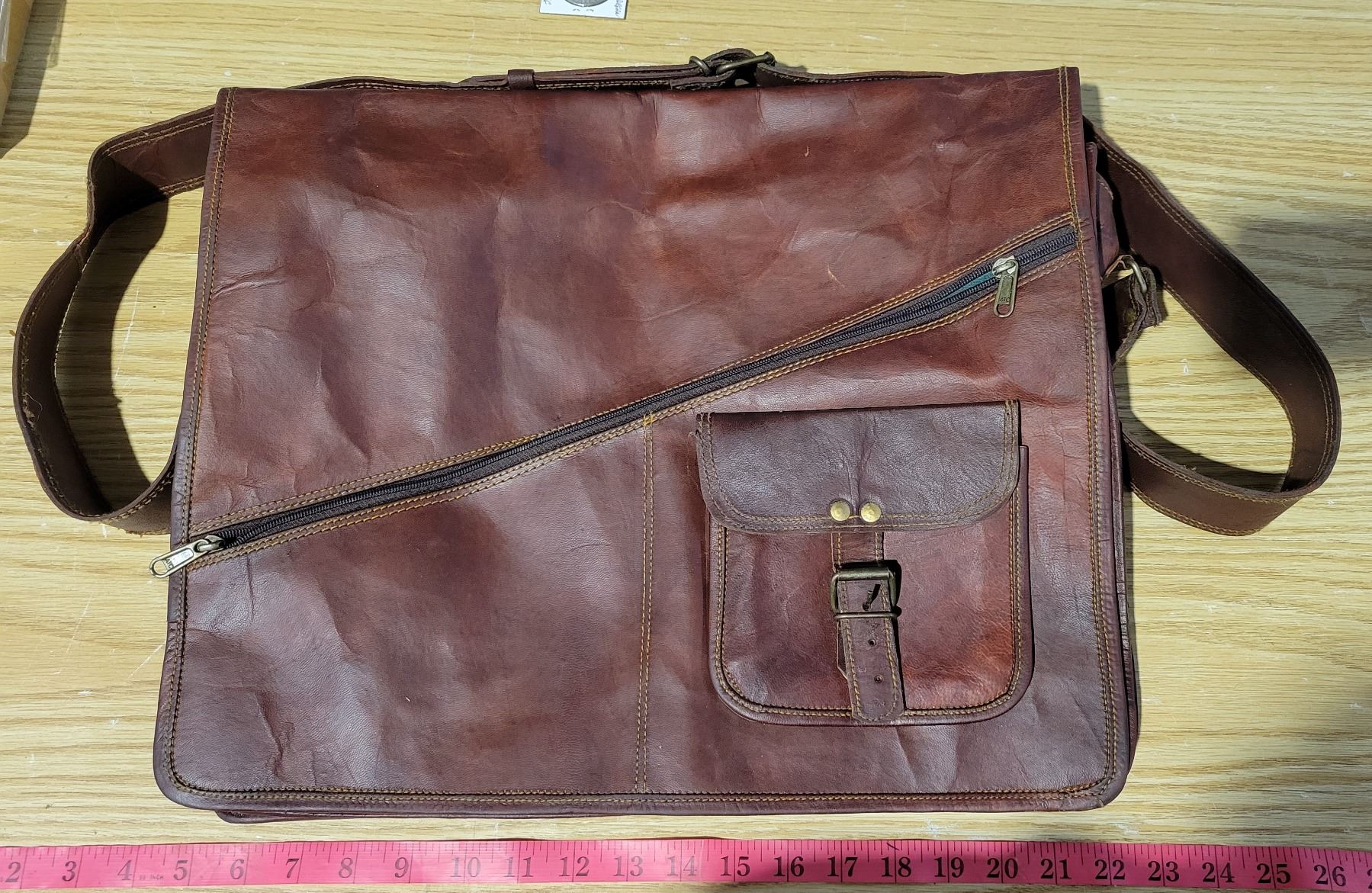 Leather&Brass Shoulder Bag 18"x16"x5.5" Strap: 52"