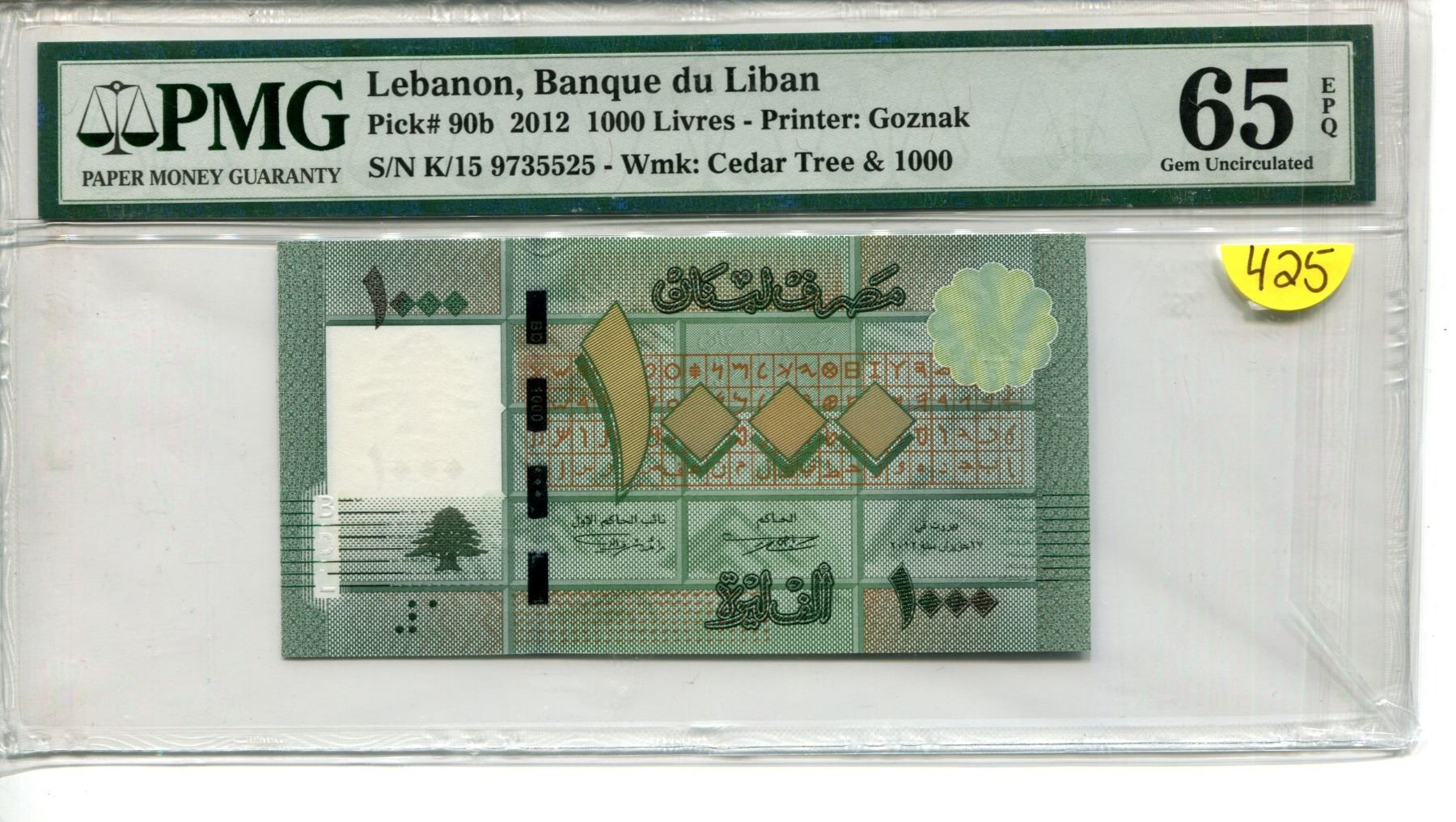 Lebanon 1000 Livres 2012 P 90 GEM UNC PMG 65 EPQ