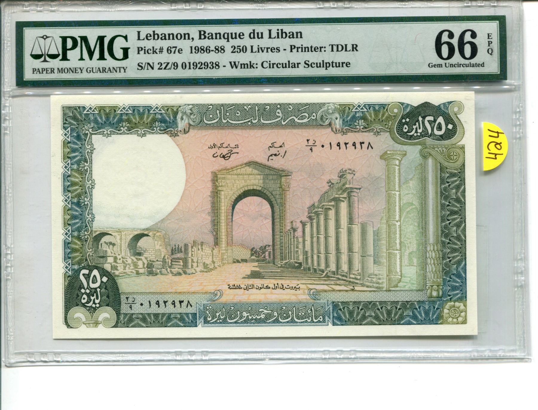 Lebanon 250 Livres 1968 - 1988 P 67 GEM UNC PMG 66 EPQ