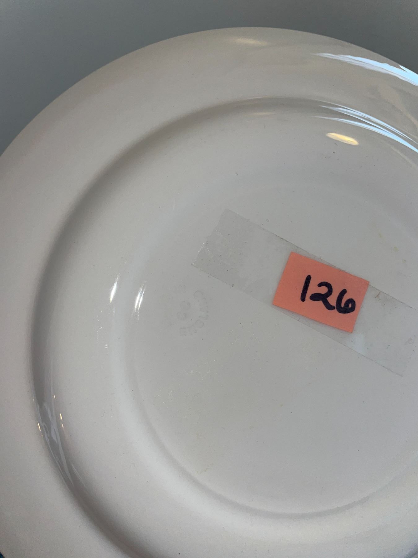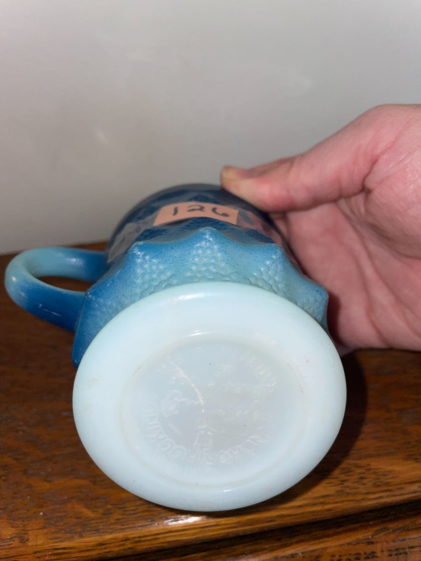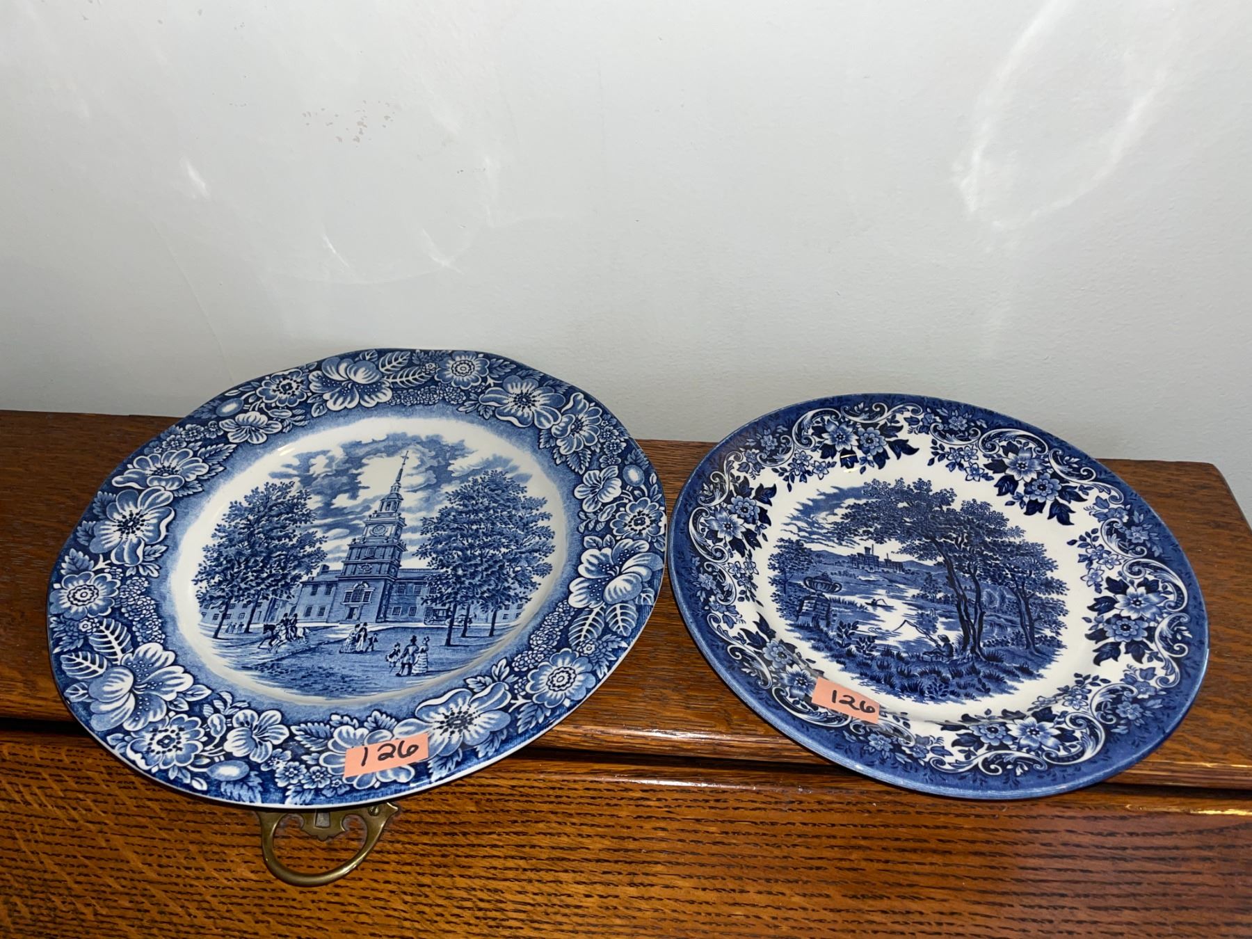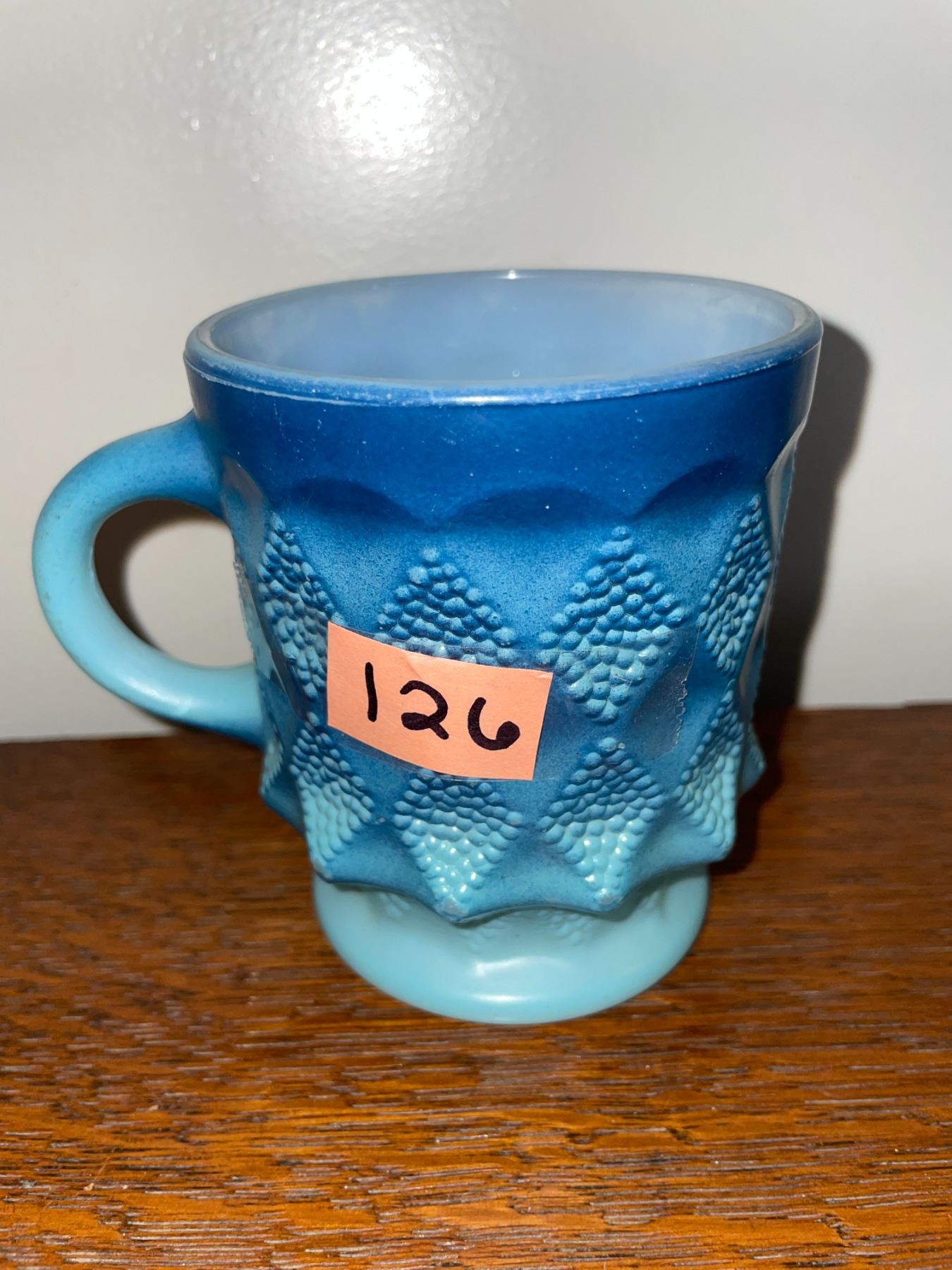 Liberty blue plate, and another English made plate and blue ombré, Kimberly patterned mug, by fire king. No chips or cracks