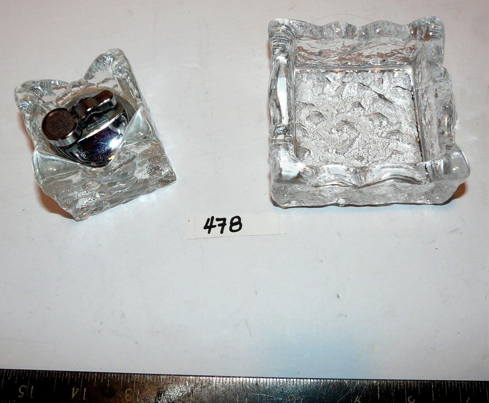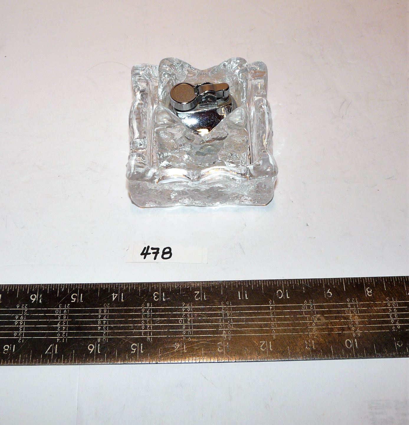 Lighter In Glass Holder & Glass Ashtray