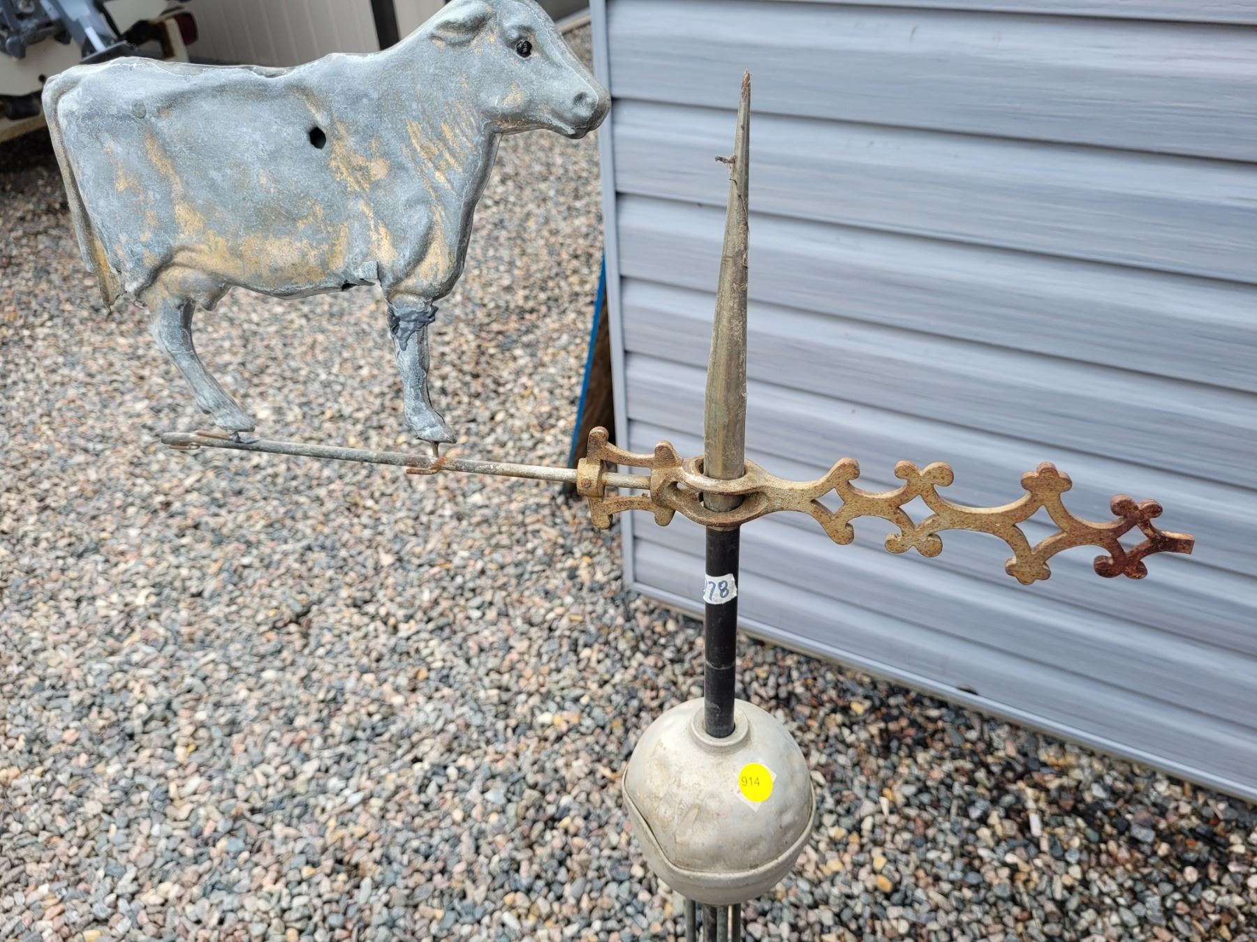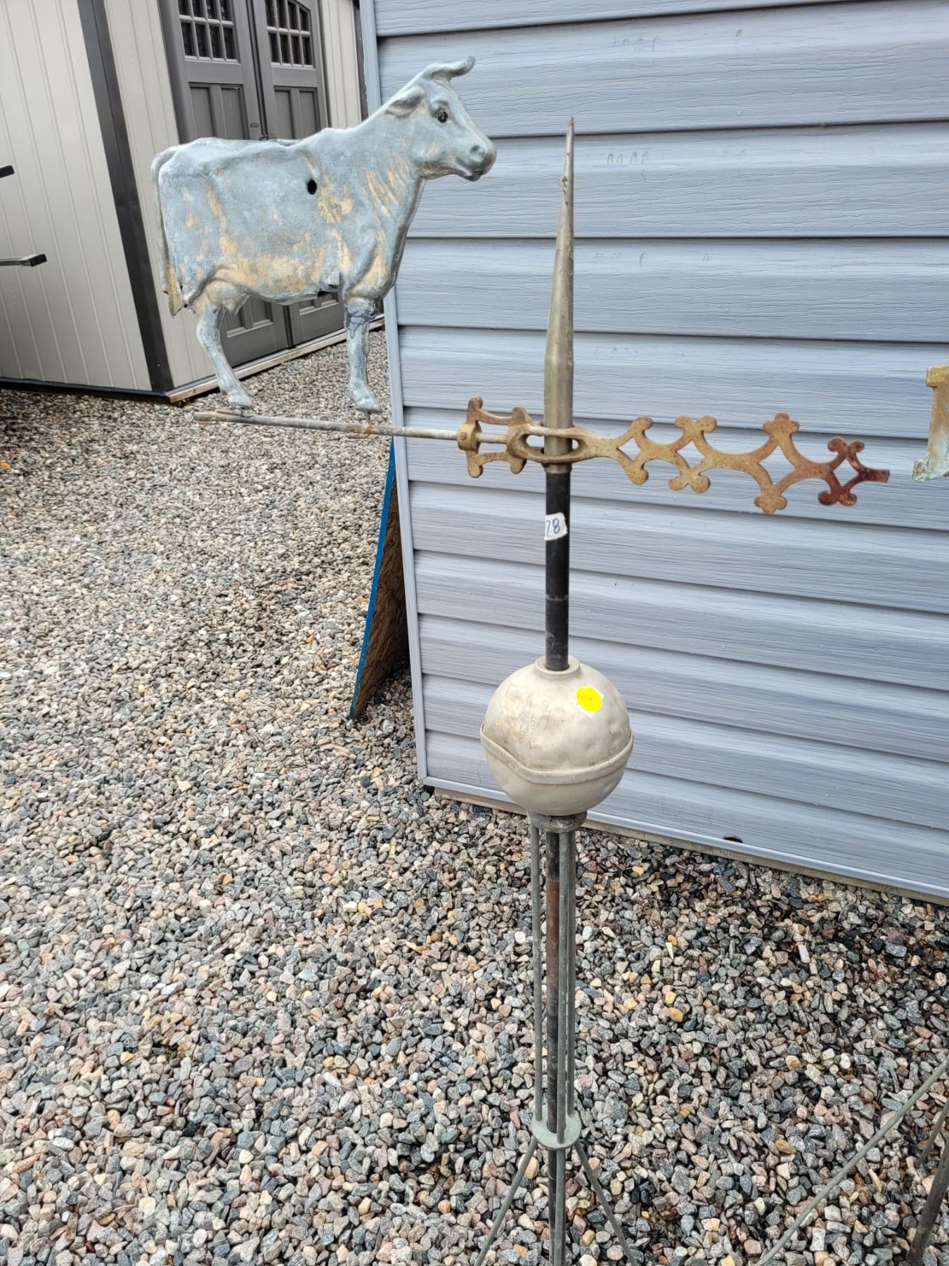 Lightning rod with ball & cow arrow direction - Bessie had her rear leg shot off