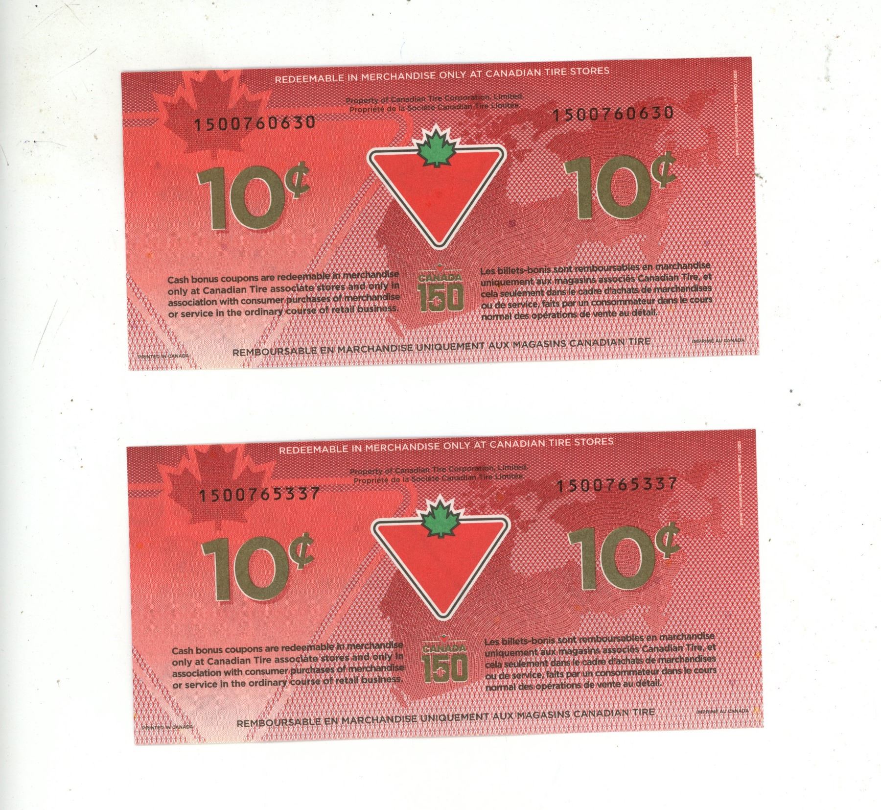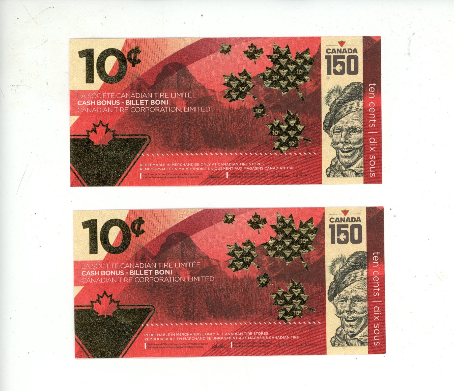 Limited edition- canadian tire"money" 10 cent bill- canada's 150th birthday in 2017
