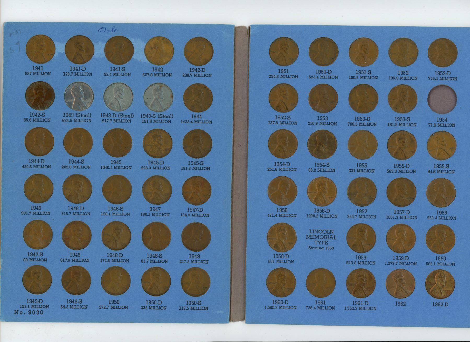 Lincoln head cents 1941-1972D- missing some cents