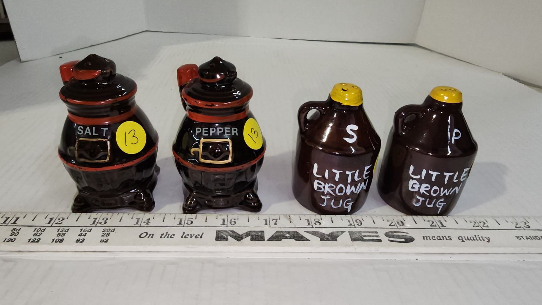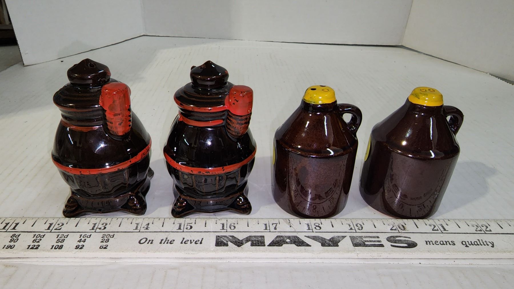 Little Brown Jug & Pot Belly Stove S & P Shakers, Vintage 1950-60