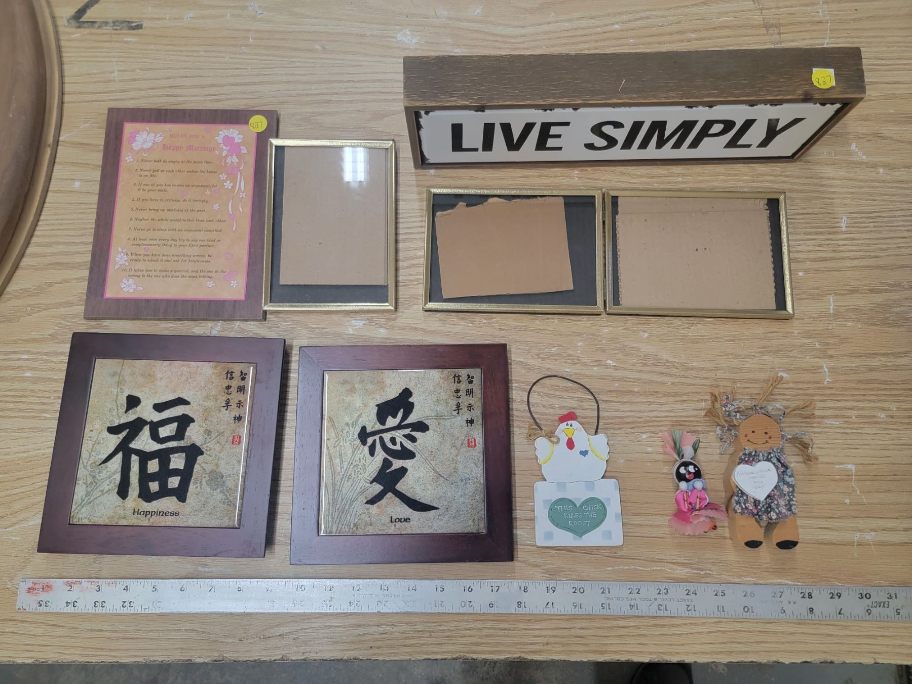 Live Simple wooden sign & lot of wall hangings & magnets