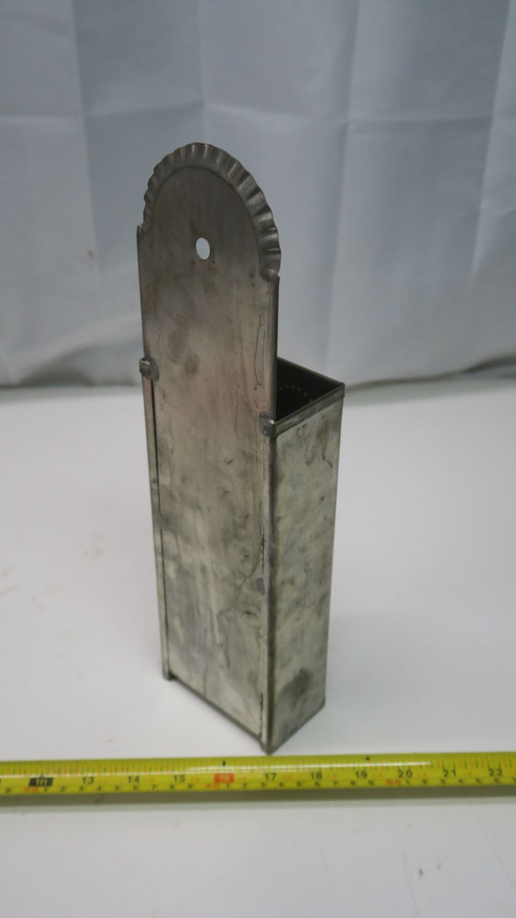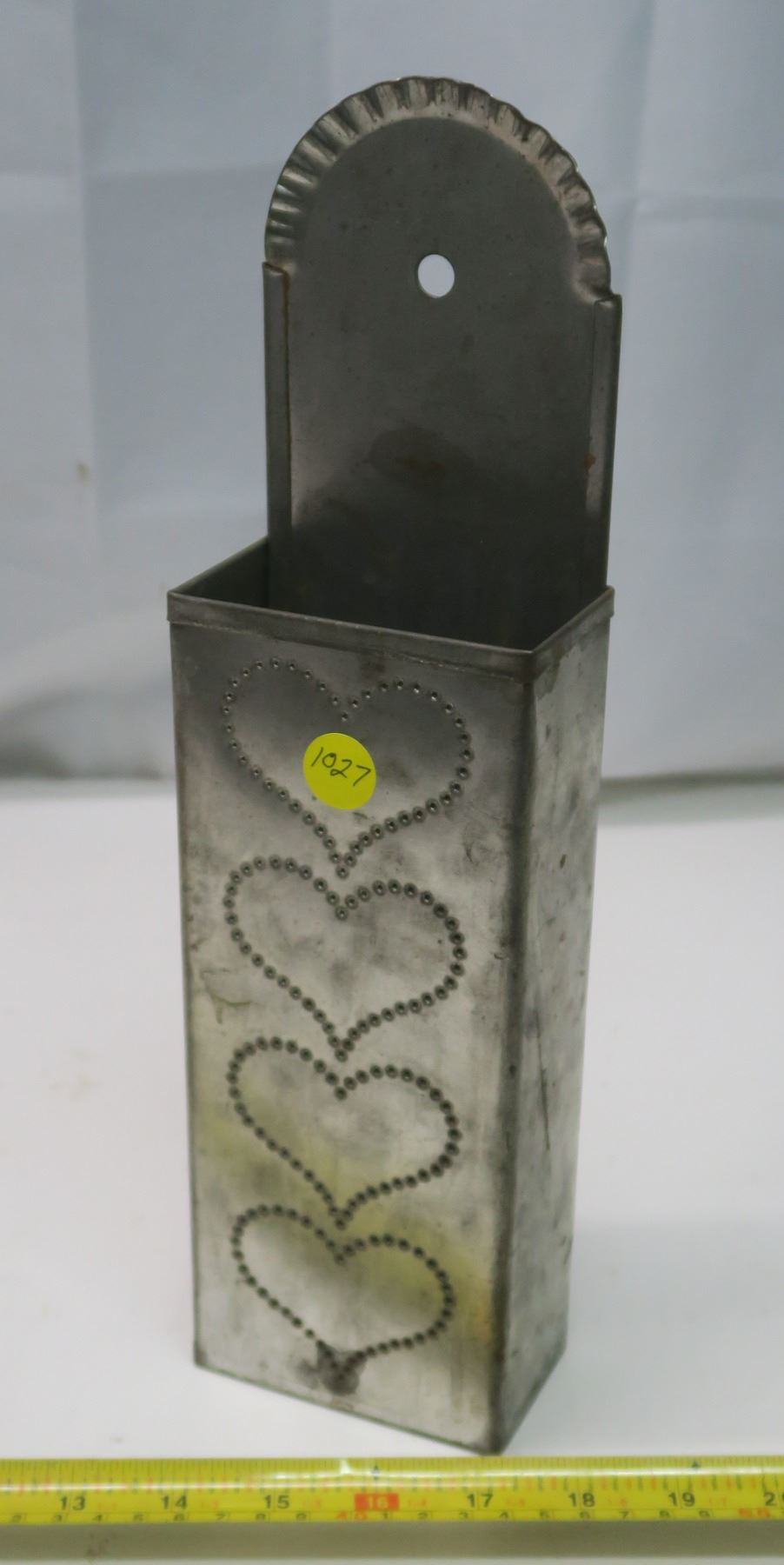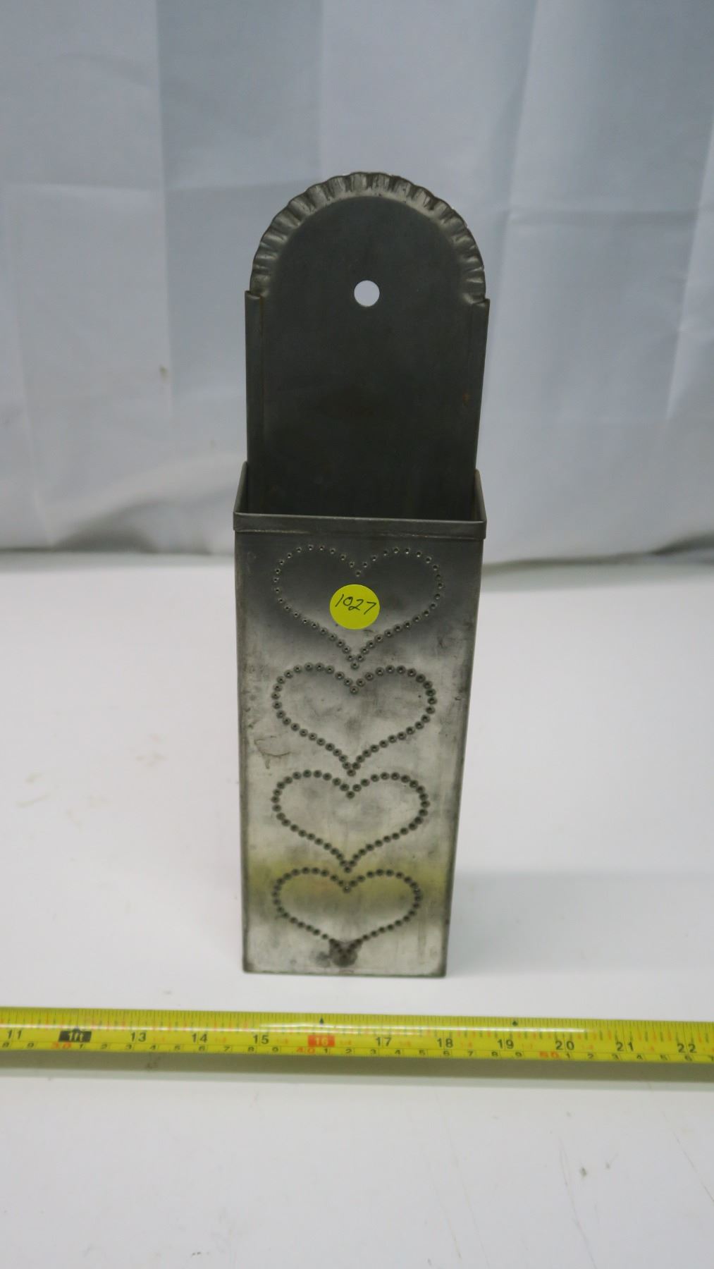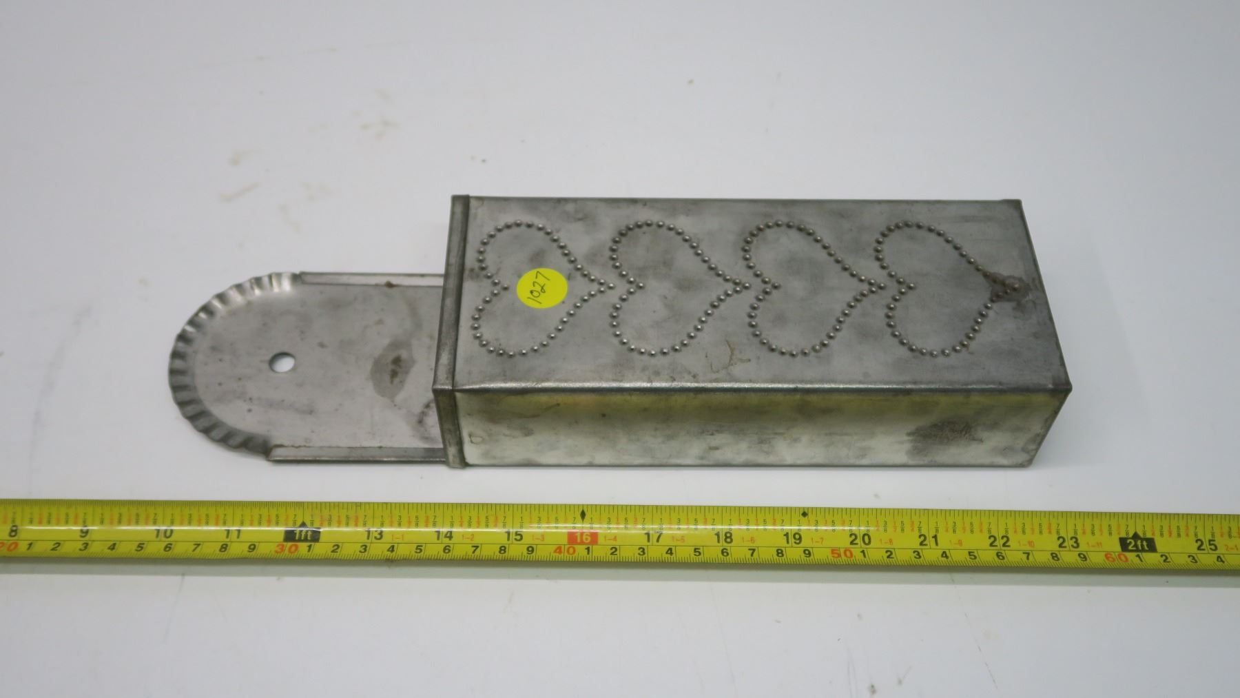 Long Match Holder - Galvenized Tin Crimped Top & HeartShaped Pattern - Wall Mount