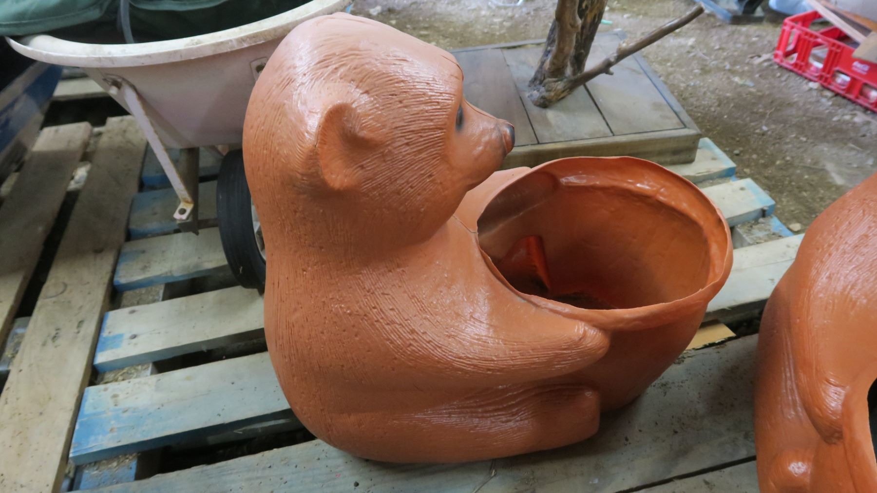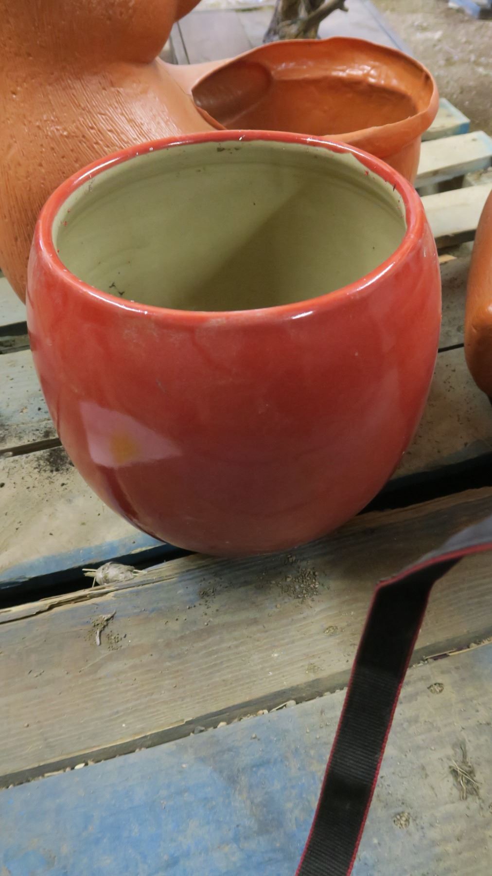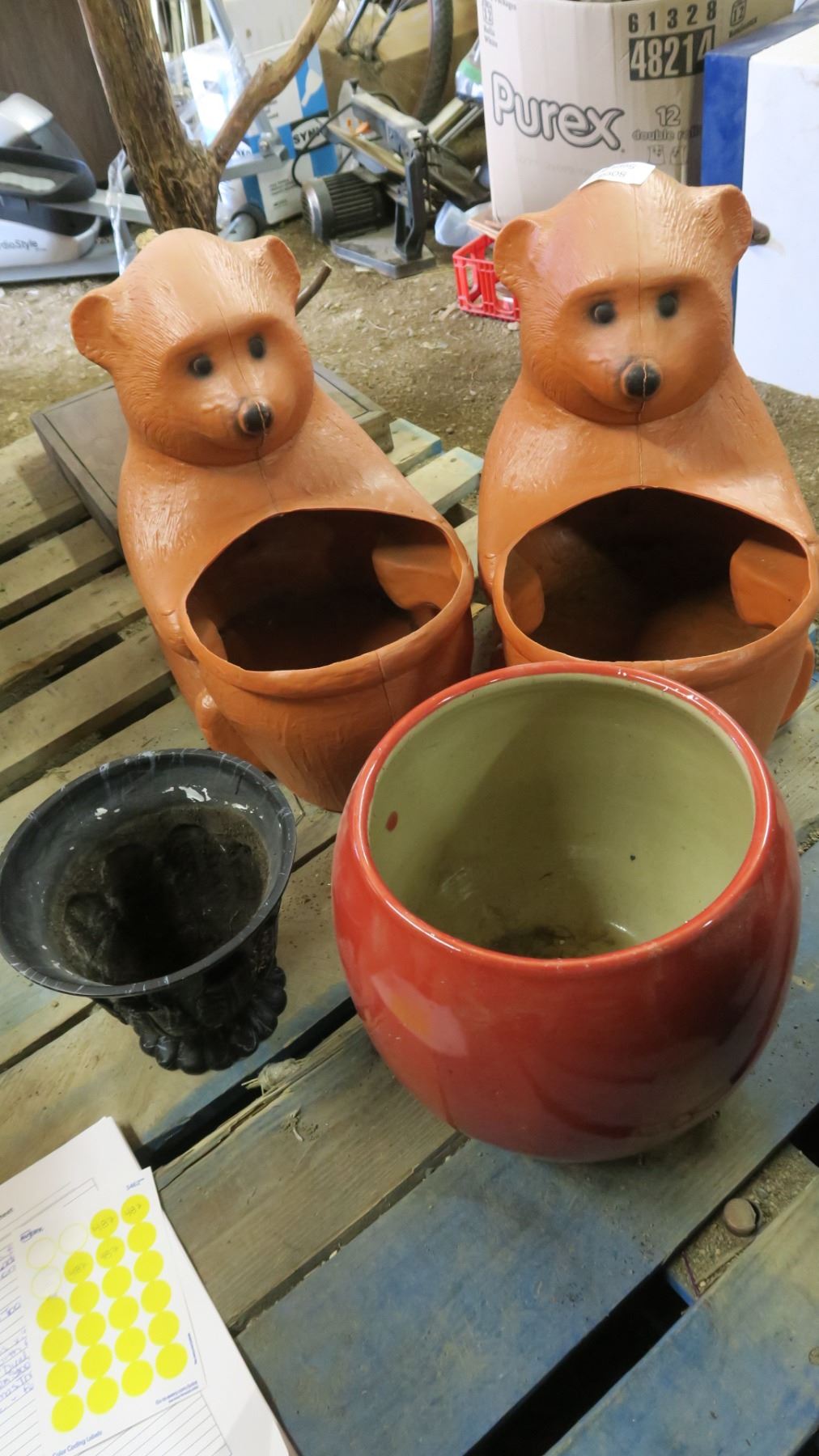 Lot 2 Plastic Bear Flower Pots, Red Ceramic Flower Pot, Black Flower Pot