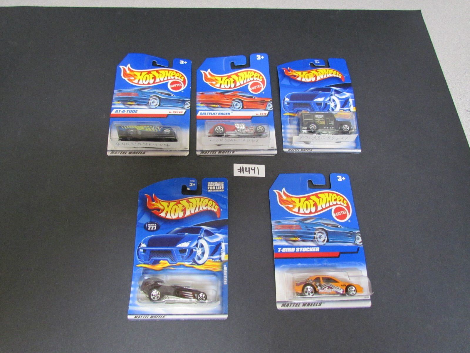 Lot#31-5- Hotwheels-Skull Rider,T-Bird Strocker,At-a-tude,Saltflat Racer, Armored Car
