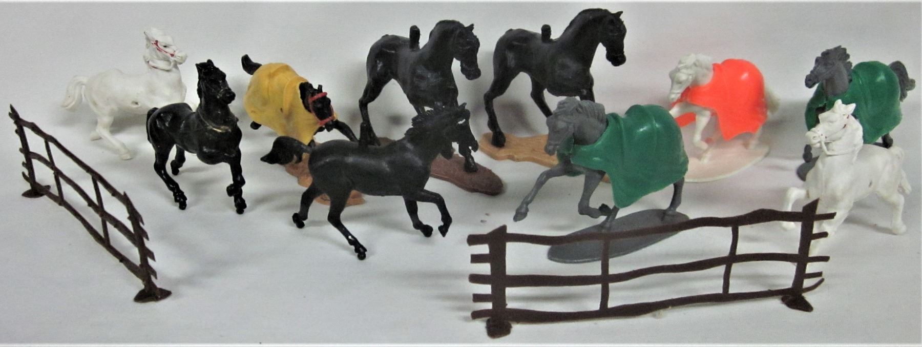 Lot 32 Plastic Horses, Action Figures, Fencing