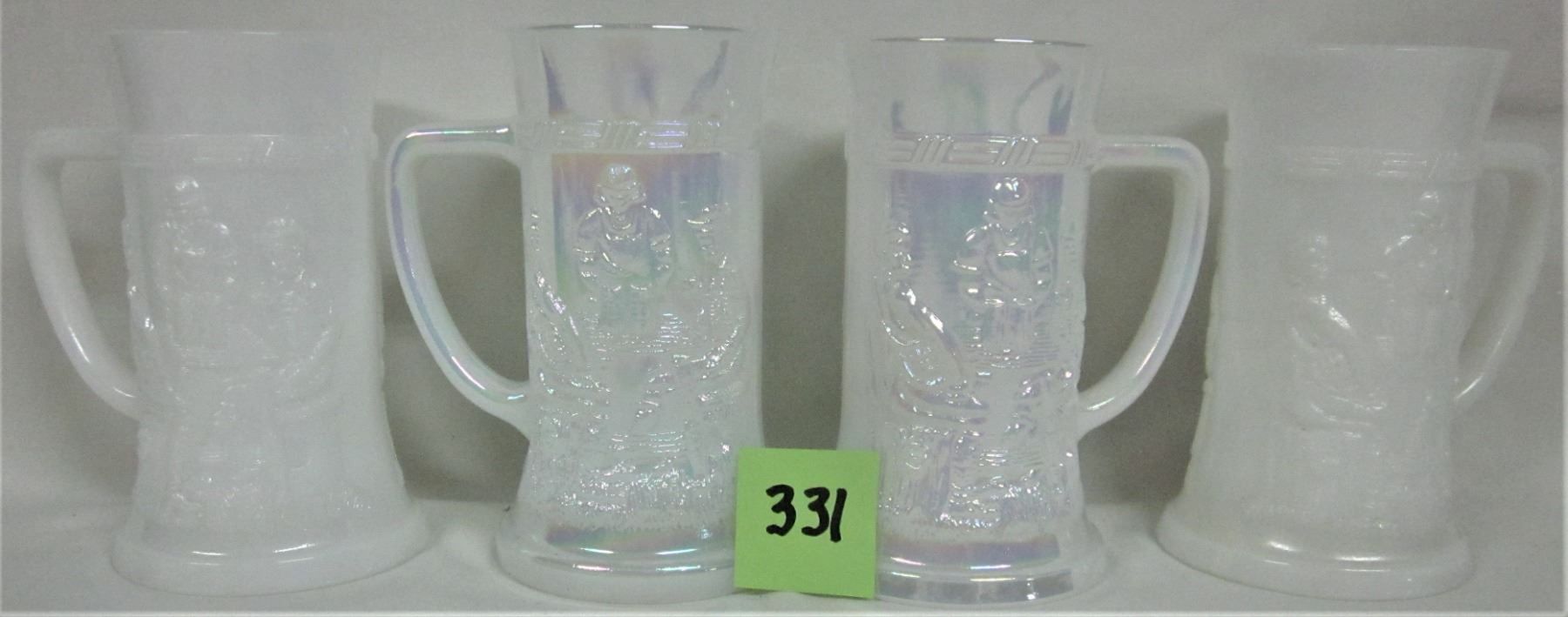 Lot 4 6" White Milk Glass "Embossed" Mugs 2 Iridesent Pearlized