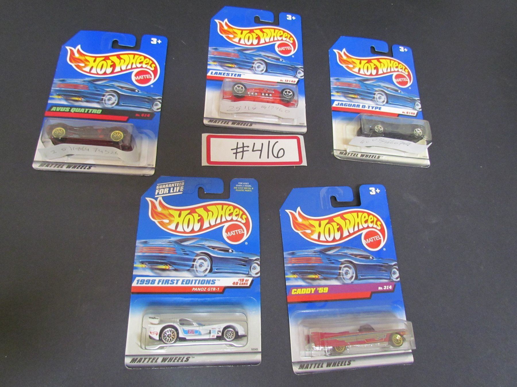 Lot#6-5 Hotwheels- 98 1st Ed. PanozGTR1,Avus Quatto,Lakester,Caddy 59,Jaguar D Type