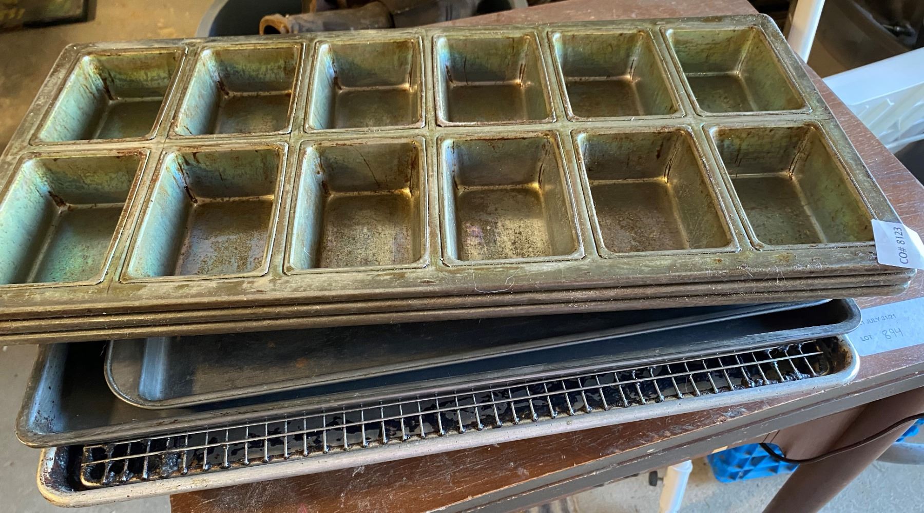 Lot Bakeware, 3 Heavy Duty Mini Loaf Pans, 3 Shallow Baking Sheets, Shallow Baking Sheet with Rack
