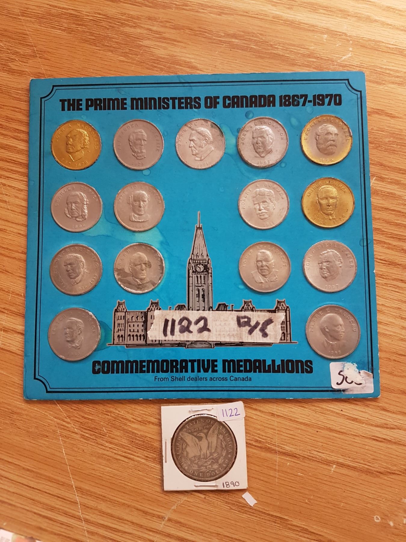 Lot Coins & Reproduction 1890 1 Dollar Coin