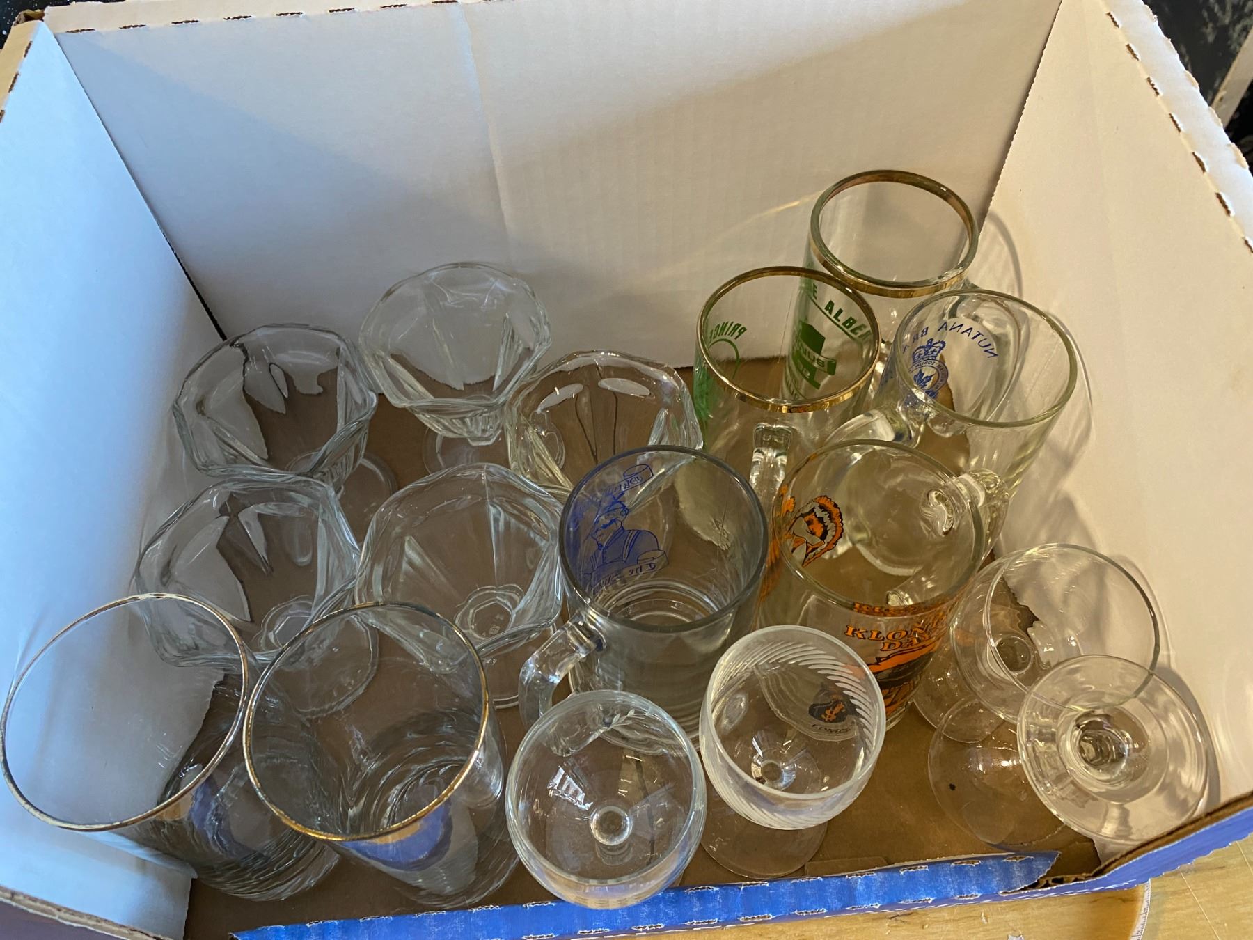 Lot Dishes, 5 Ice Cream Dishes, 2 Olympic Tall Glasses, 5 Assorted Beer Mugs, 4 Wine Glasses