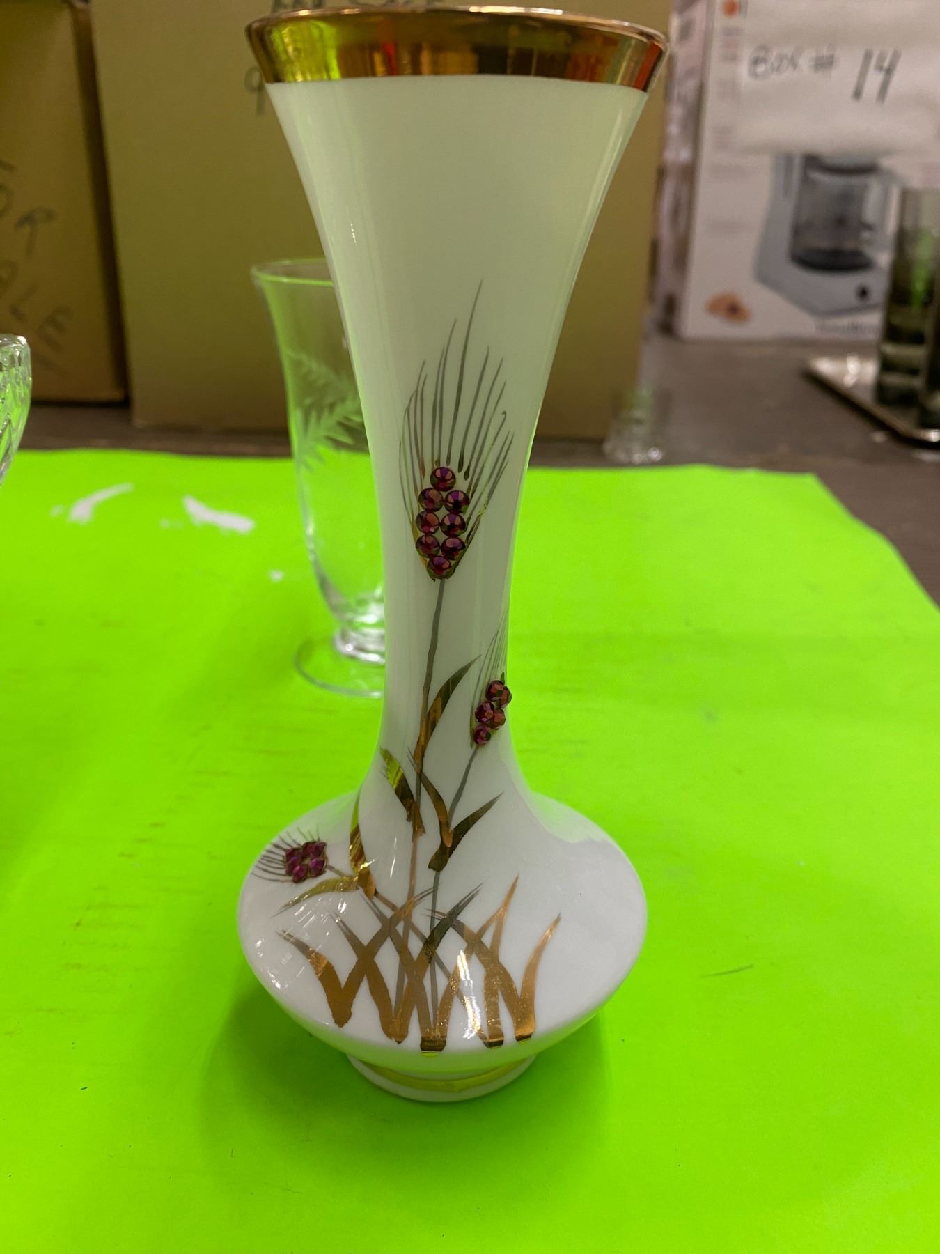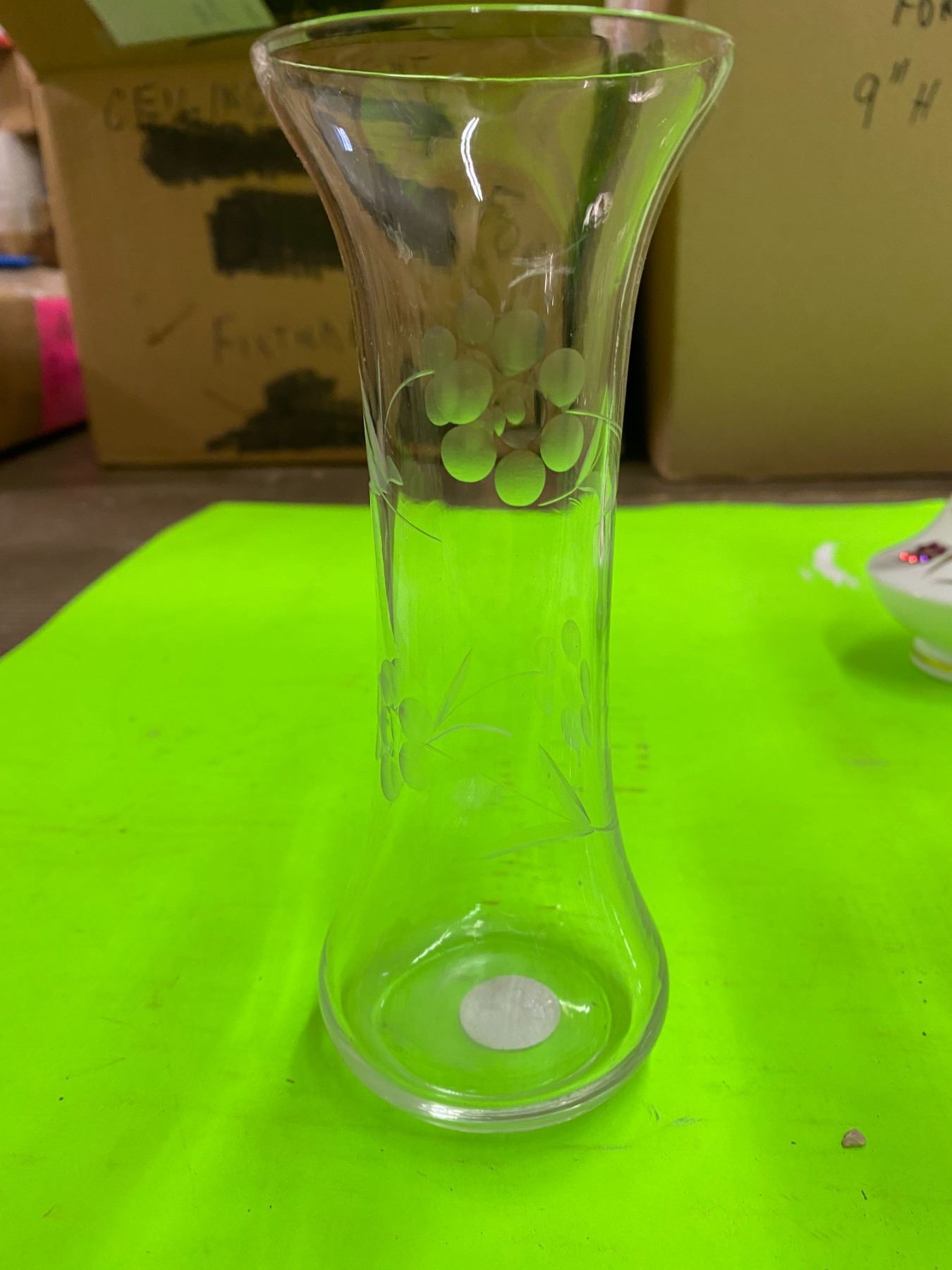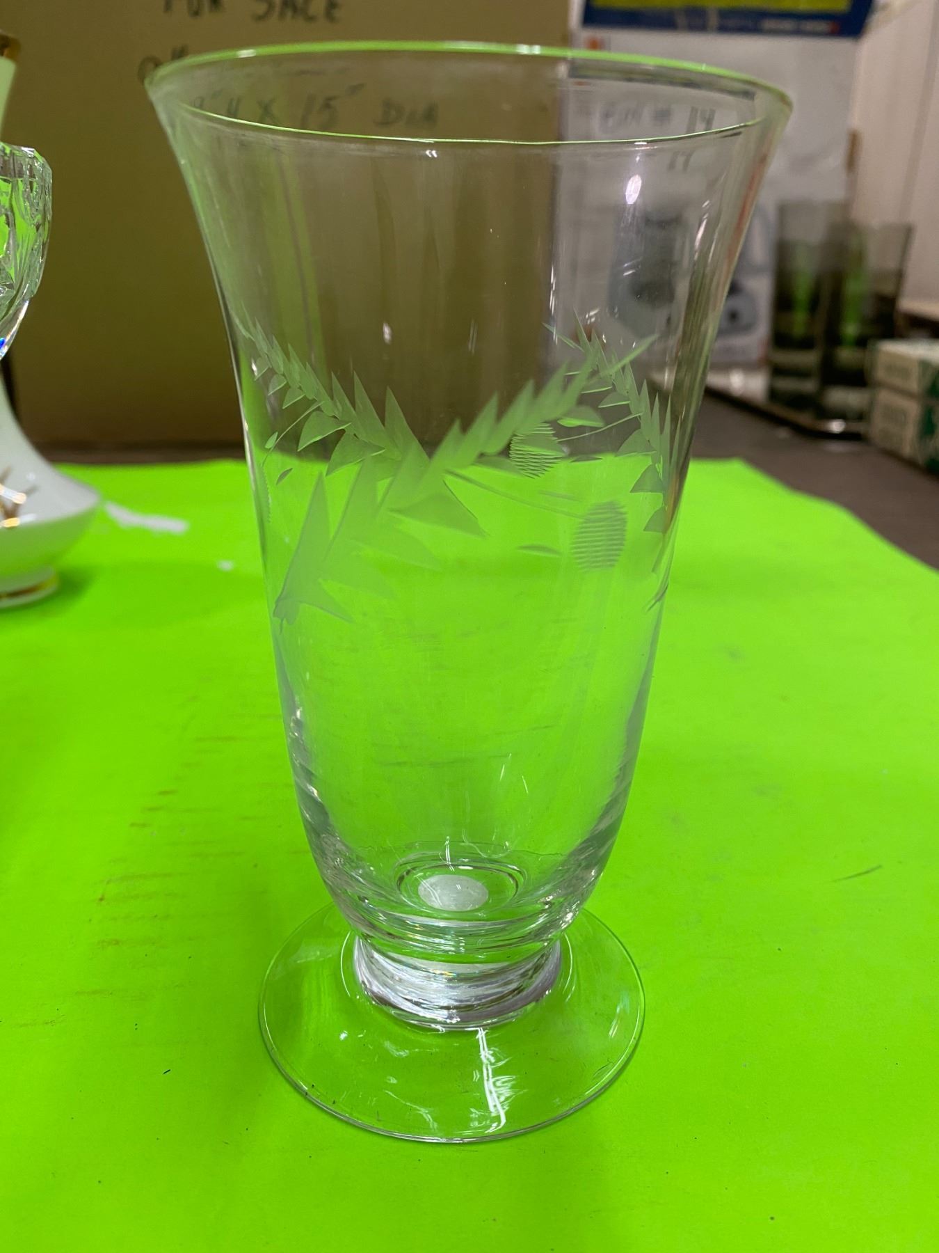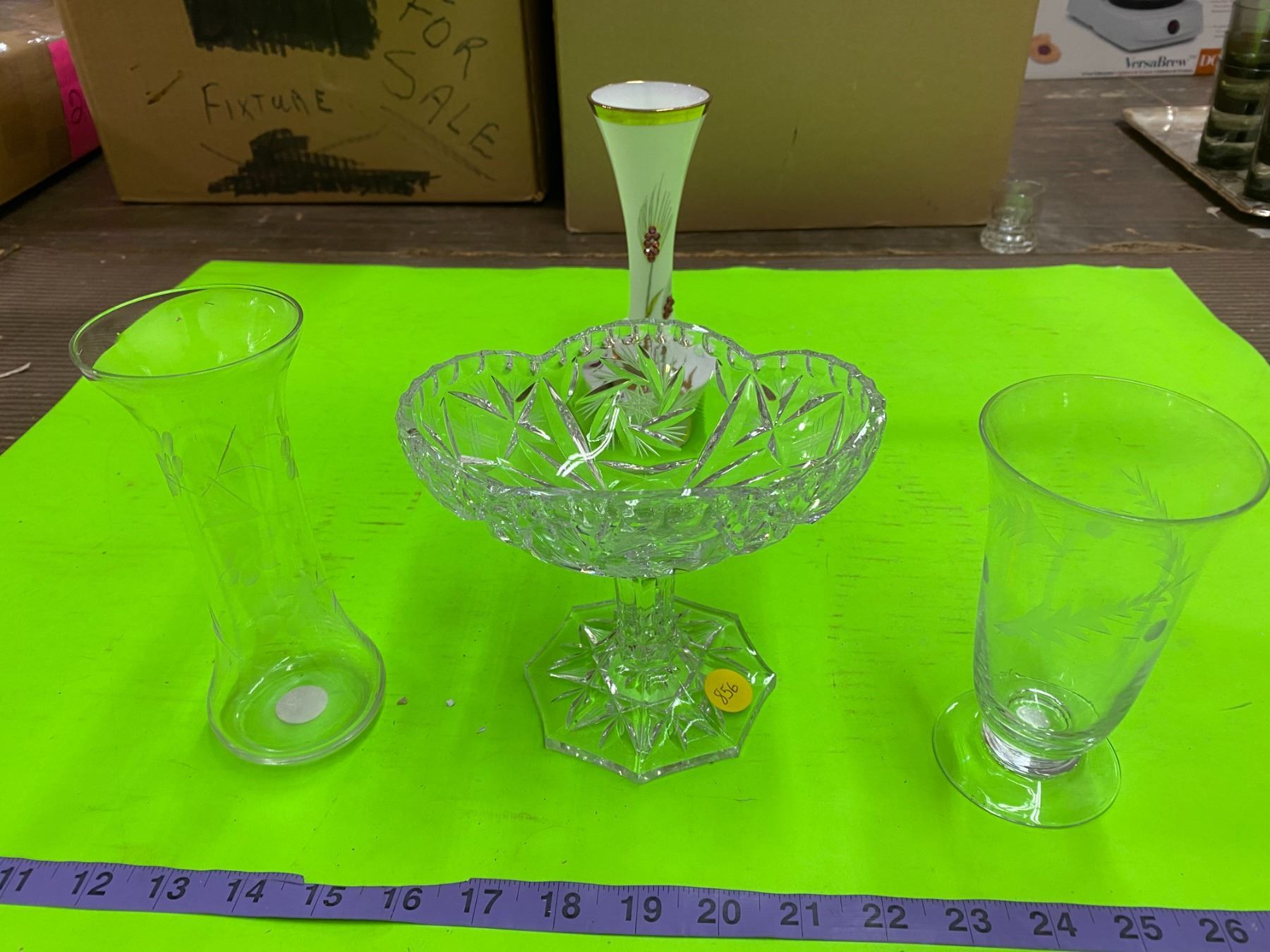 Lot Etched Glass Vases & Pedestal Bowl Etc.