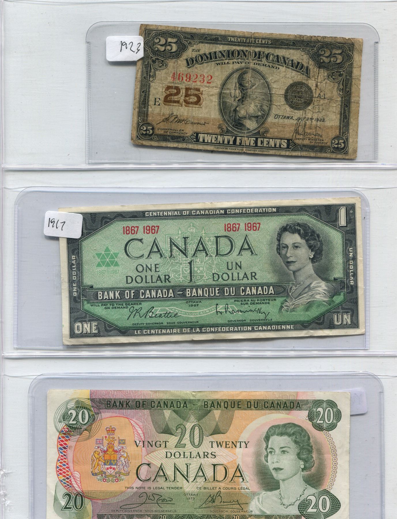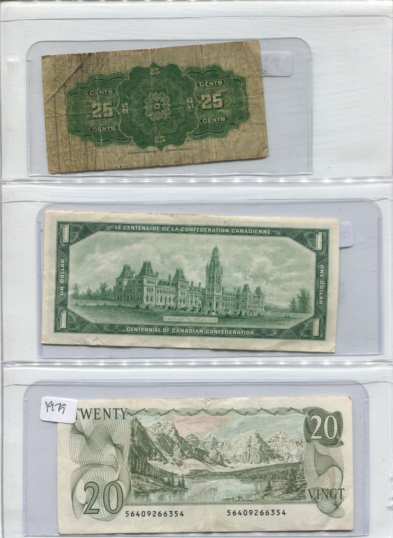 Lot Of 3 Canadian Bills 1923 + 1967 + 1979