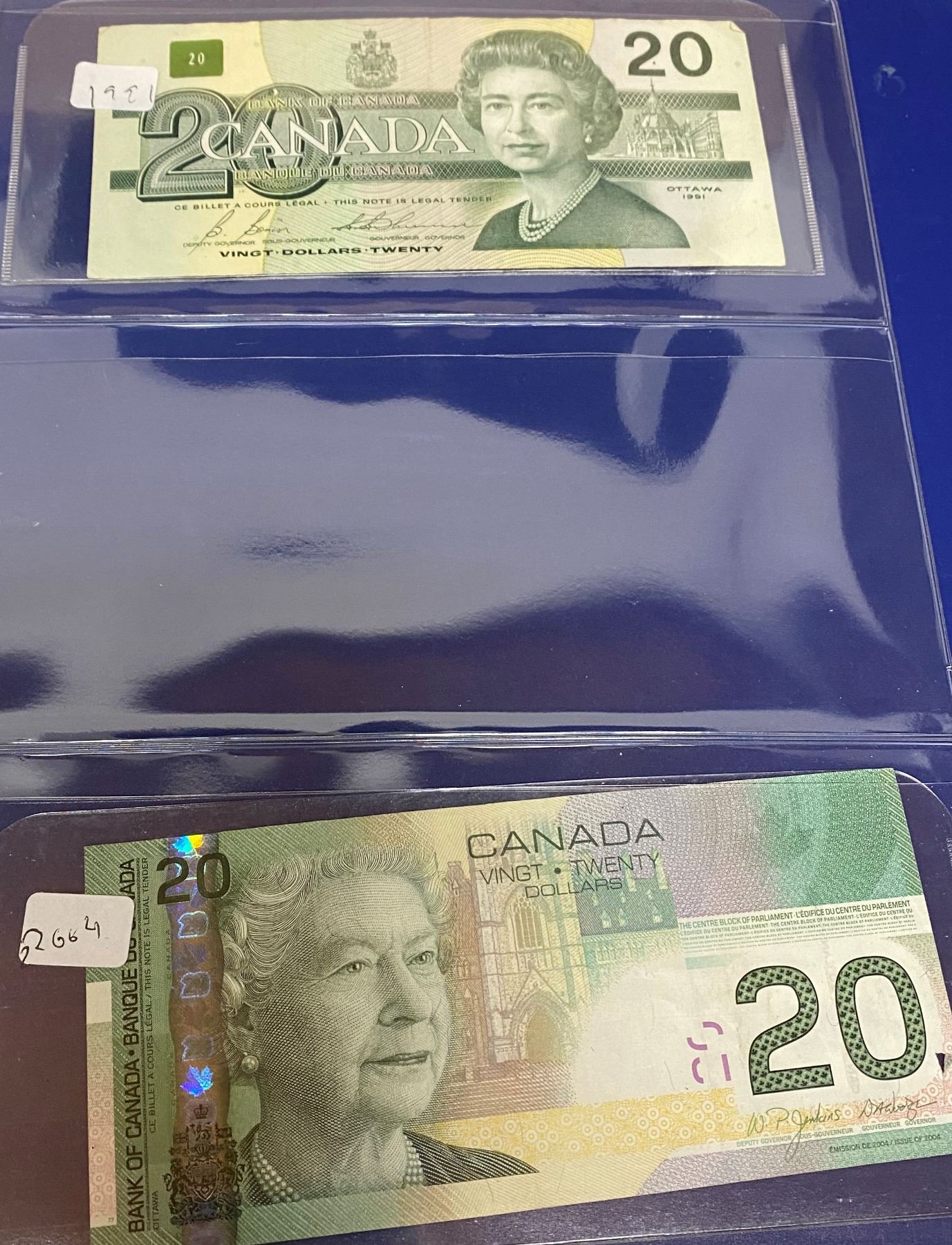 Lot Of (4) 20 Dollar Canadian Bills 1954 (Devils Face), 1979, 1991, 2004