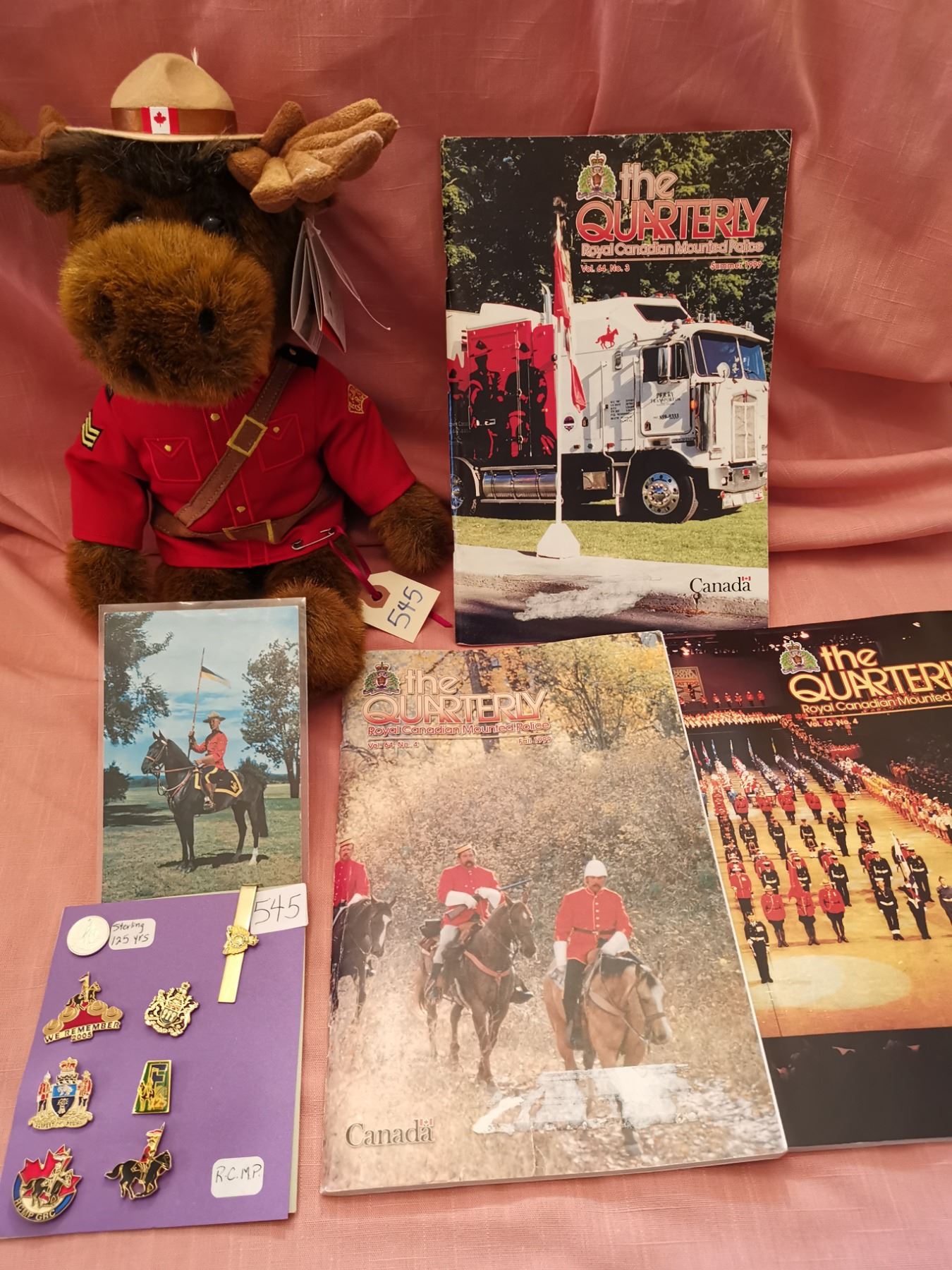 Lot RCMP Quarterlies/Lapel pins/tie bar/ stuffed moose