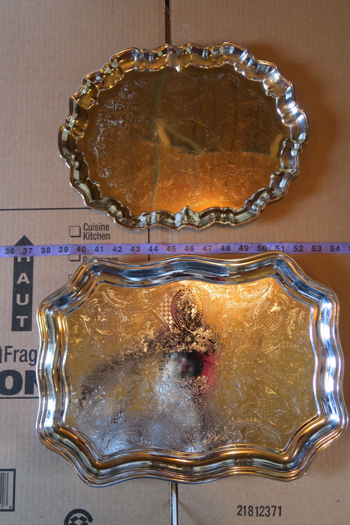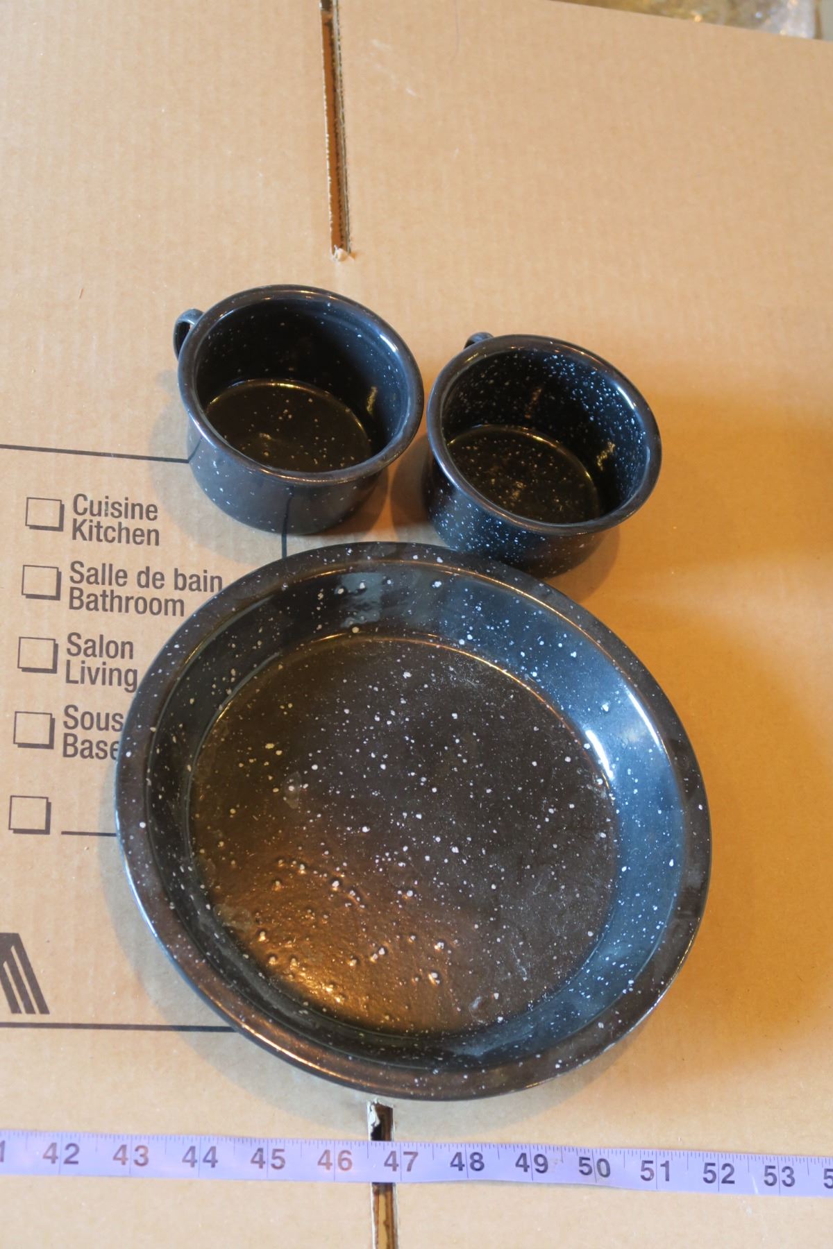 Lot Serving platters, Enamelware set & misc.