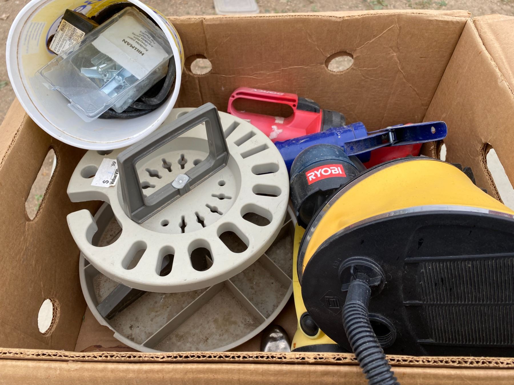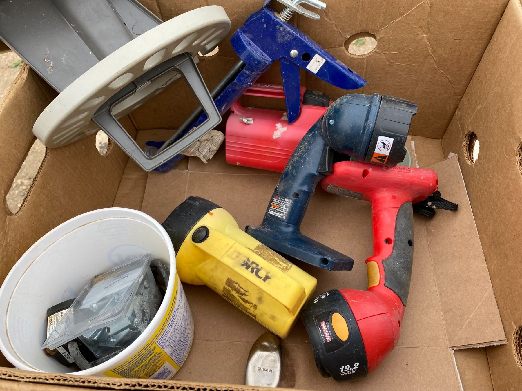 Lot Tools Flashlights, Foot Pump, Garden Hose Reel