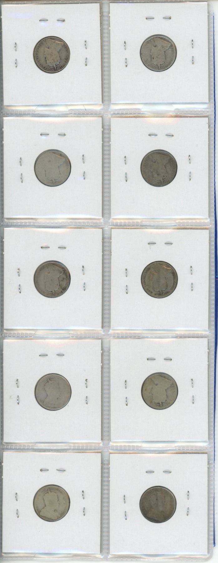 Lot of 10 Canadian Edward VII Silver 10 Cents. Includes 1902, 1902H, 1903H, 1904, 1905, 1906, 1907, 1908, 1909 & 1910. Coins grade Good.