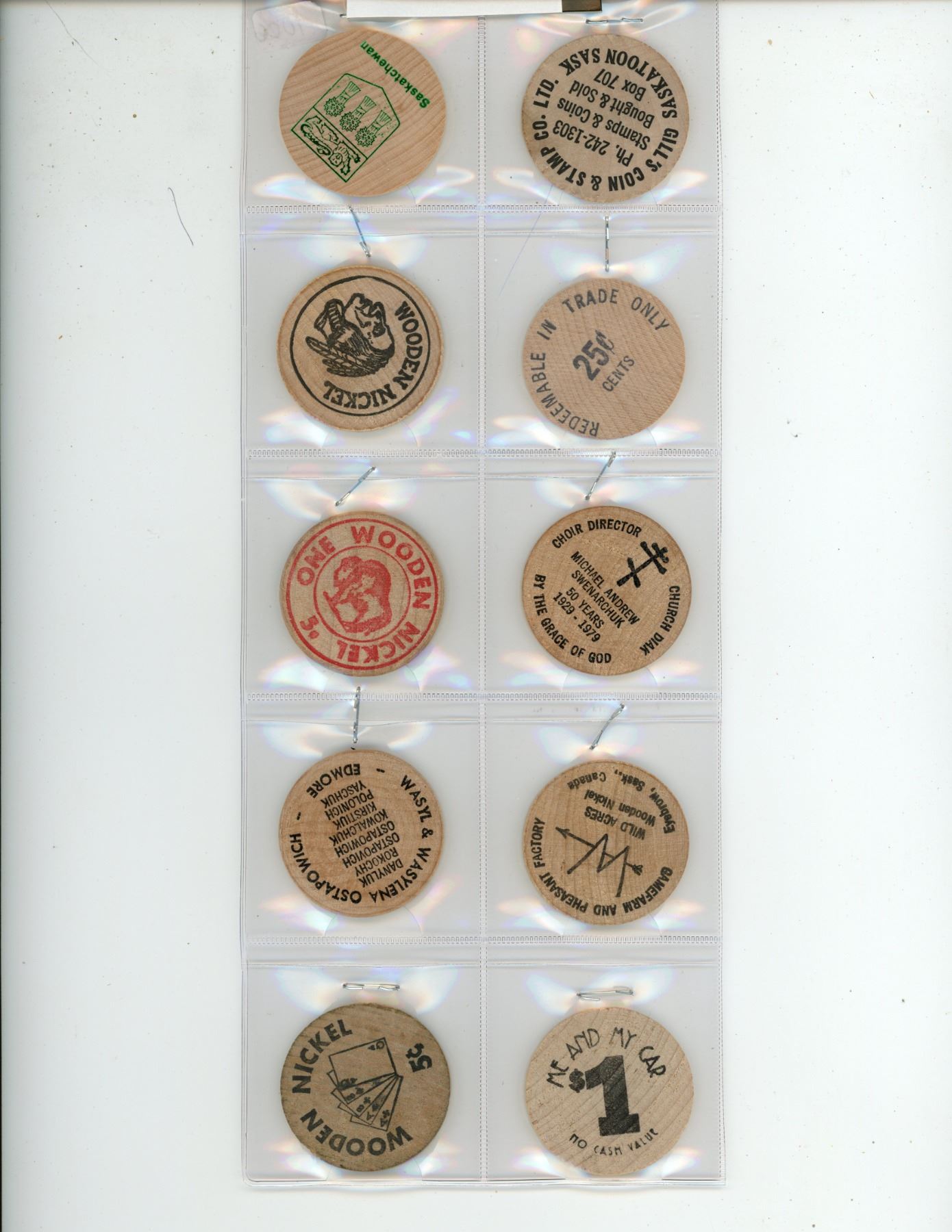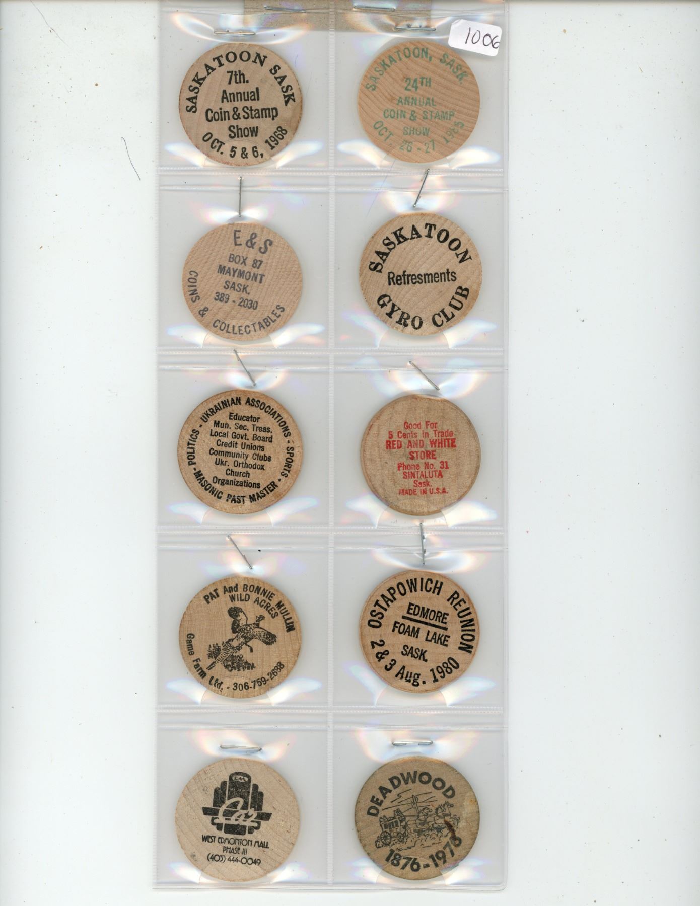 Lot of 10 Canadian & U.S. Woods. Includes 1968 & 1985 Saskatoon Coin & Stamp Show, E&S Coins & Collectables Maymont, Sask, Saskatoon Gyro Club, 1979 Michael Swenarchuk, Red & White Store Sintaluta, Pat & Bonnie Mullin Wild Acres, 1980 Ostapowich Reunion, West Edmonton Mall & 1978 Deadwood.