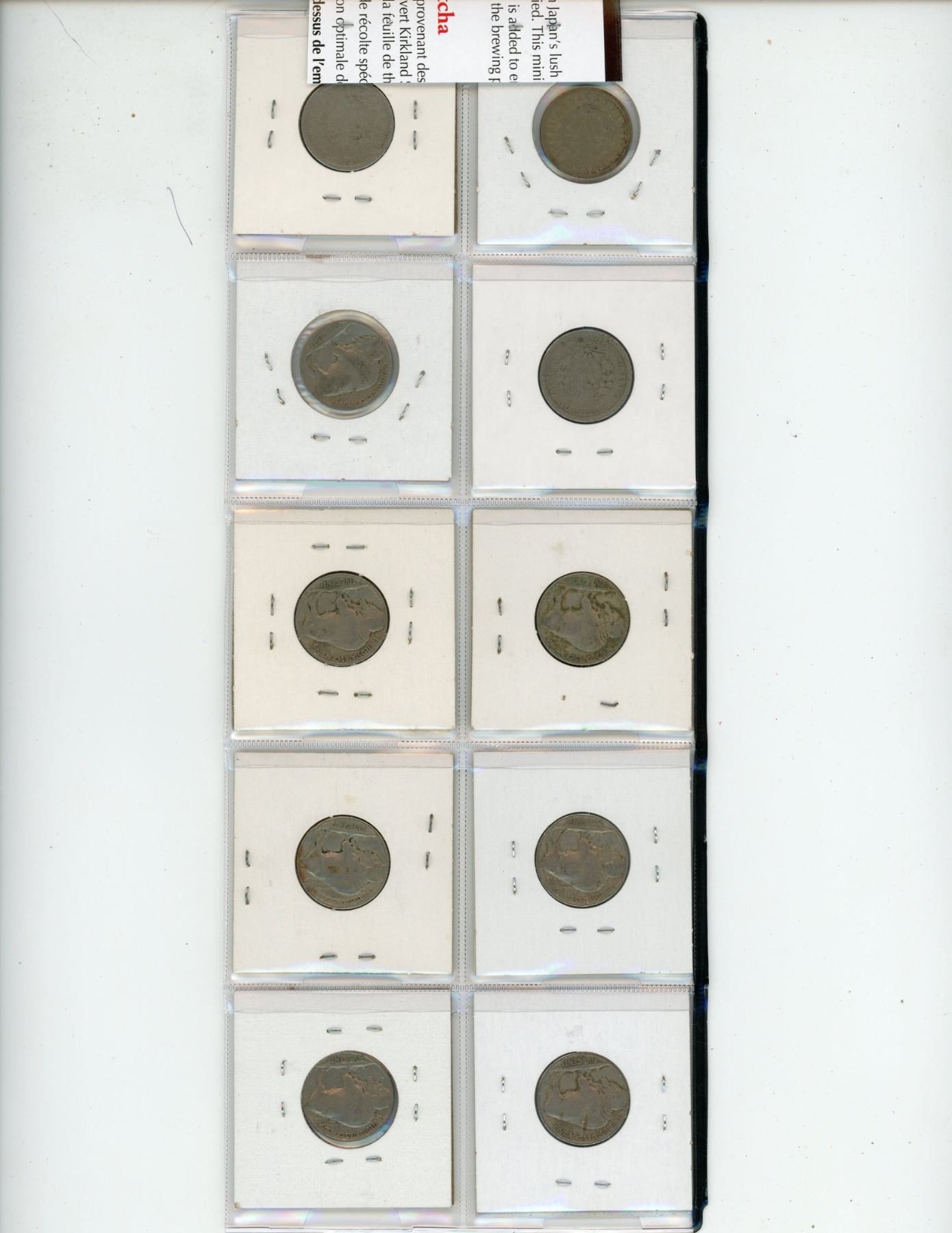 Lot of 10 U.S. Liberty Head & Buffalo Nickels. Includes 1907, 1911, 1912, 1920, 1927, 1928, 1935, 19