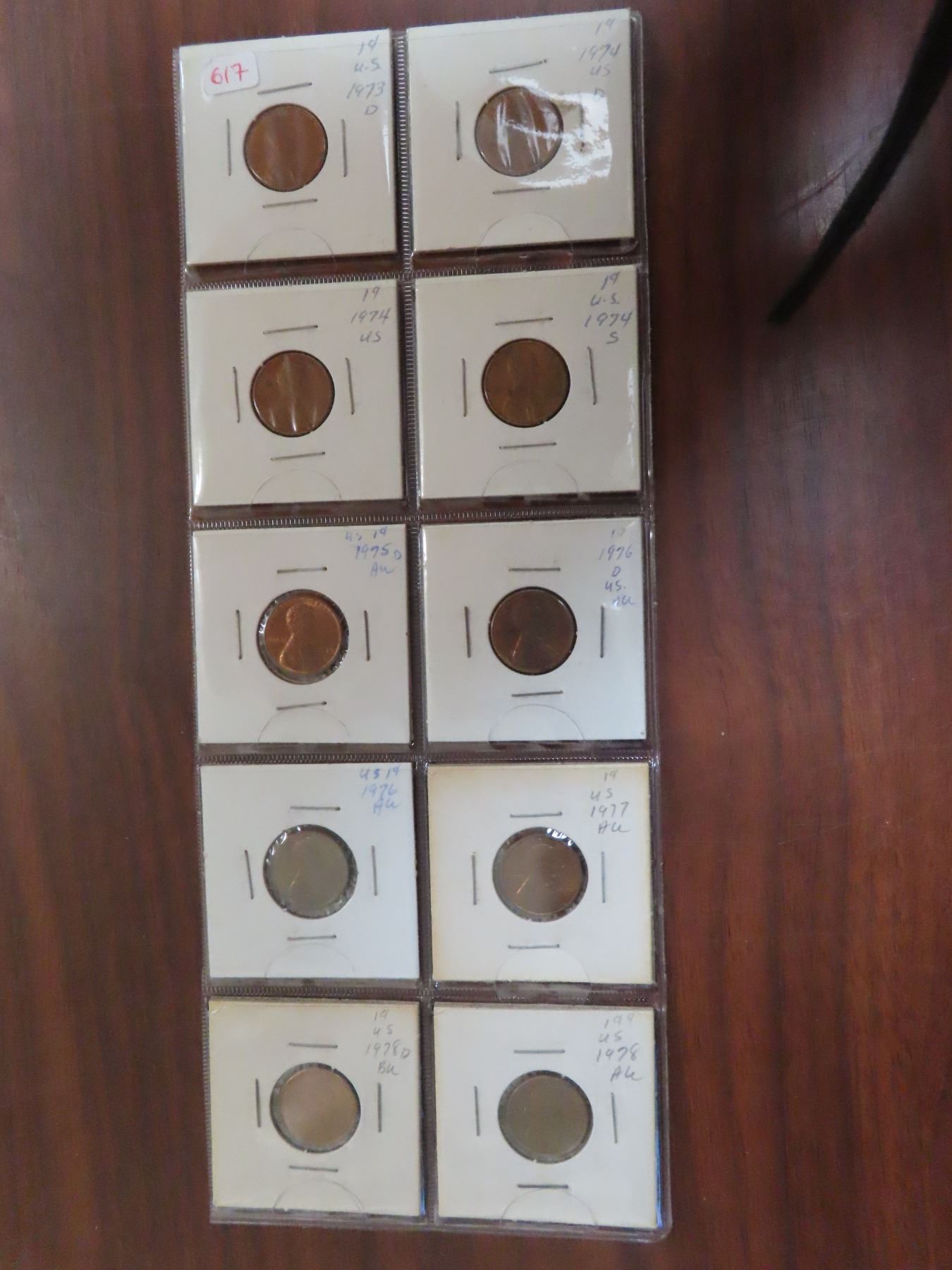 Lot of 10 U.S. Lincoln Head Cents. Includes 1973D, 1974D, 1974, 1974S, 1975D, 1976D, 1976, 1977, 197