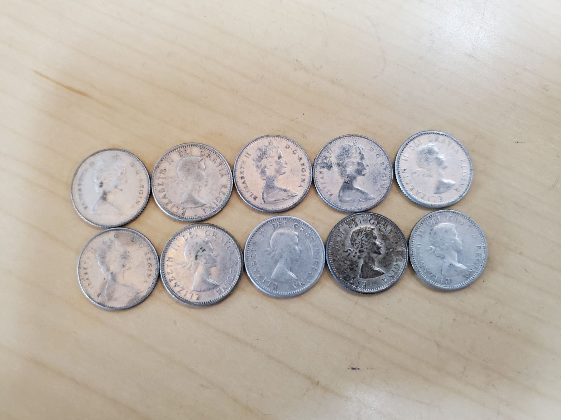 Lot of 10 silver Canada 10 cents