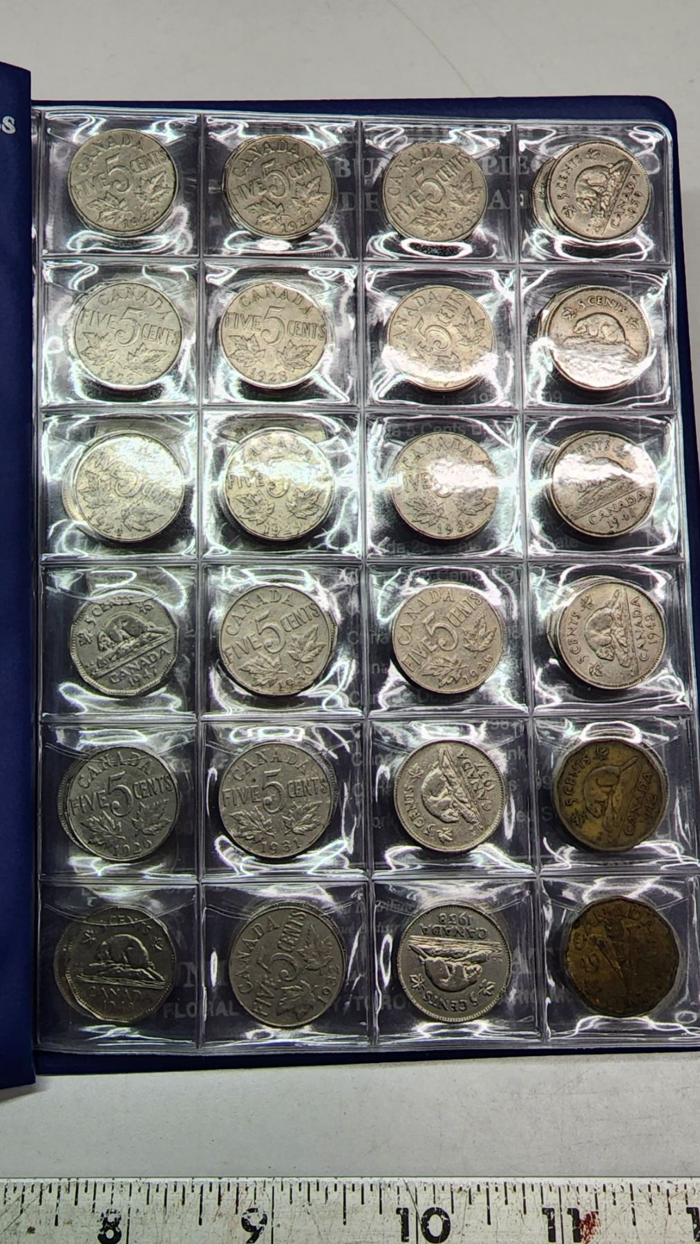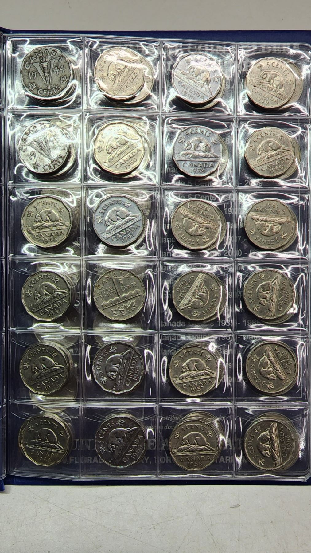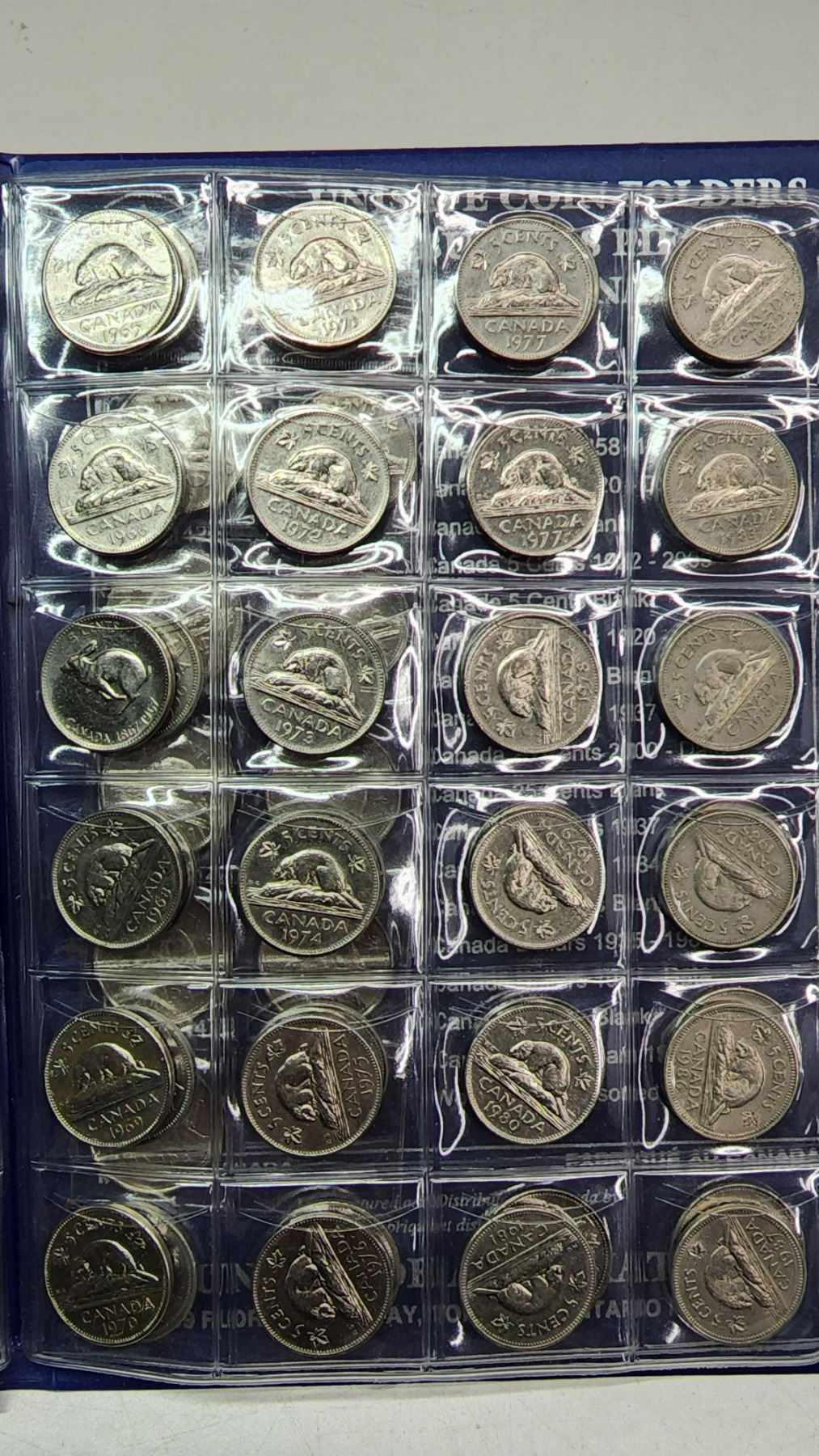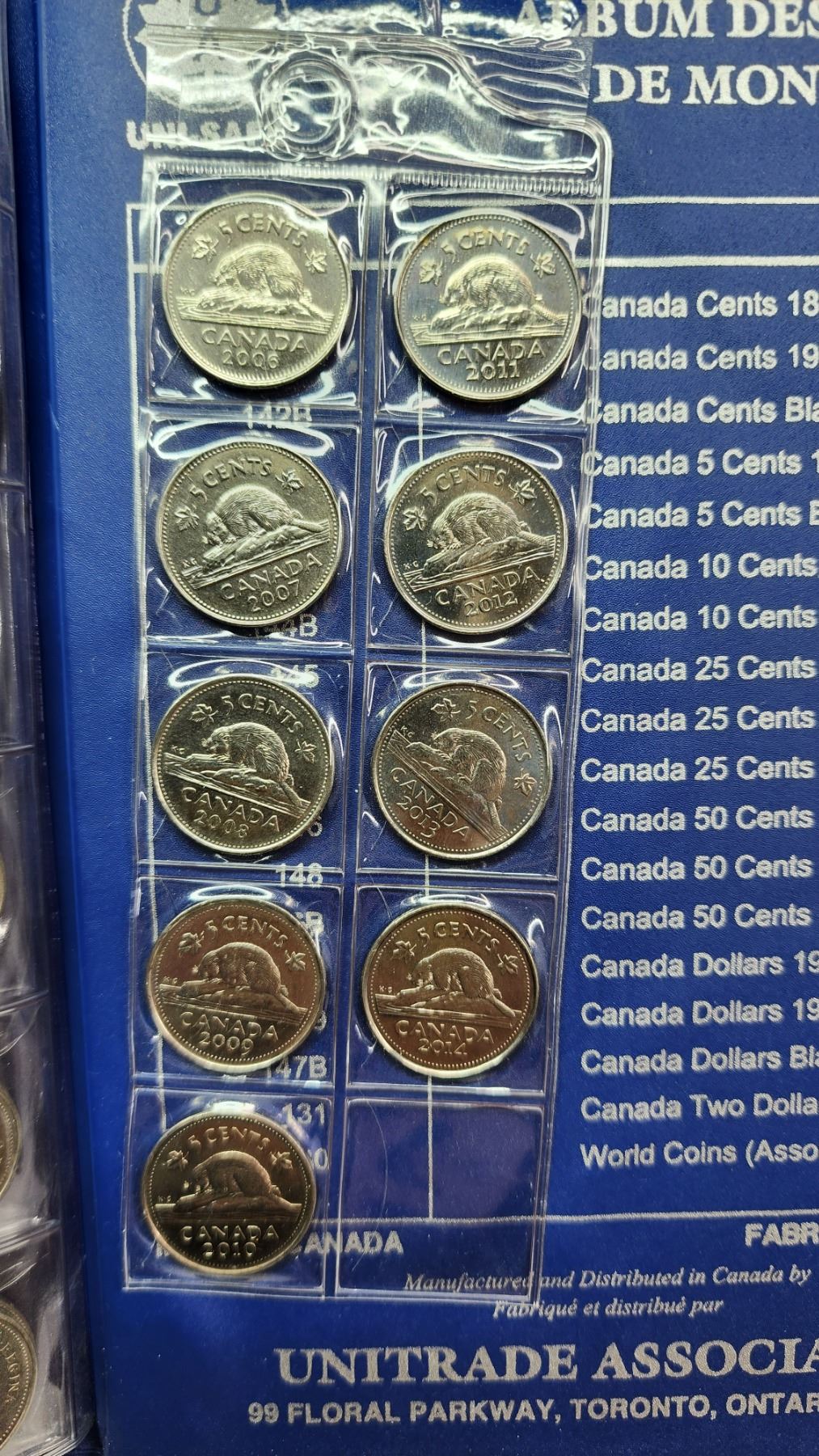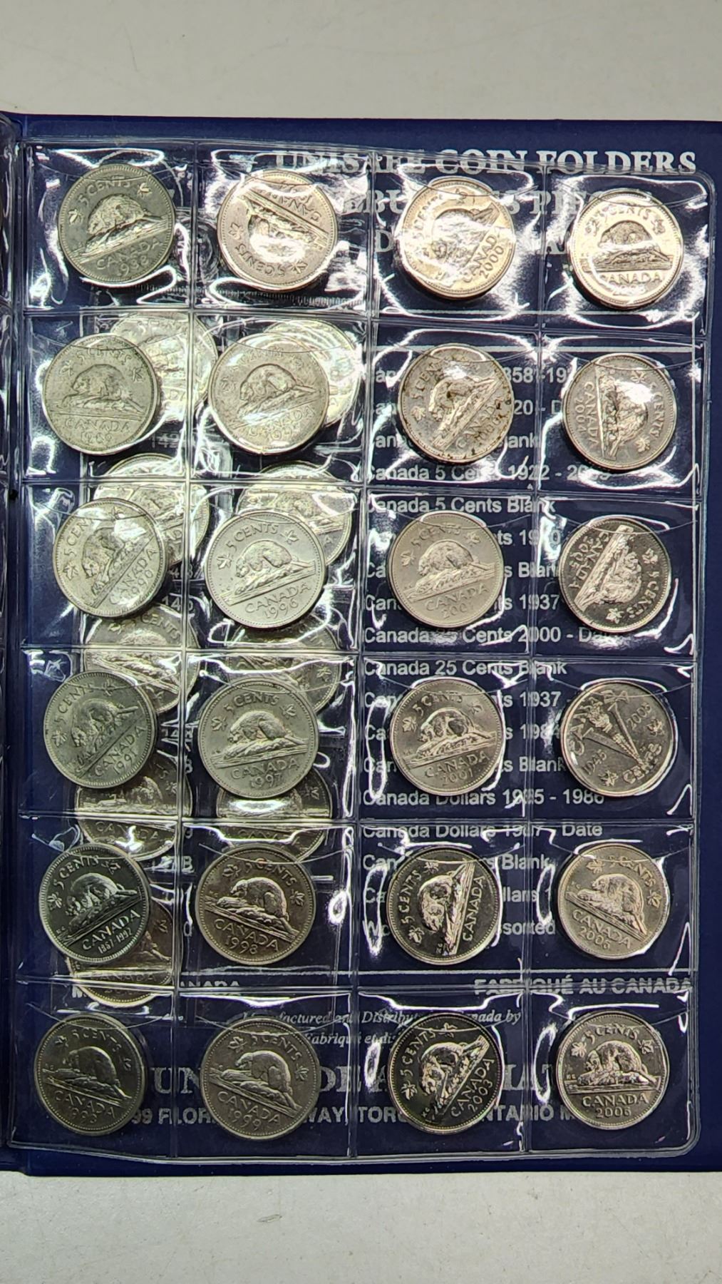 Lot of 103 Canadian Nickel 5 Cents, nearly complete from 1922 to 2014. Missing only 1925, 1926 Far 6 & 1947 Dot. Coins grade VG-8 to BU. Housed in a Uni-Safe Album.